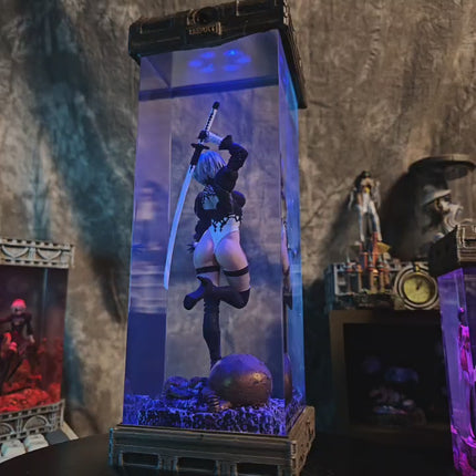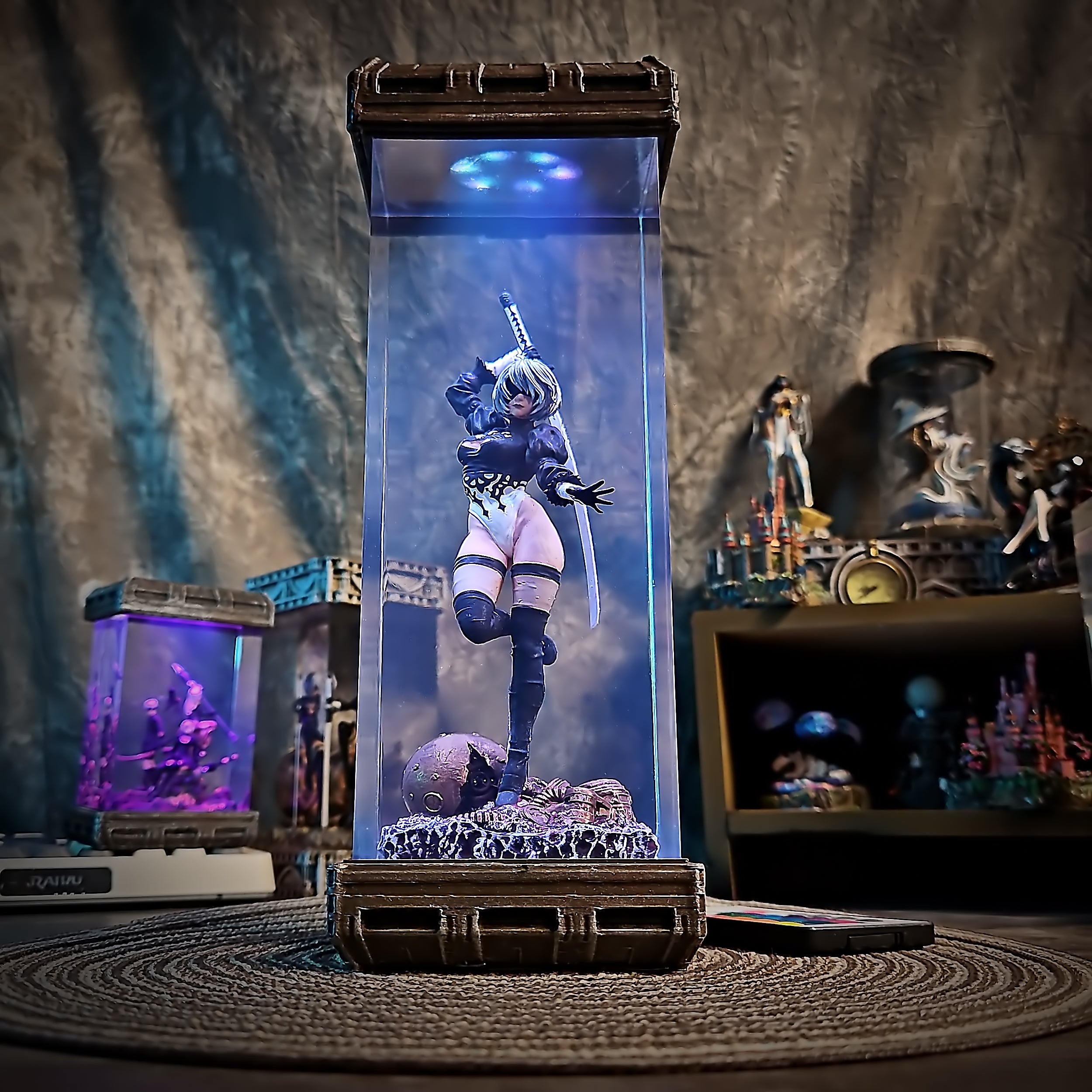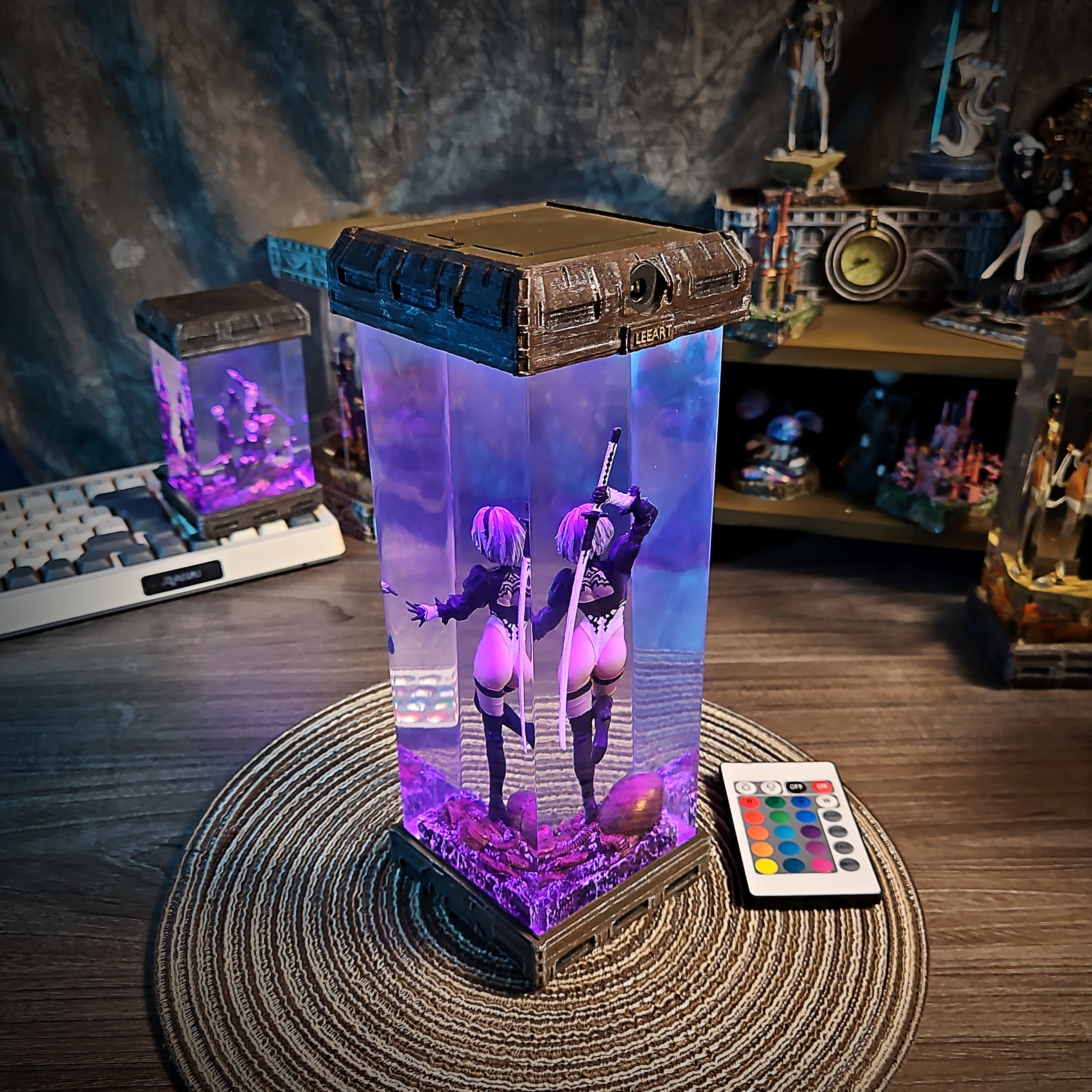 The 2B V1 Resin Lamp brings to life one of the most iconic characters from the NieR: Automata universe — the stoic and mysterious android 2B. With her sleek combat attire, signature blindfold, and poised sword stance, this lamp captures the essence of her elegance and strength. Whether you're a devoted fan of the game or simply admire futuristic aesthetics, this piece adds a luminous aura to any gaming setup or collector's shelf. Illuminated from below, 2B stands like a lone sentinel in a world between hope and ruin.
