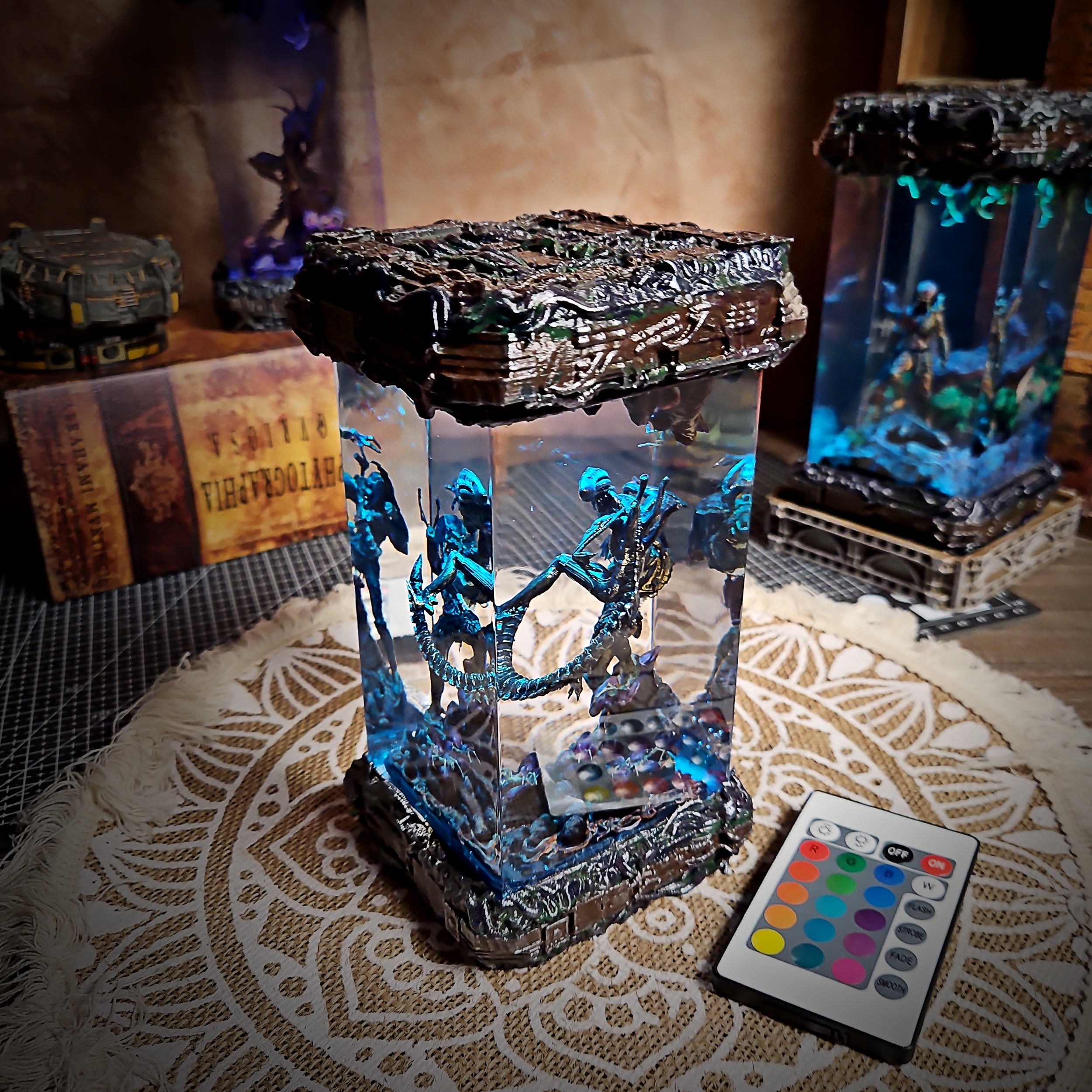 - UV Coating & Lighting Installation A UV-protective topcoat is applied, and a custom LED base is installed to bring the scene to life.