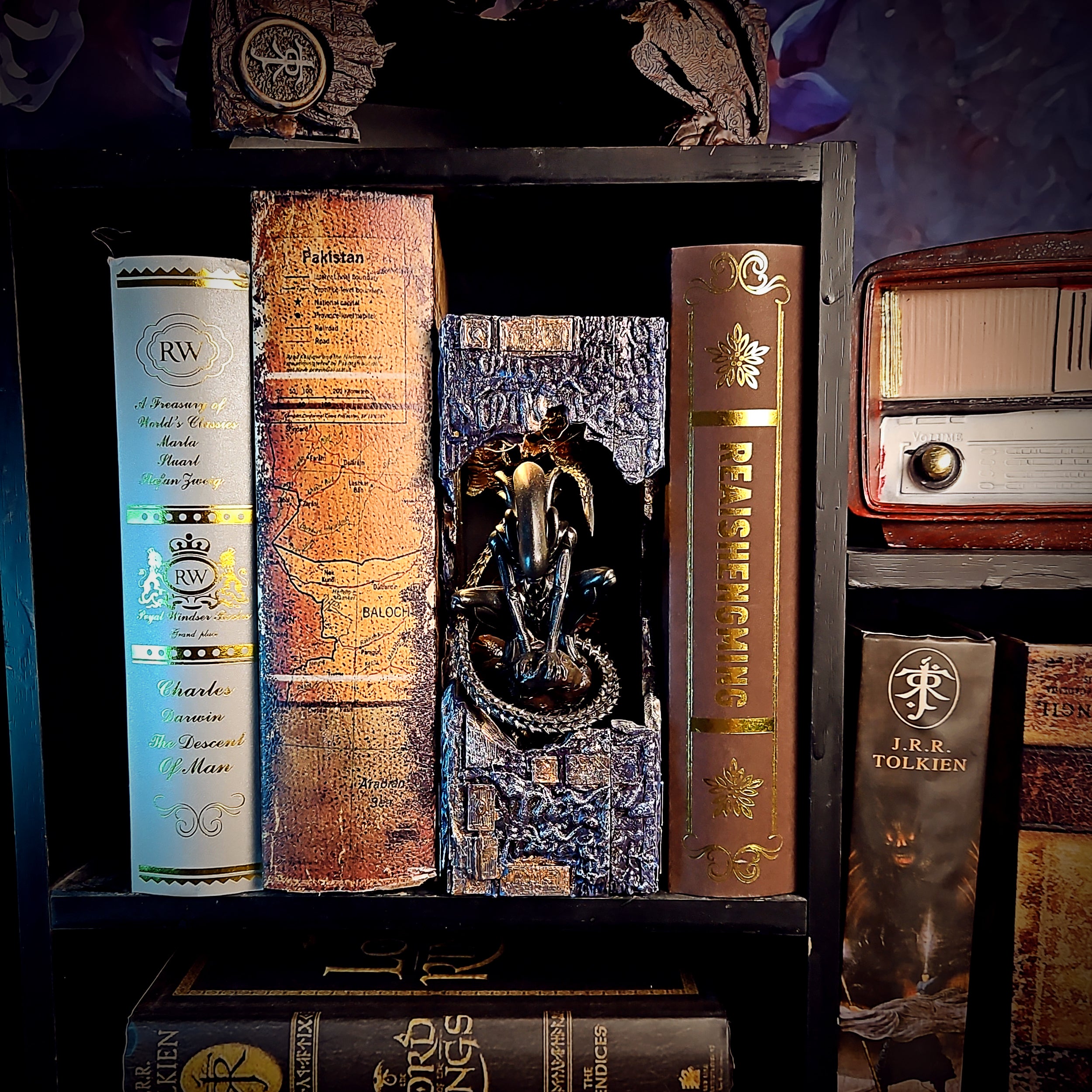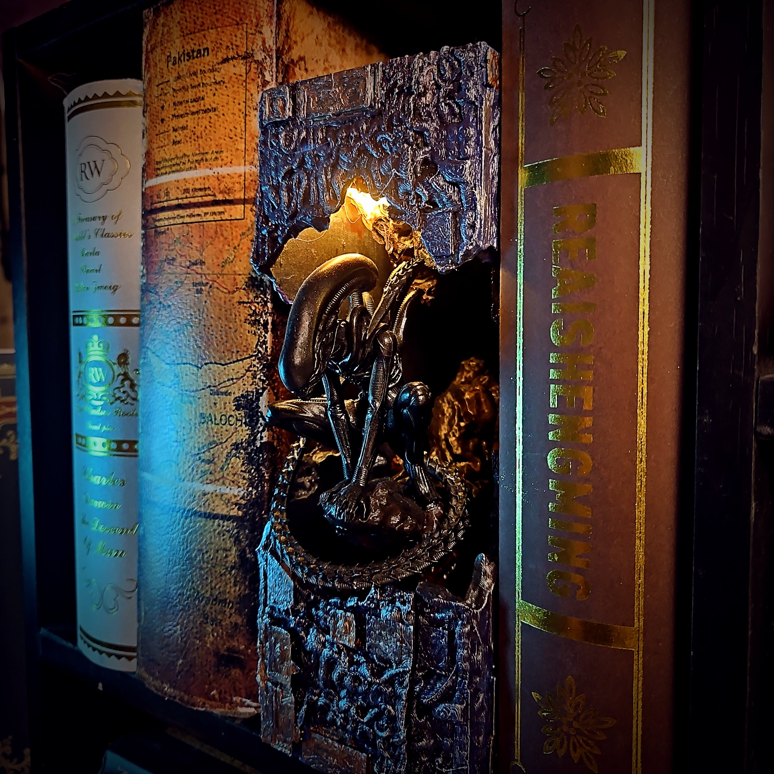 Alien - Book Nook Step into a meticulously crafted miniature world inspired by the iconic sci-fi universe. This book nook captures the atmospheric tension of extraterrestrial exploration with intricate architectural details and atmospheric lighting elements. Perfect for collectors and enthusiasts, it transforms any bookshelf into a conversation-starting display piece. The detailed craftsmanship brings cinematic authenticity to your space, making it an ideal addition for fans of science fiction and immersive diorama art. A striking accent that merges literature and imaginative design.