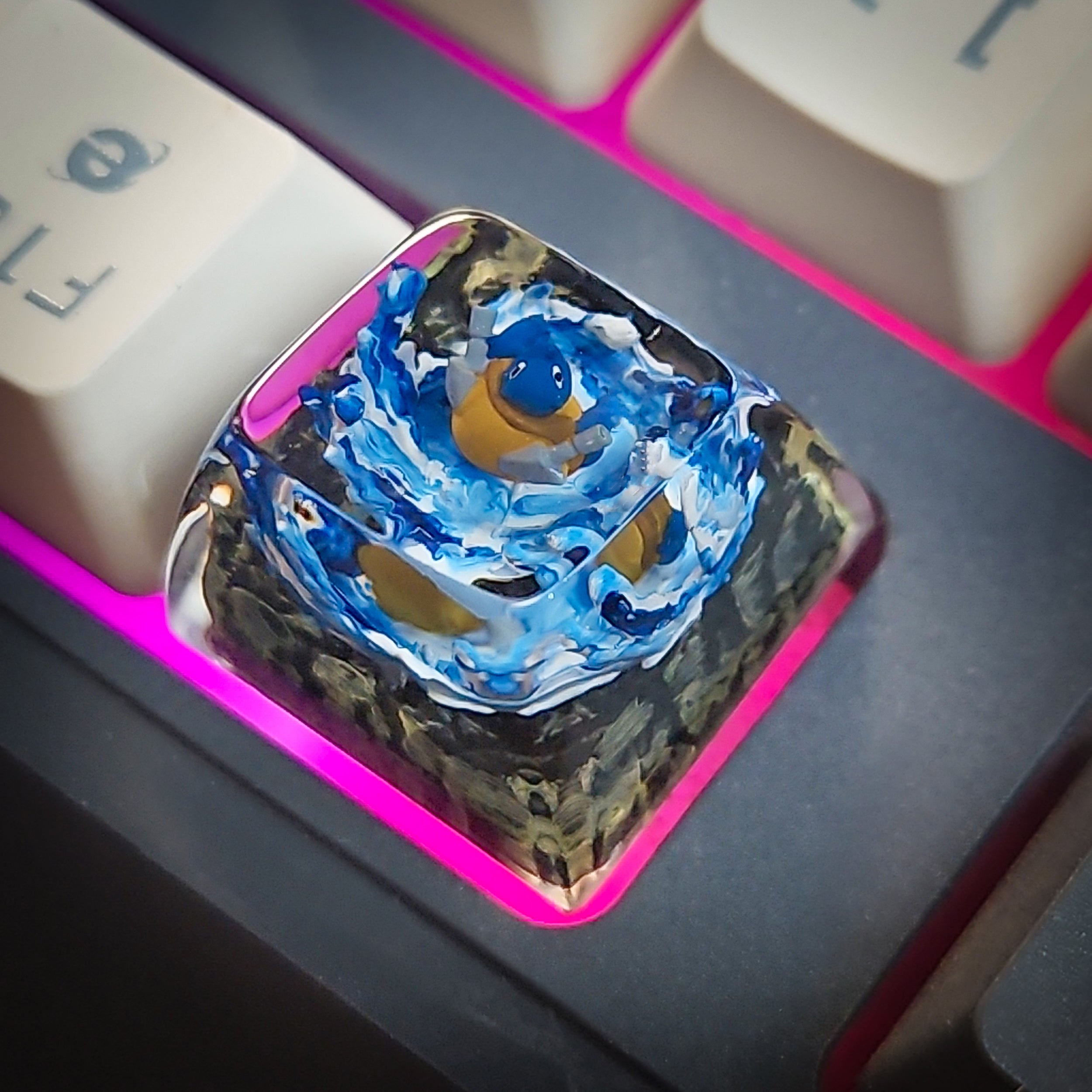 Dive into the deep end with our handcrafted 1u Blastoise Resin Keycap! This isn't just a keycap; it's a tiny, artisan-crafted tribute to the Water-type powerhouse, bringing a splash of nostalgia and personality to your mechanical keyboard. Each keycap is carefully sculpted and cast in vibrant resin, capturing Blastoise's iconic shell cannons and determined expression.