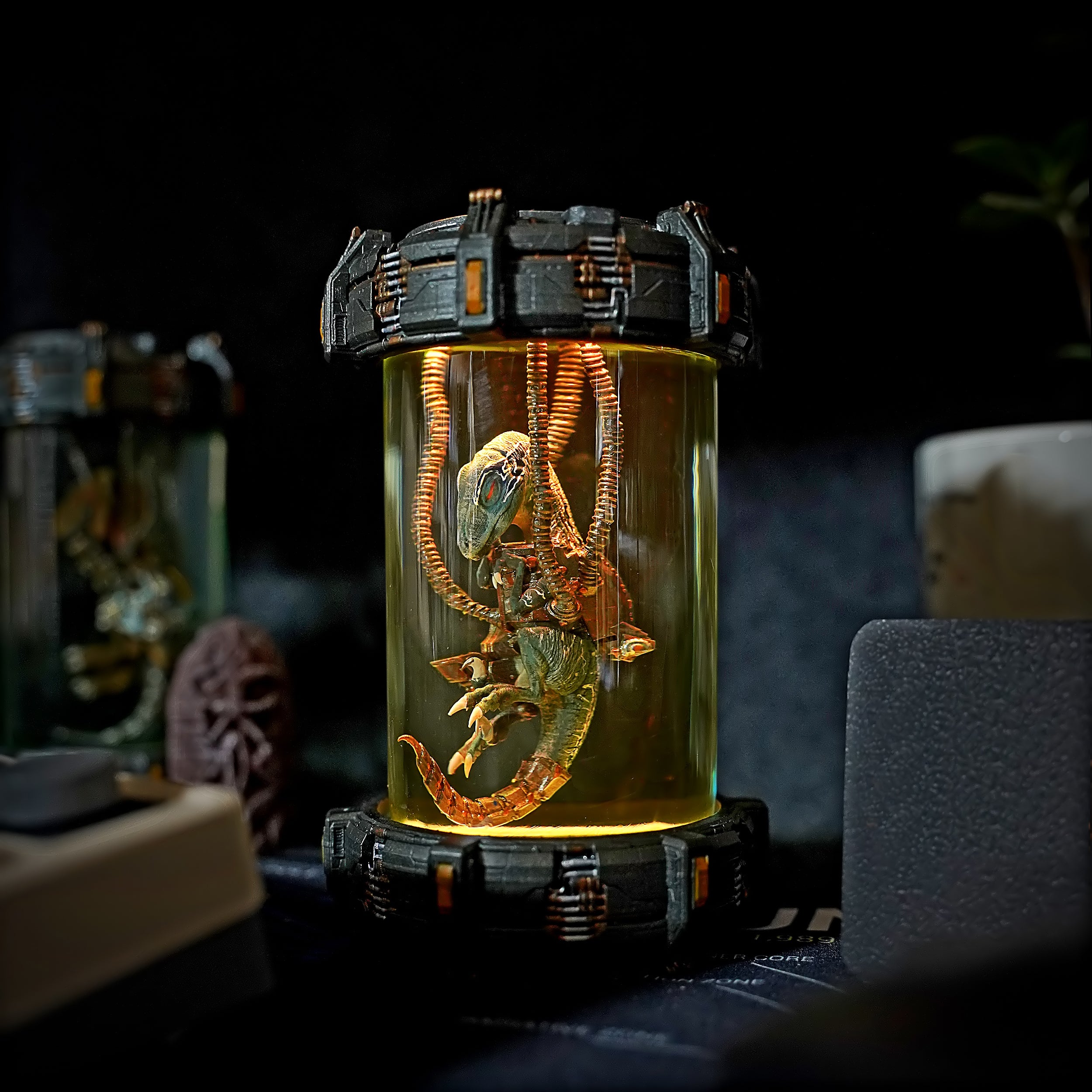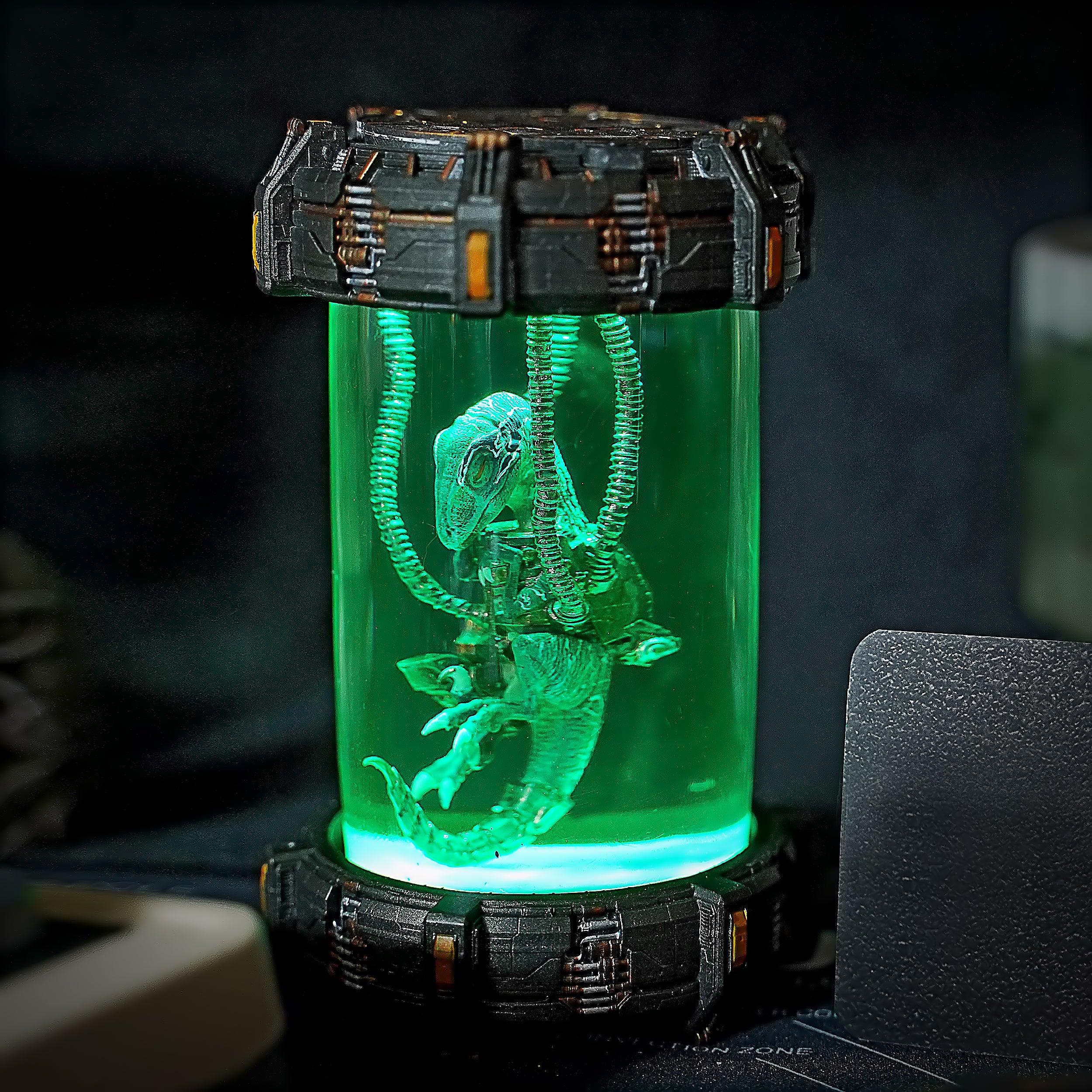 A reimagined version of the classic Raptor capsule with a futuristic skyfi-themed base. Enhanced aesthetics and detail work make this an elevated piece for display.