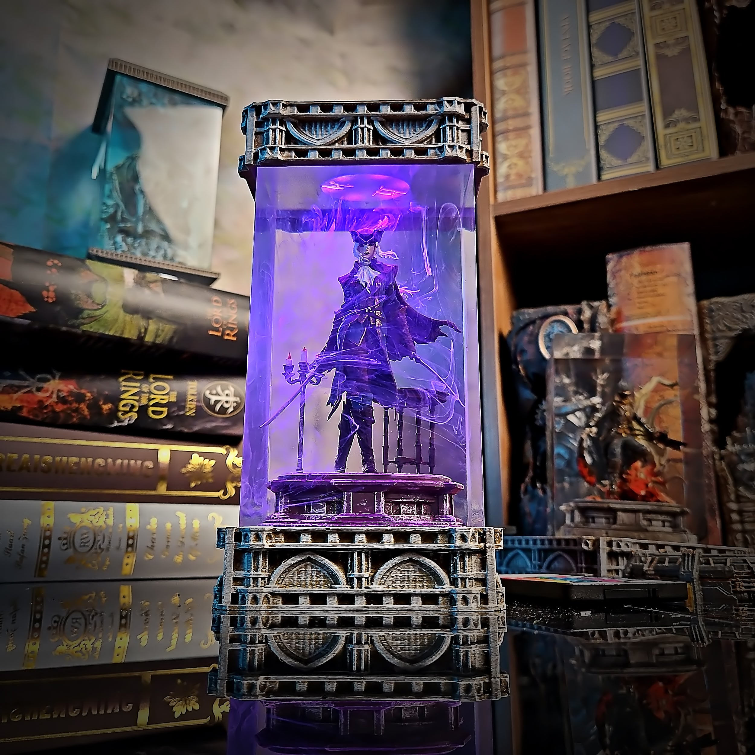 Step into the haunting world of Bloodborne with this resin lamp featuring the Lady Maria. Capturing the eerie atmosphere and intricate costumes, this piece showcases the characters’ haunting presence with detailed craftsmanship. LED lighting accentuates the gothic elements and fine details. Production Process: