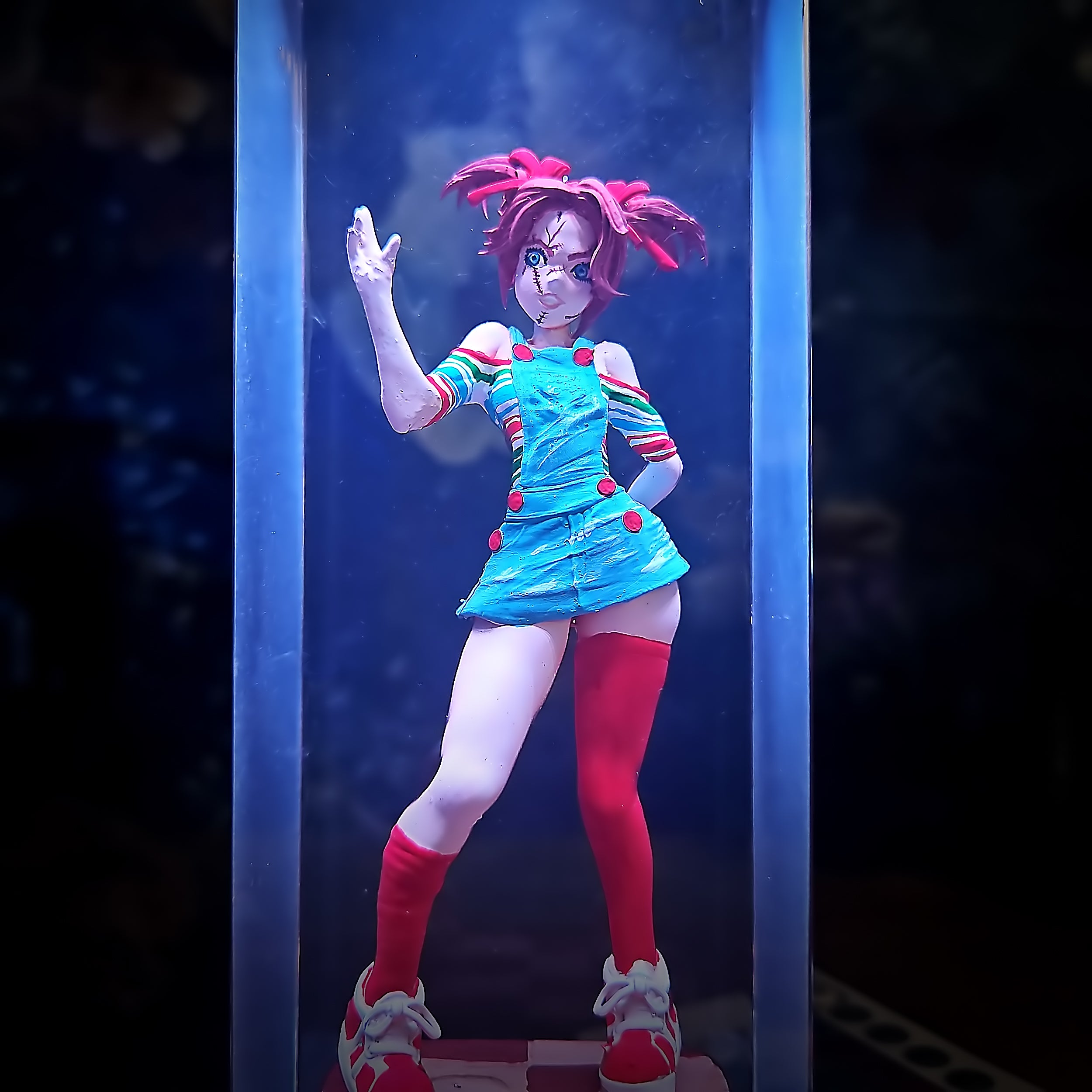 Bring home the infamous killer doll with this Chucky resin lamp. Its realistic sculpt and glowing effect make it a must-have collectible for fans of the classic horror franchise.