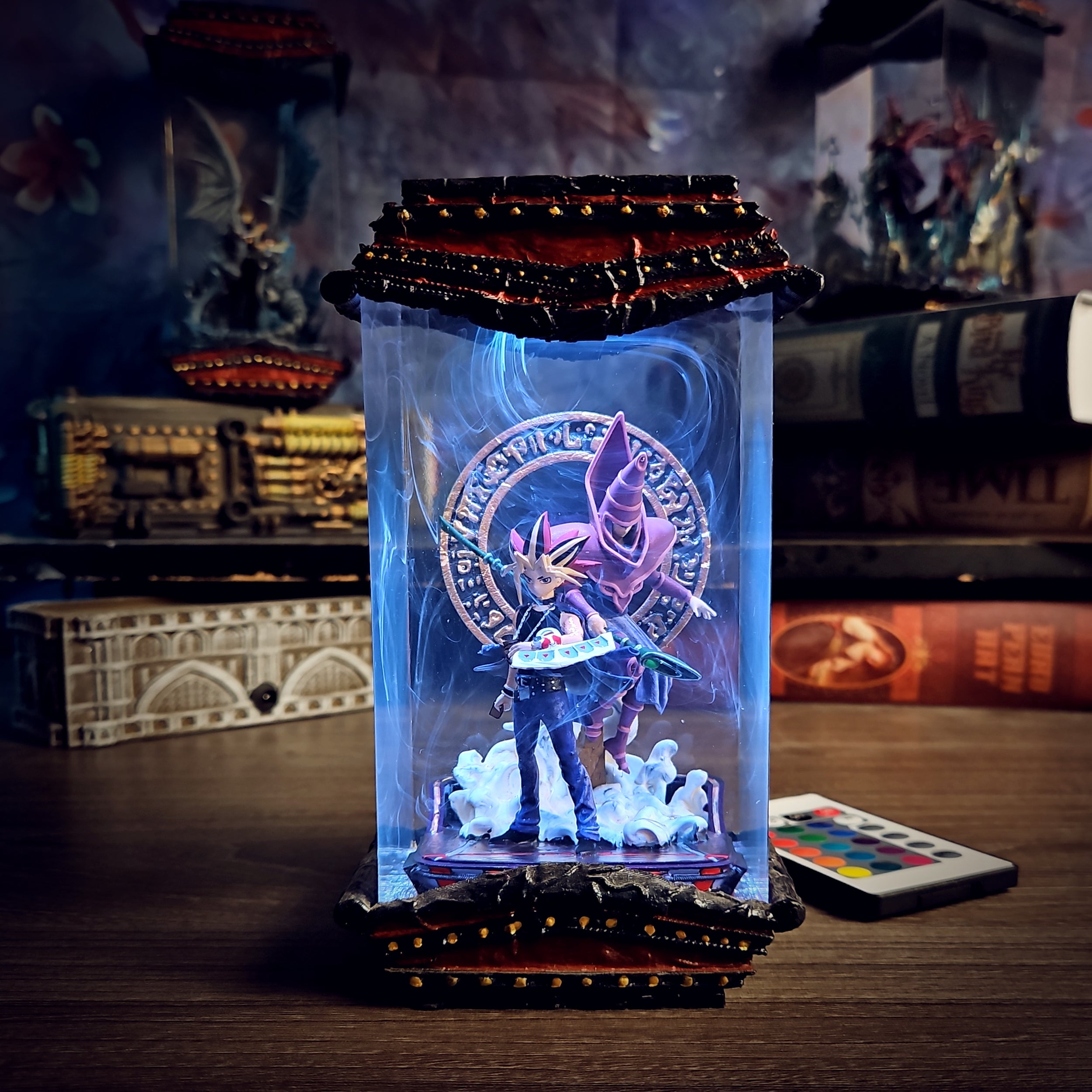 Step into the world of Duel Monsters with the legendary Dark Magician. This resin lamp captures the powerful aura and mystical elegance of Yugi's iconic spellcaster. With intricate sculpting and radiant LED lighting, it brings an enchanting glow that makes it a stunning centerpiece for any fan's collection or gaming setup.