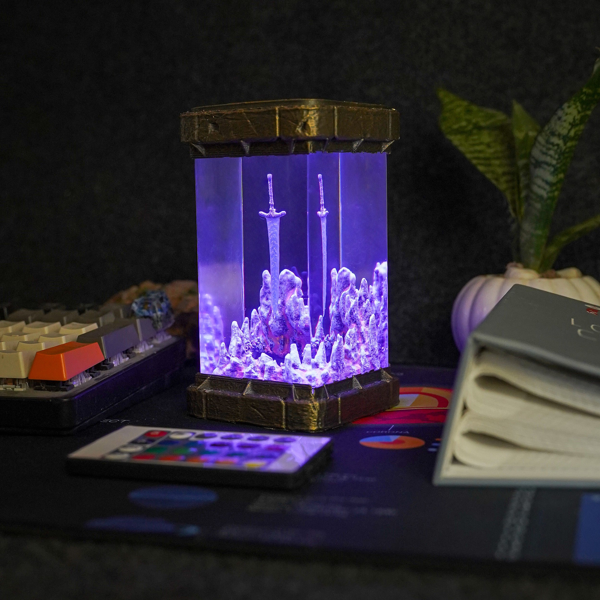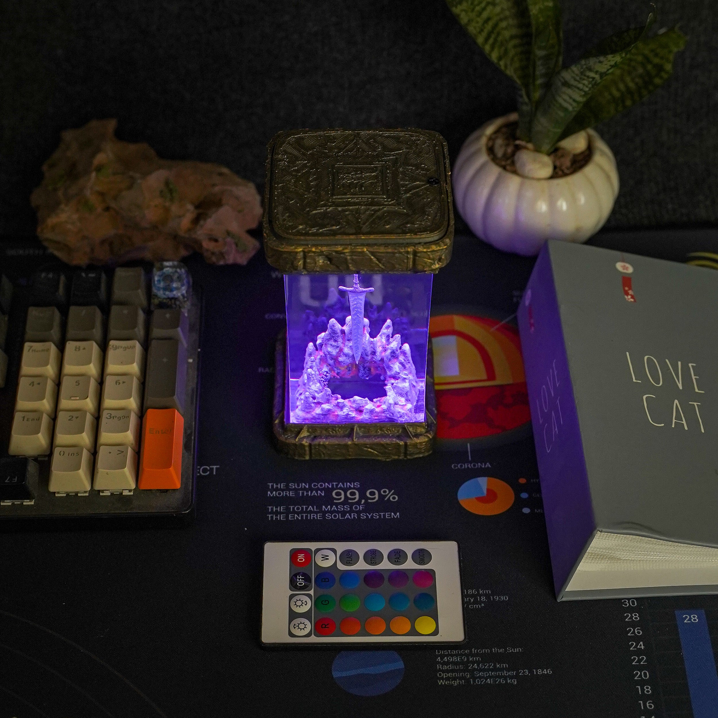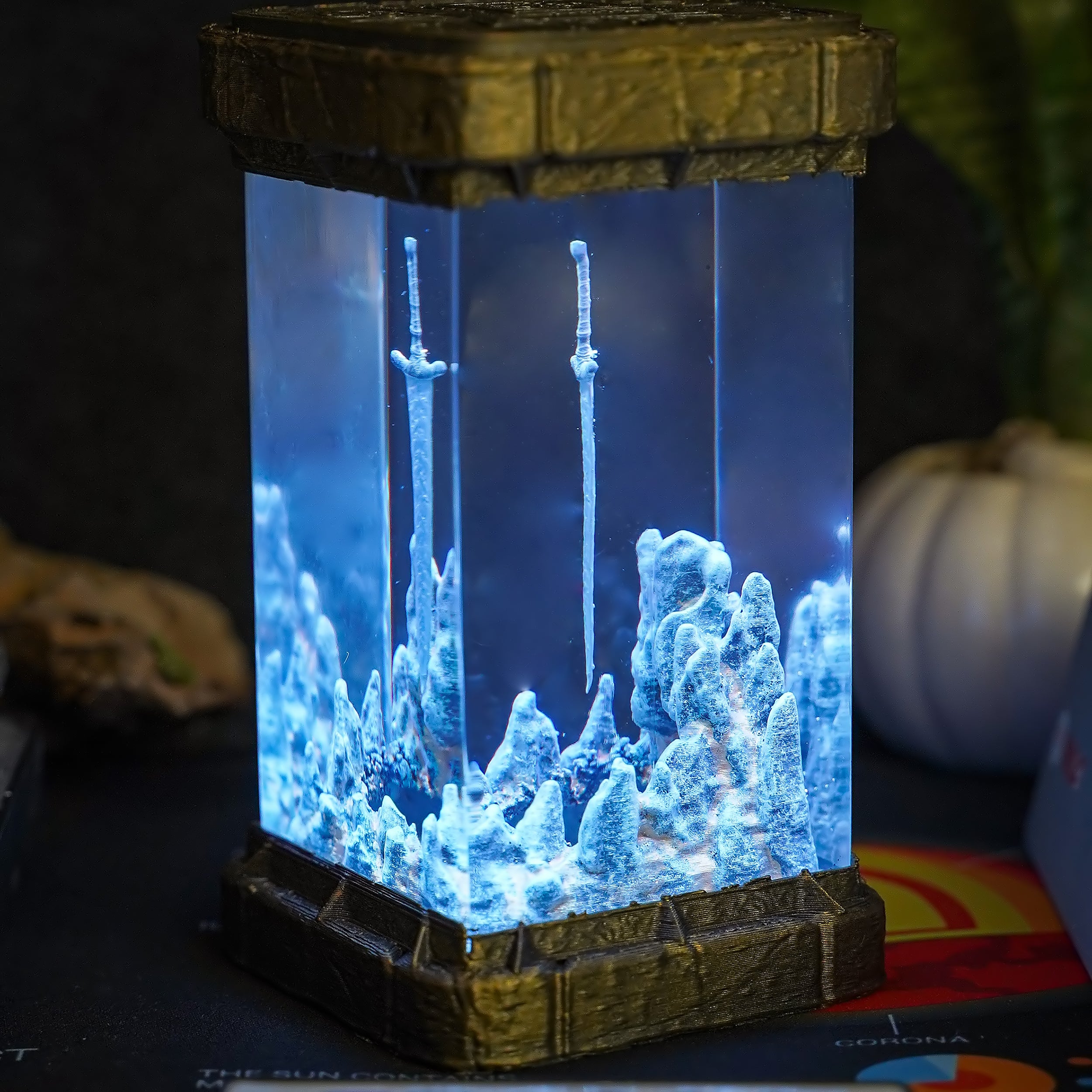 Inspired by the ethereal weapon wielded by Ranni, the Dark Moon Greatsword lamp glows with a mystical blue hue, symbolizing magic, cold, and lunar mystery. A perfect centerpiece for fans of arcane beauty.
