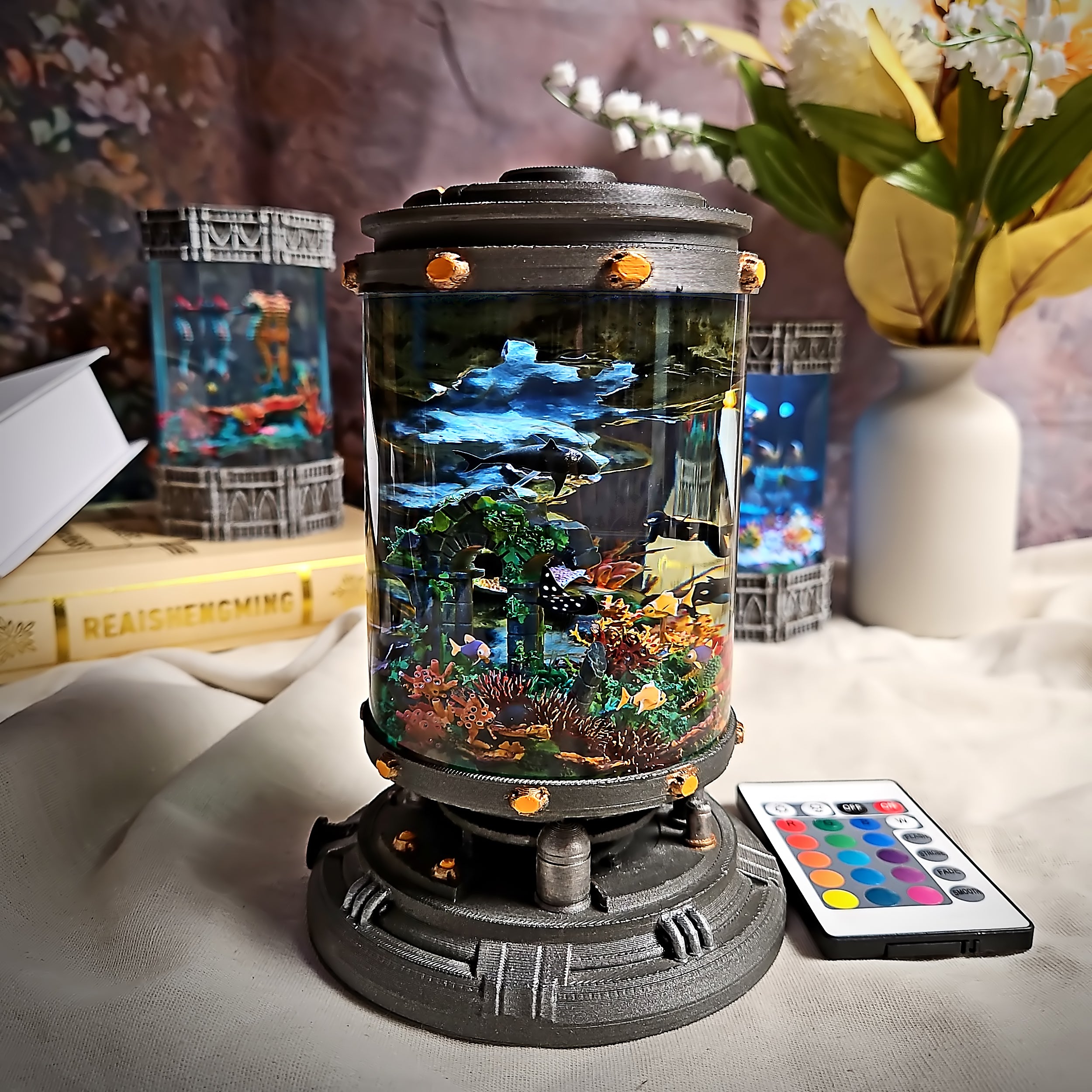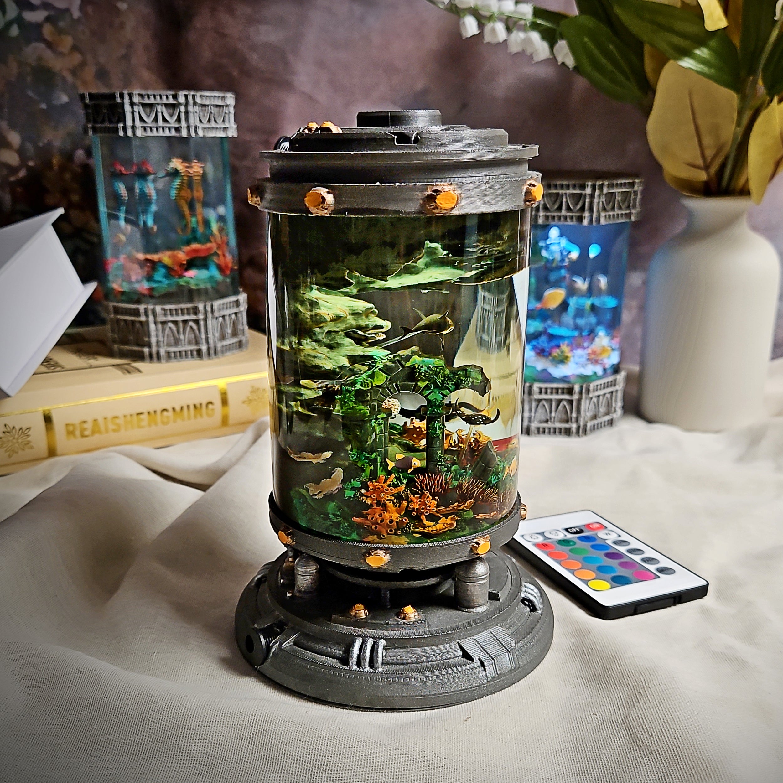Immerse yourself in the depths of the ocean with this Diver resin lamp. The tiny diver figure, encased in a futuristic lab-like base, evokes a sense of adventure and exploration beneath the waves. A unique decor piece for those passionate about diving, marine science, or the mysteries of the deep sea.