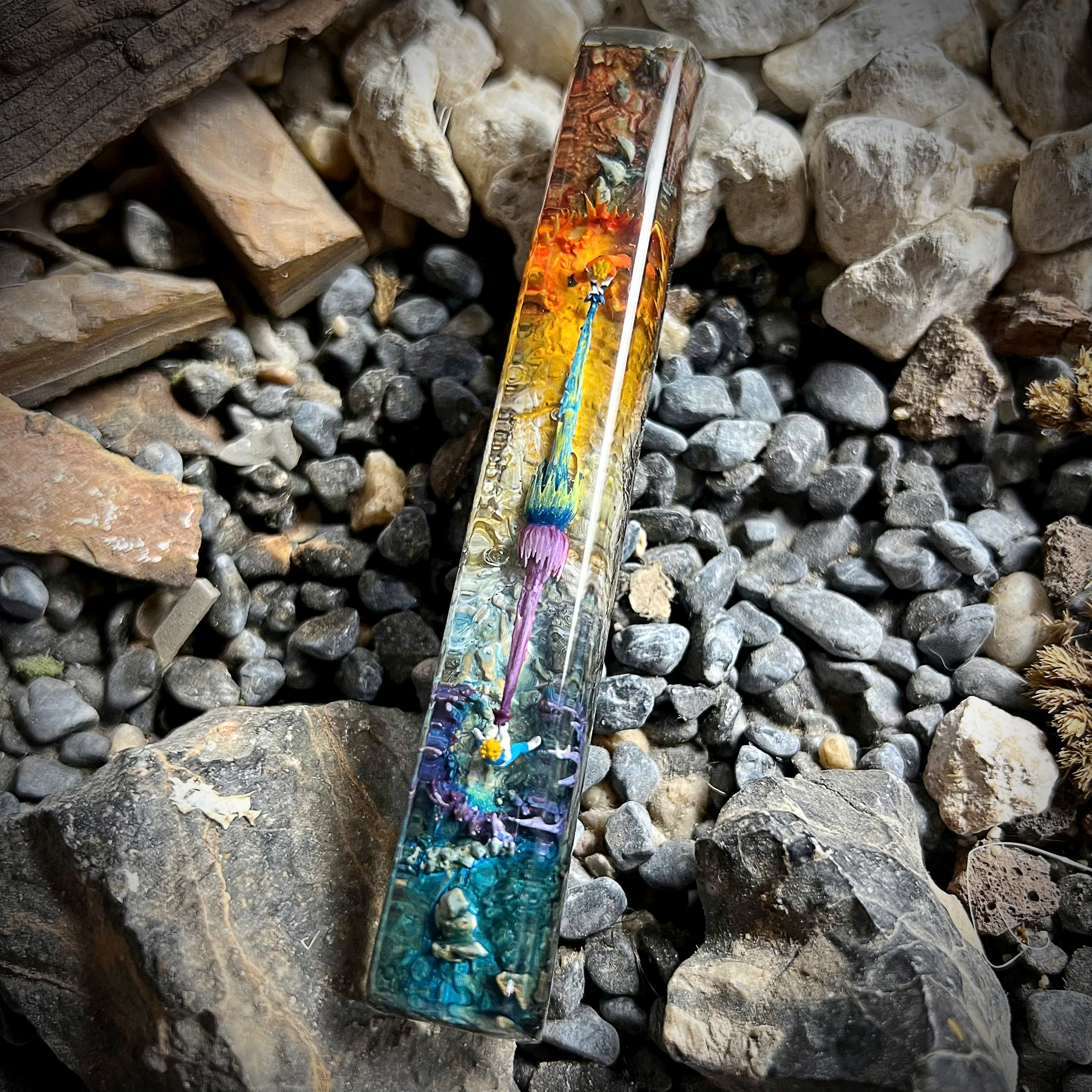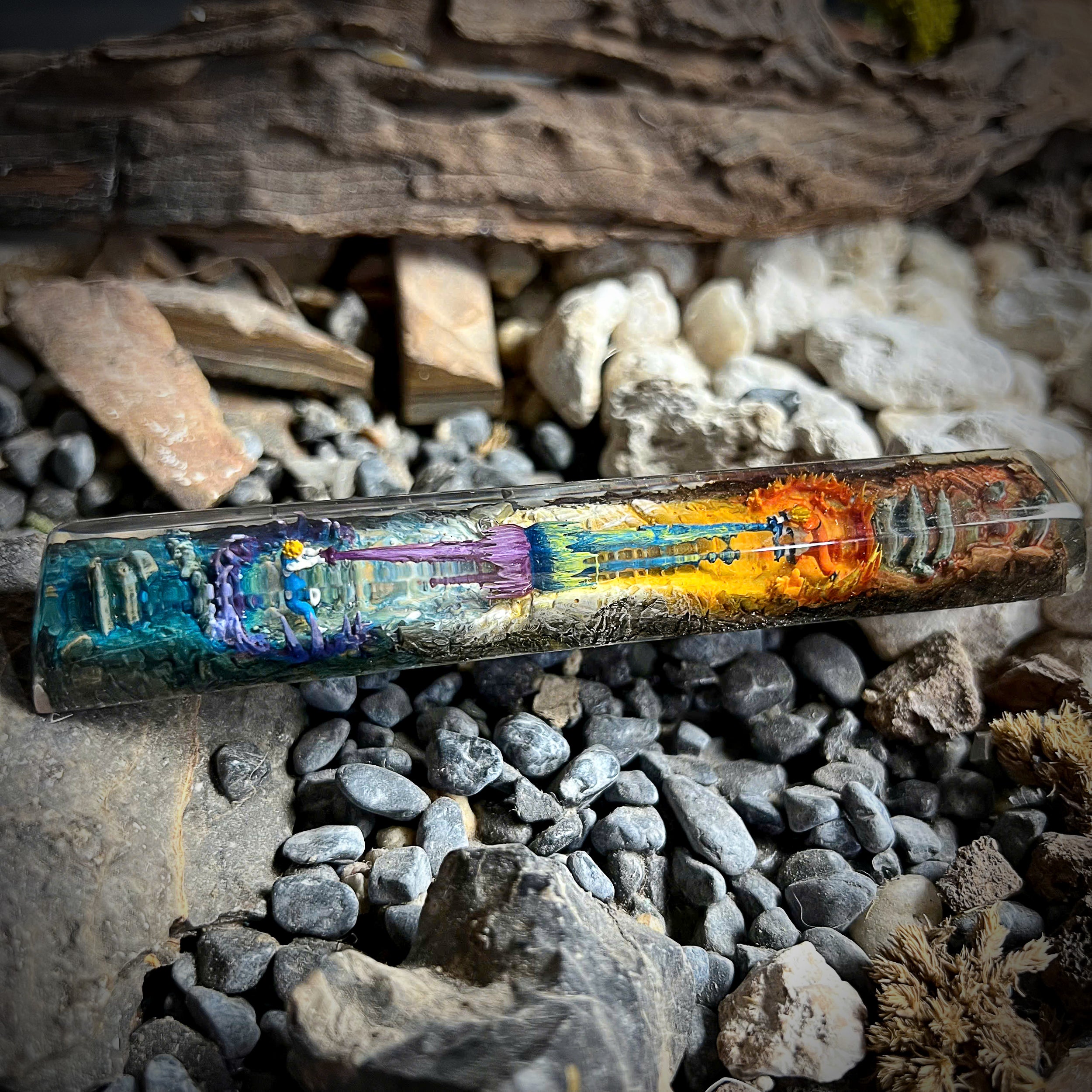 Unleash the power of your keyboard with this handcrafted resin spacebar featuring an epic battle between Goku and Vegeta. Meticulously sculpted and painted by skilled artisans, this spacebar captures the dynamic energy and iconic style of these two legendary Saiyan warriors from the anime universe.