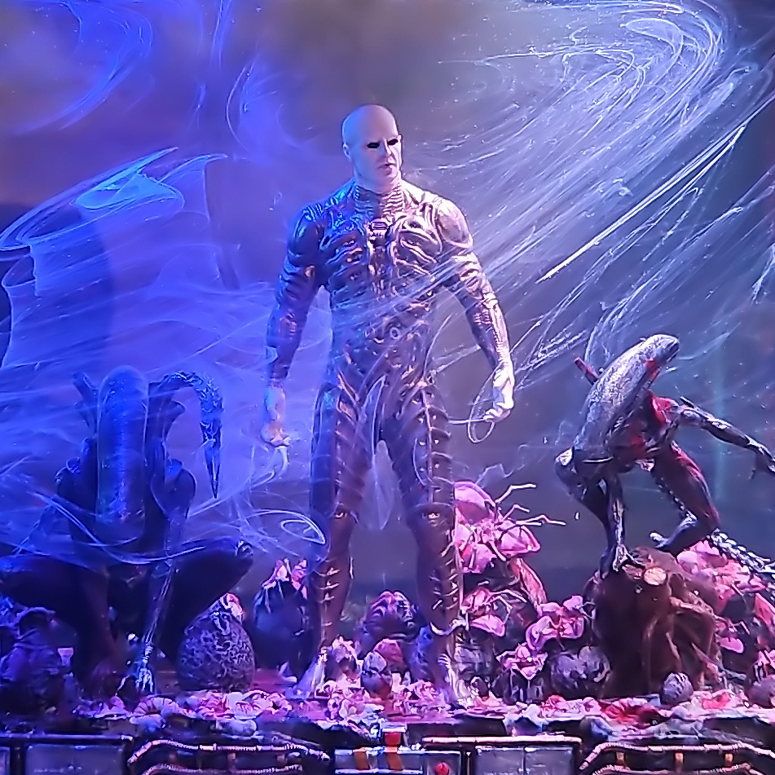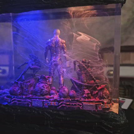 Inspired by Prometheus and Alien: Covenant, this resin lamp brings to life the haunting biomechanical fusion of the Engineers' technology and the terrifying Xenomorph legacy. The sculpt captures the elongated skull, intricate exoskeleton, and otherworldly presence of this creature, set within a glowing resin scene that evokes the mysterious and ancient origins of the Alien universe. A perfect piece for fans of sci-fi lore and horror aesthetics.