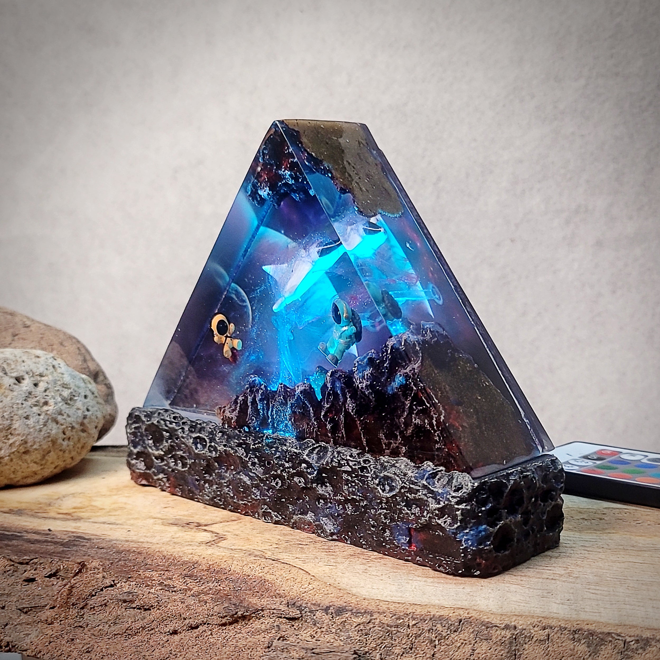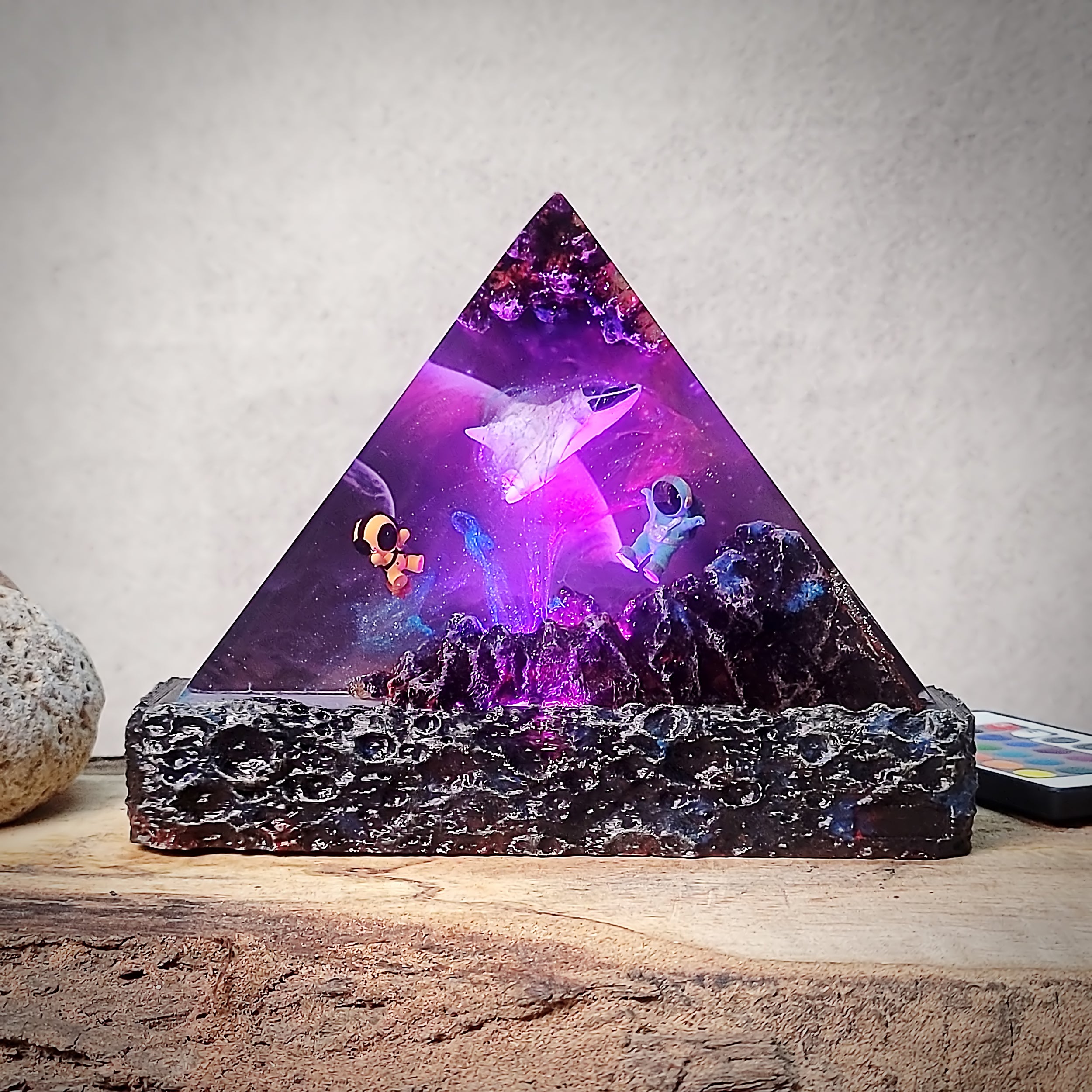 The Galaxy Chibi Triangle Resin Lamp is a whimsical fusion of space exploration and adorable character design. Inside a sleek triangular frame, a tiny chibi astronaut floats through galaxies and stars, evoking wonder and charm. Perfect as a night light or collectible art piece, this lamp brings a miniature universe into your hands — ideal for space lovers, dreamers, or fans of handcrafted creations.