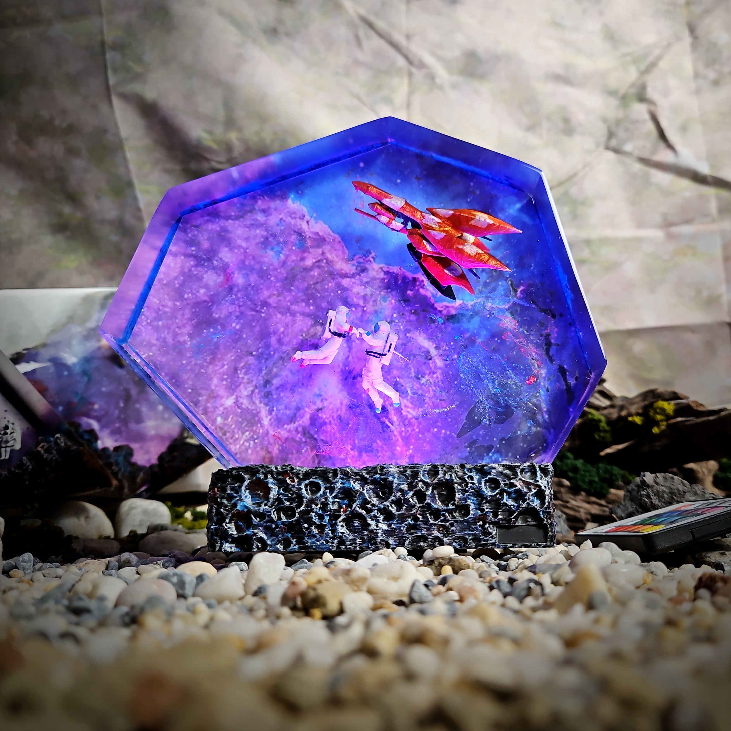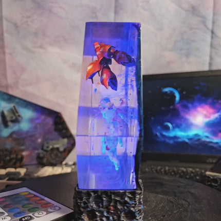 This lamp is a tribute to Final Fantasy VIII, featuring iconic visual elements from the game immersed in a dreamy galactic setting. With hand-painted figures and a galaxy swirl backdrop, this resin lamp is a must-have for fans of the legendary RPG.