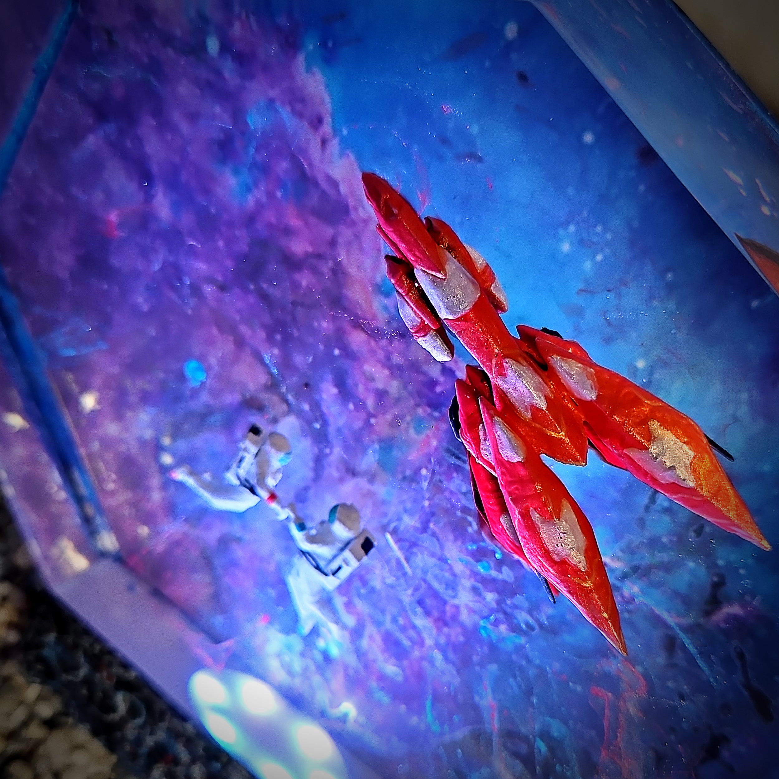 - UV Coating & Lighting Installation A UV-protective topcoat is applied, and a custom LED base is installed to bring the scene to life.