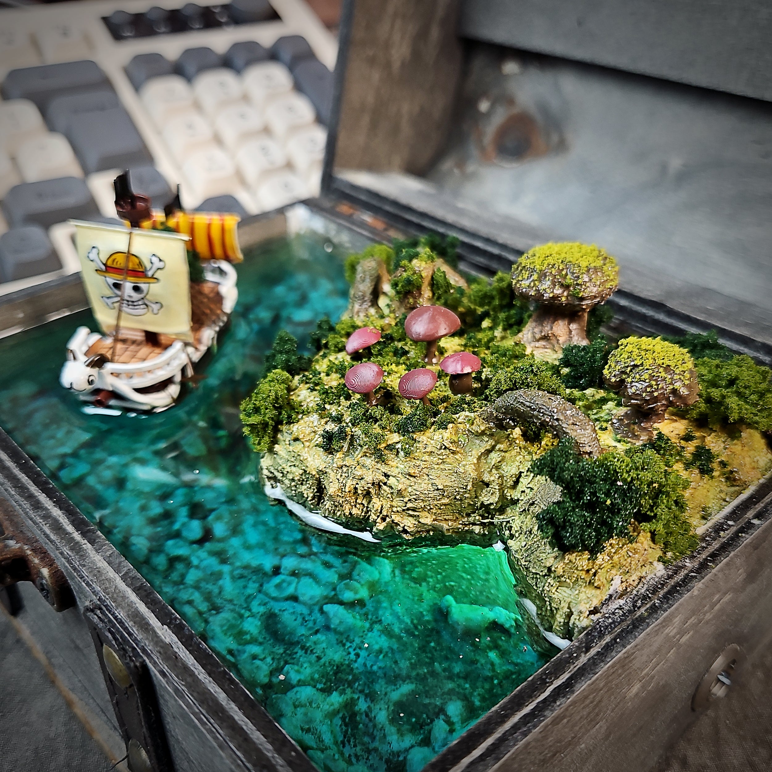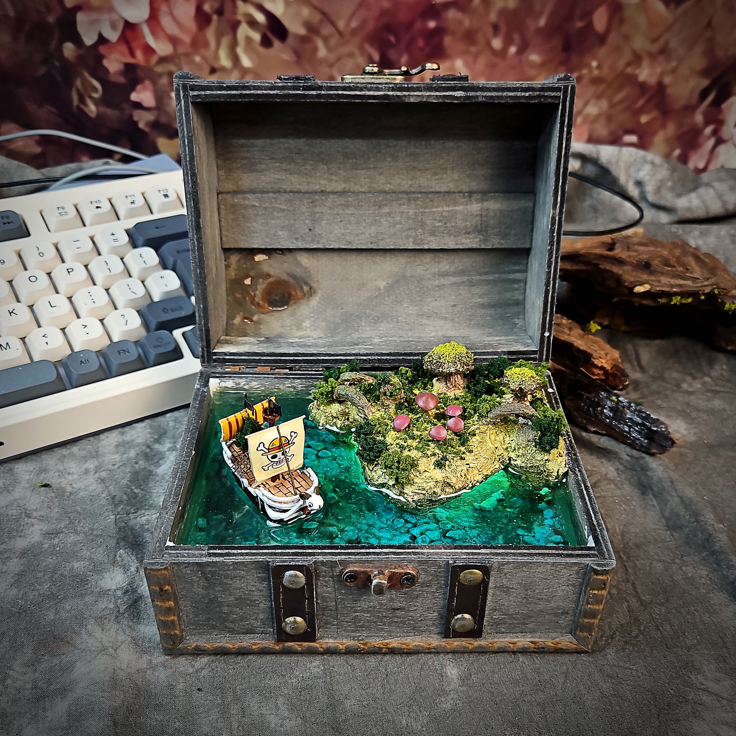 Ahoy, One Piece fans! Get ready to bring the spirit of adventure into your home with our handcrafted resin lamp box, a stunning tribute to the legendary Going Merry! ✨ This isn't just a lamp; it's a meticulously detailed recreation of the ship that carried the Straw Hat Pirates on their unforgettable journey. Imagine the warm, inviting glow illuminating your room, casting a nostalgic ambiance that will transport you straight to the Grand Line. Each lamp box is lovingly handmade, ensuring a unique piece brimming with character and capturing the essence of the Going Merry.