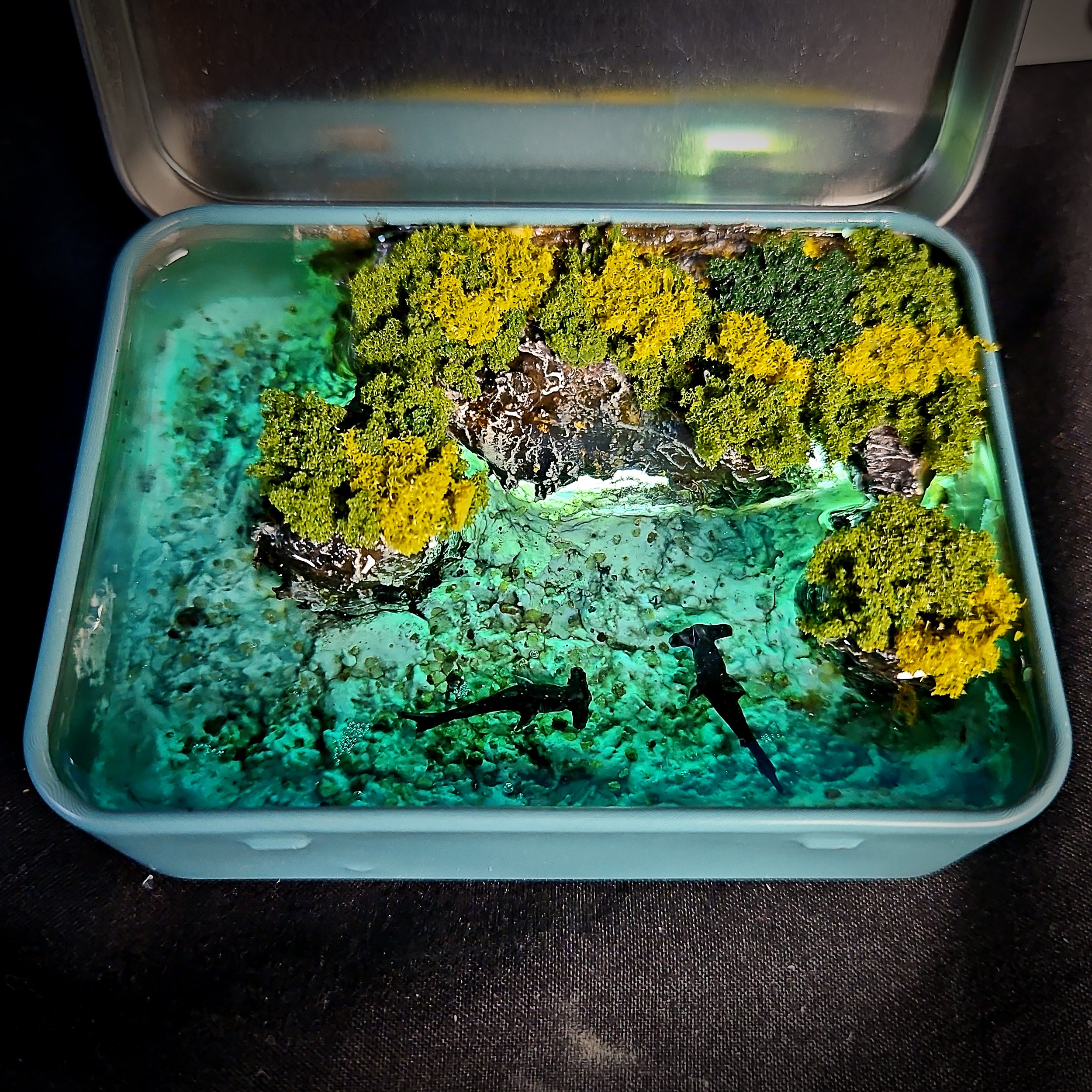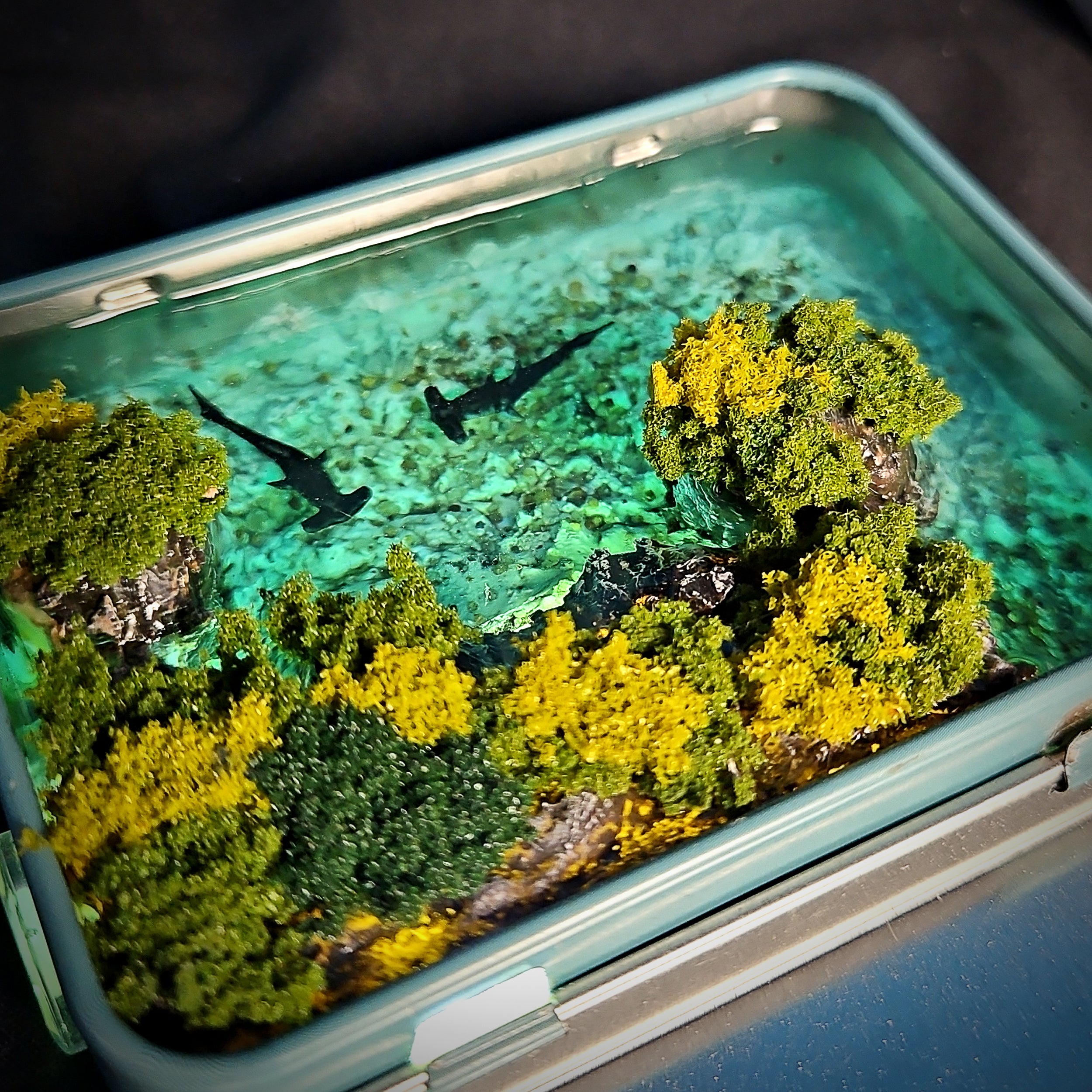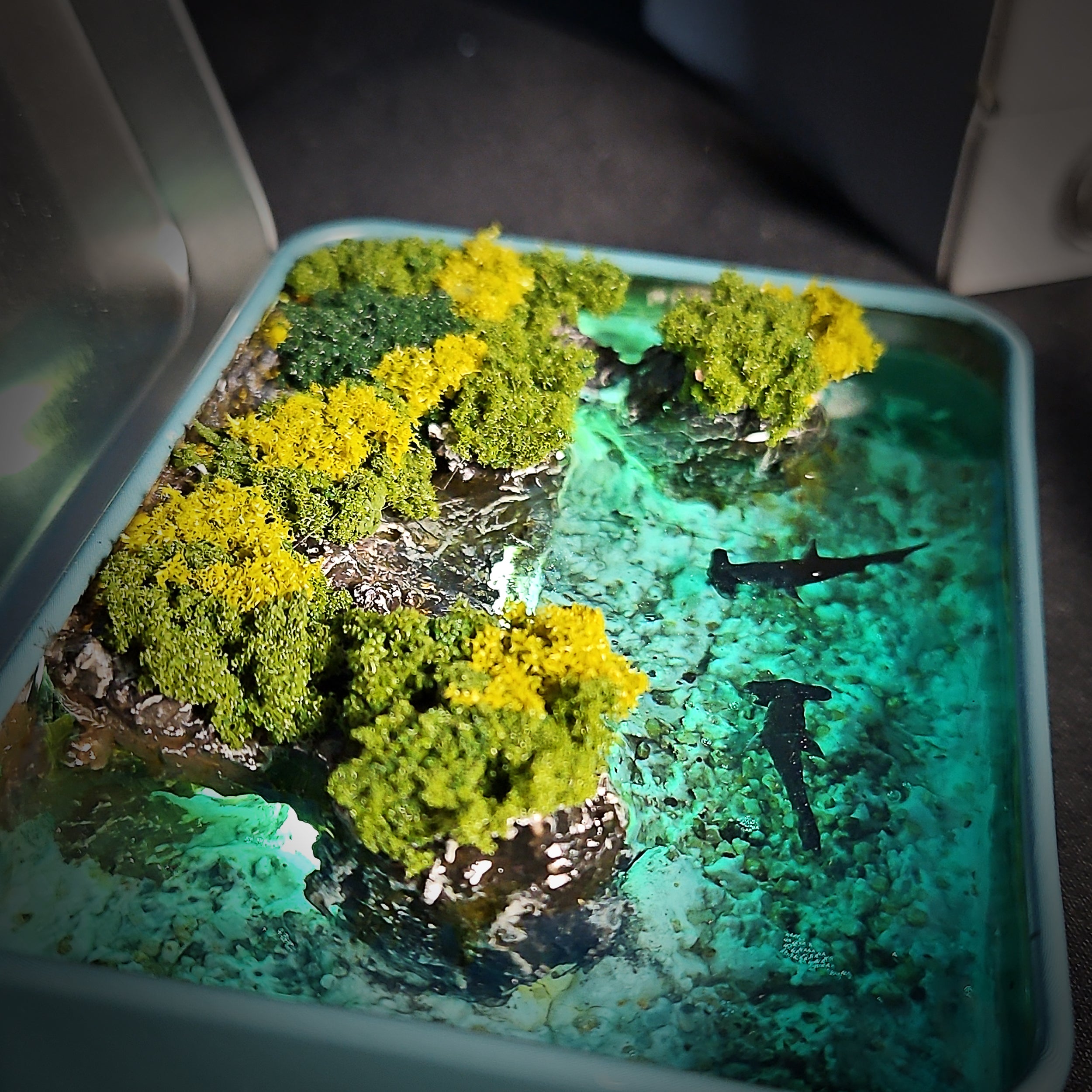 Discover the light from the shark -shaped tin and tin box in the ocean