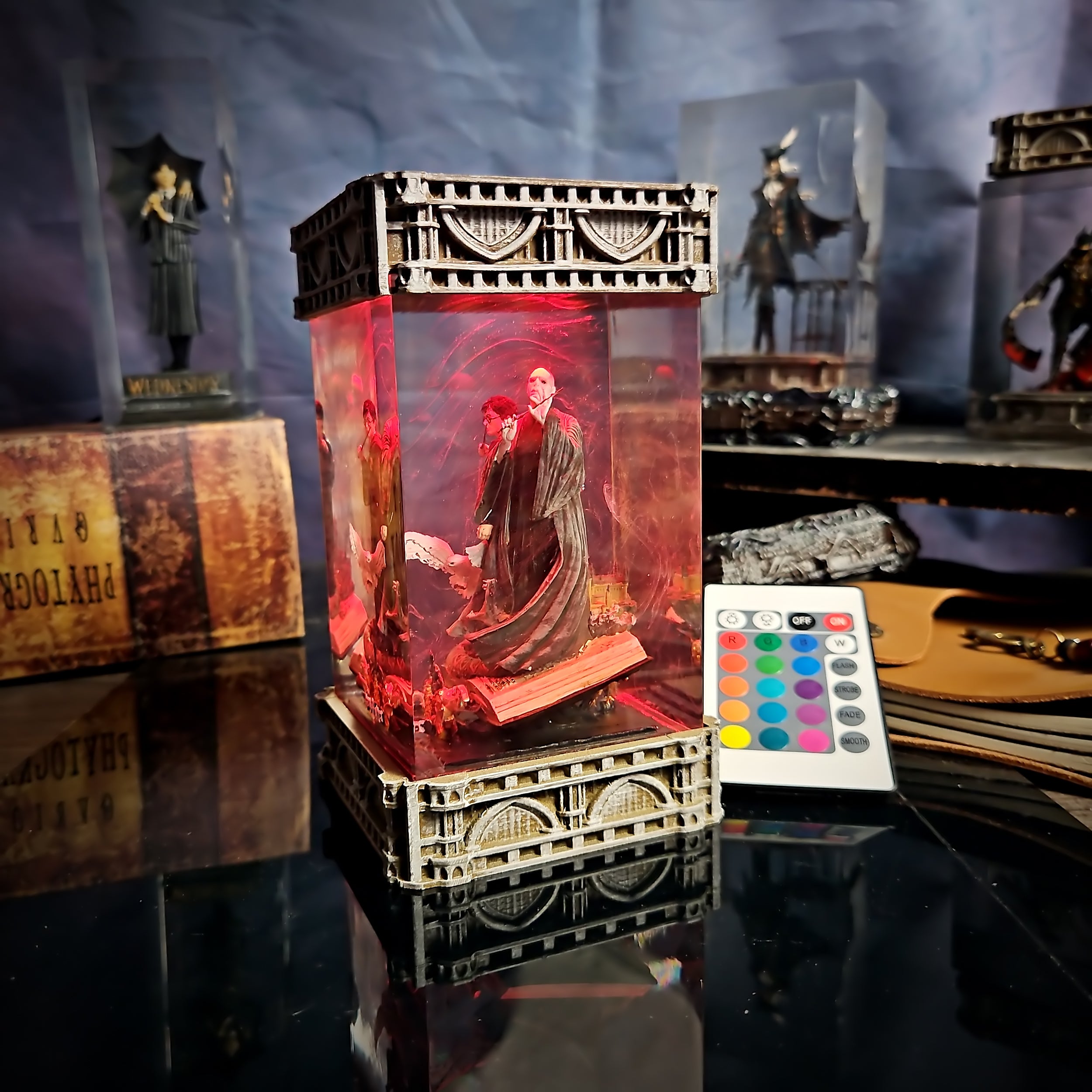 Bring the magic of the wizarding world into your space with this captivating Harry Potter & Voldemort resin lamp. Featuring the legendary rivalry between the Boy Who Lived and the Dark Lord, this lamp showcases detailed sculptures of both characters in a dynamic pose. The glowing LED light adds an enchanting ambiance, perfect for fans who want to celebrate the magic and mystery of the series.