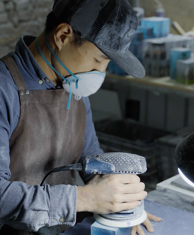 - Demolding & Surface Finishing – The lamp is sanded and polished for a glass-like finish.
