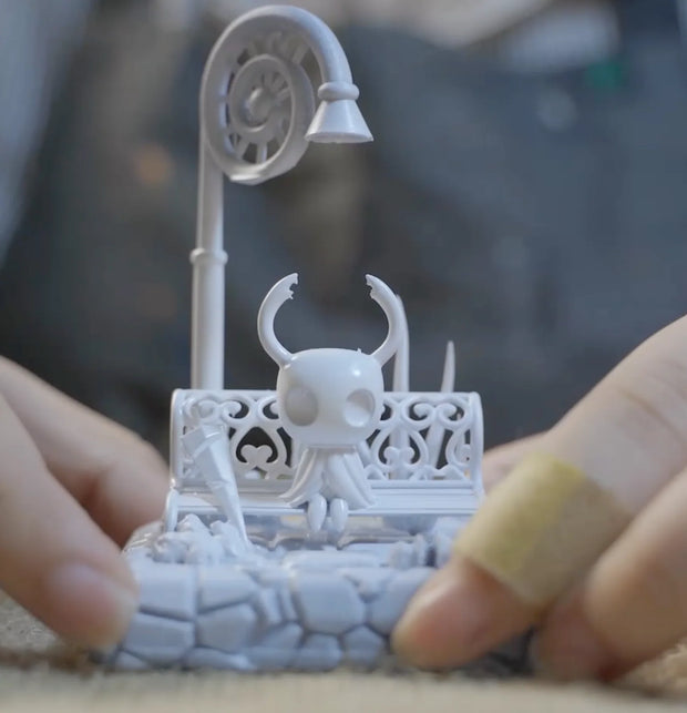 Step into the mystical world of Hallownest with the Hollow Knight V1 Resin Lamp. This piece captures the courageous little Knight standing tall amidst shadows and silence. With hand-painted detail and a glowing base, it’s a beautiful homage for fans of the indie classic — whether displayed as a night light or a collector’s treasure.