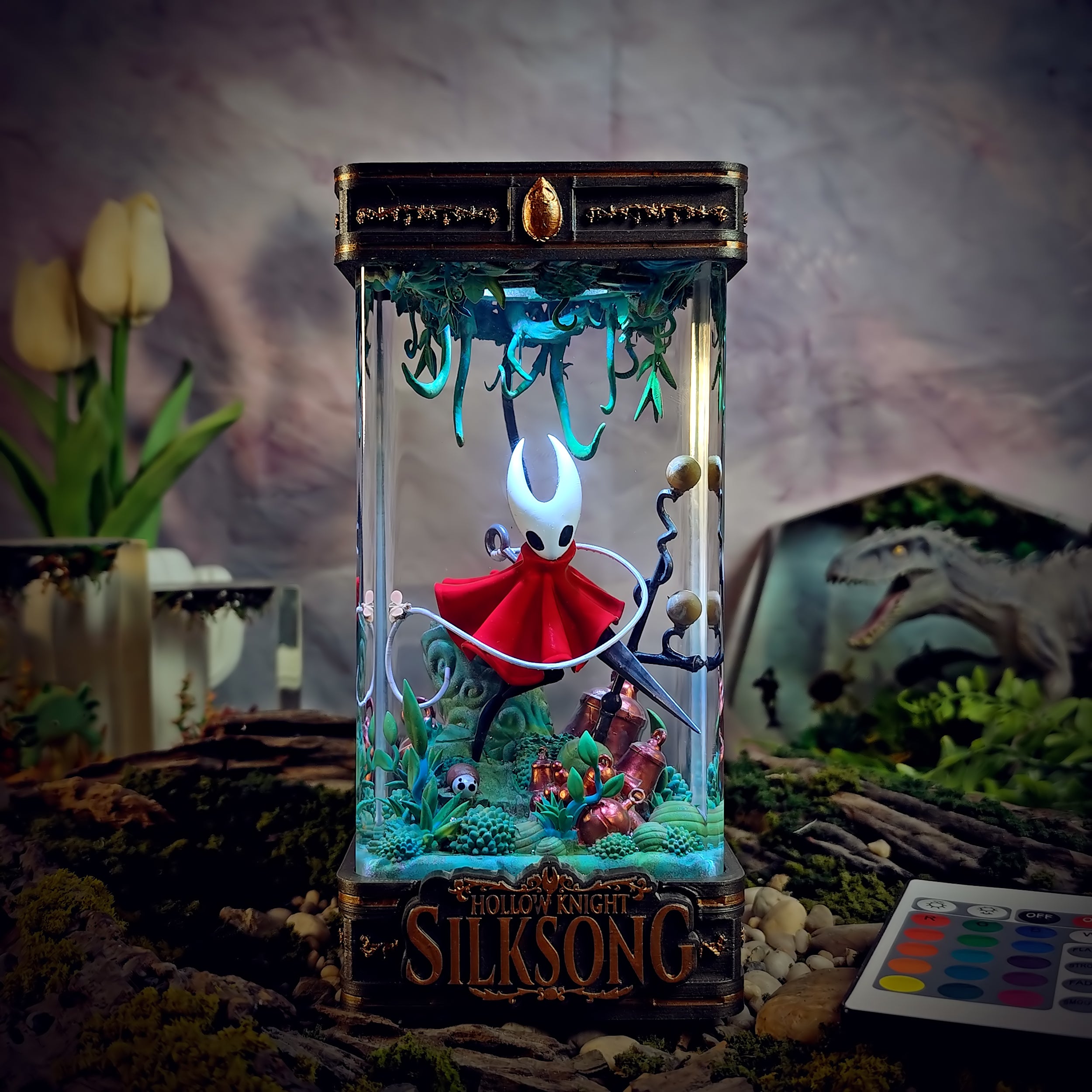 The soft, ambient lighting makes this Silksong resin lamp not only a decorative masterpiece but also a comforting source of light that transforms any room into a serene fantasy space.