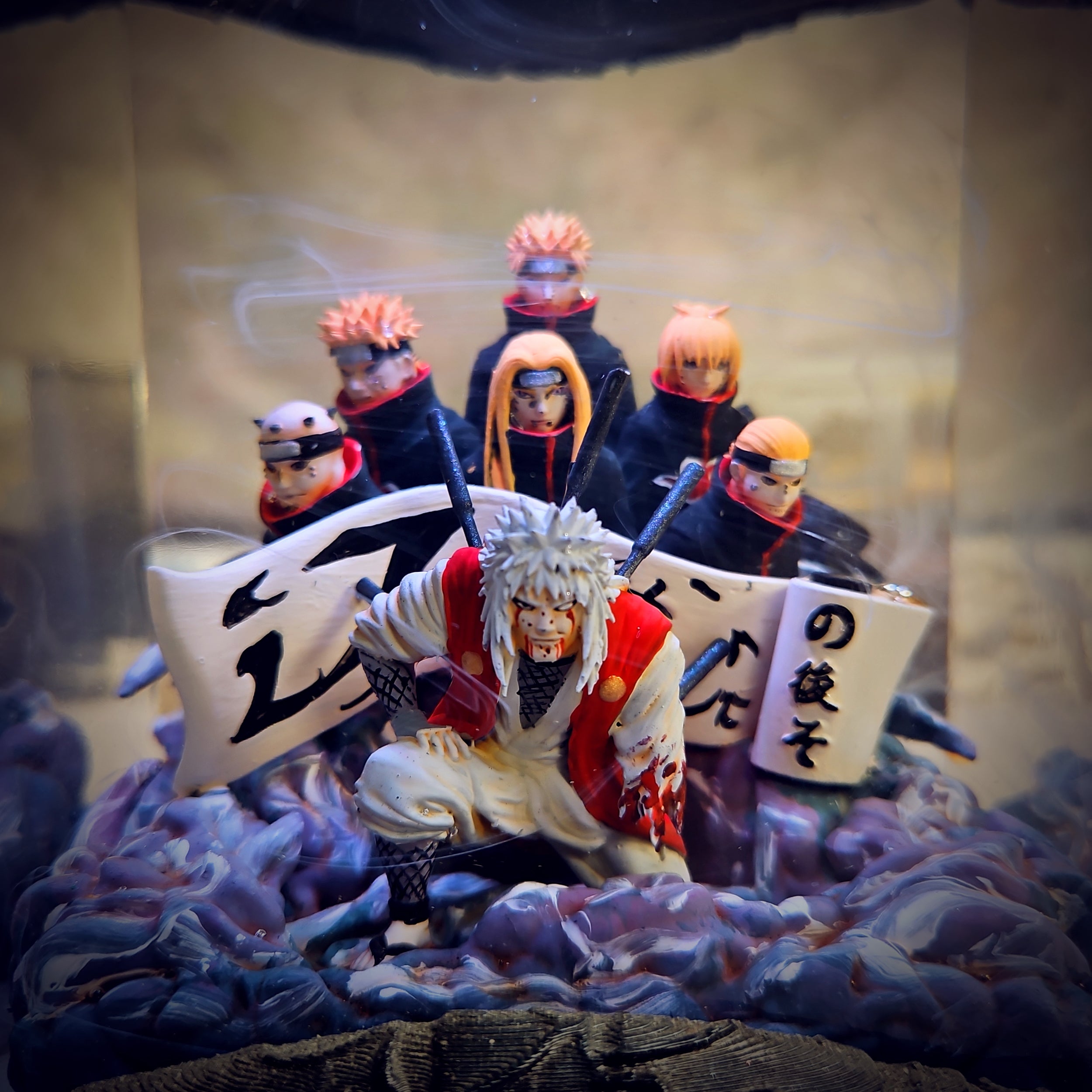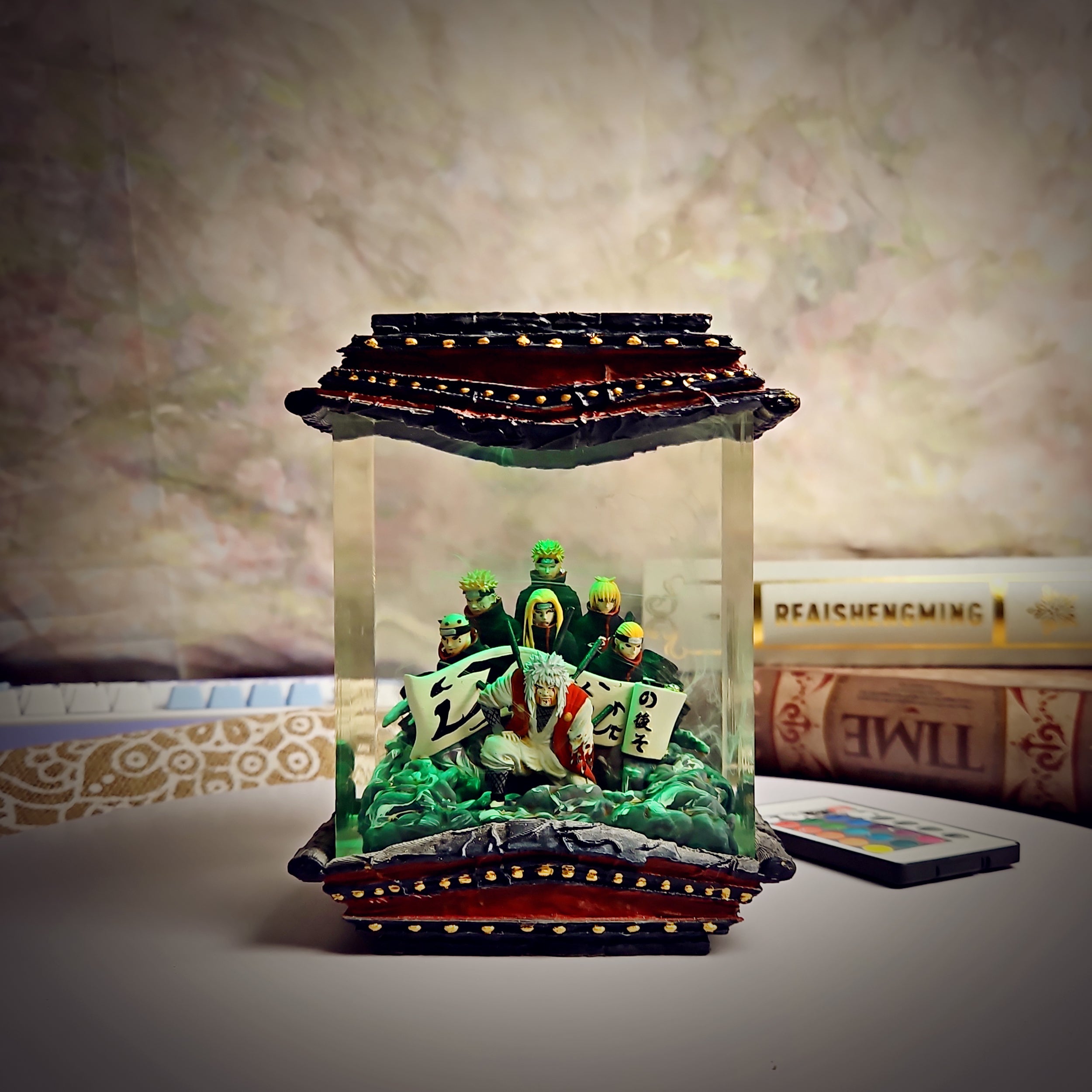 Celebrate the legendary Sannin Jiraiya and the Sixth Hokage with this exquisite resin lamp. It depicts both characters in iconic poses, highlighting their powerful bond and ninja spirit. This lamp radiates a soft glow that brings the figures to life, adding a mystical touch to any room.