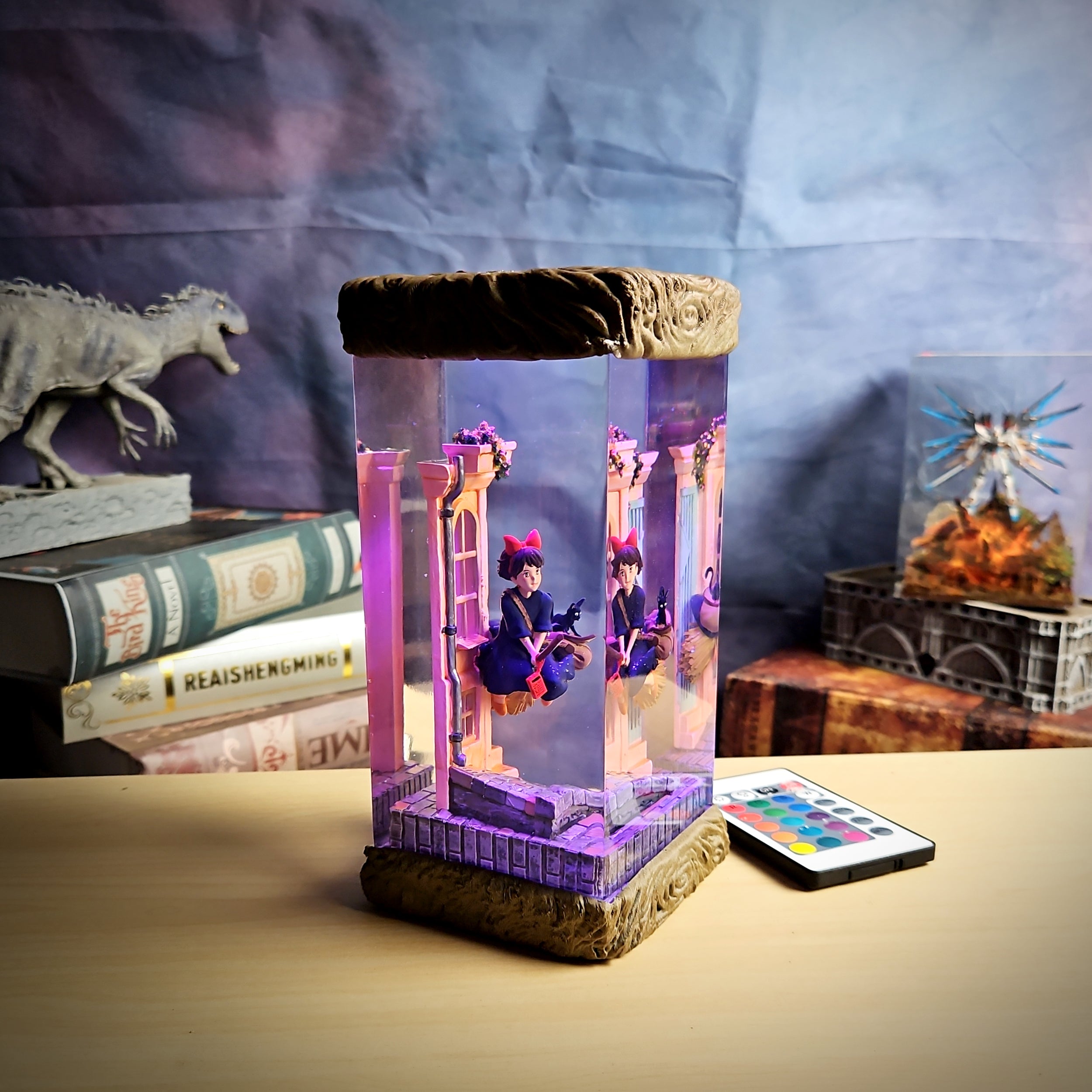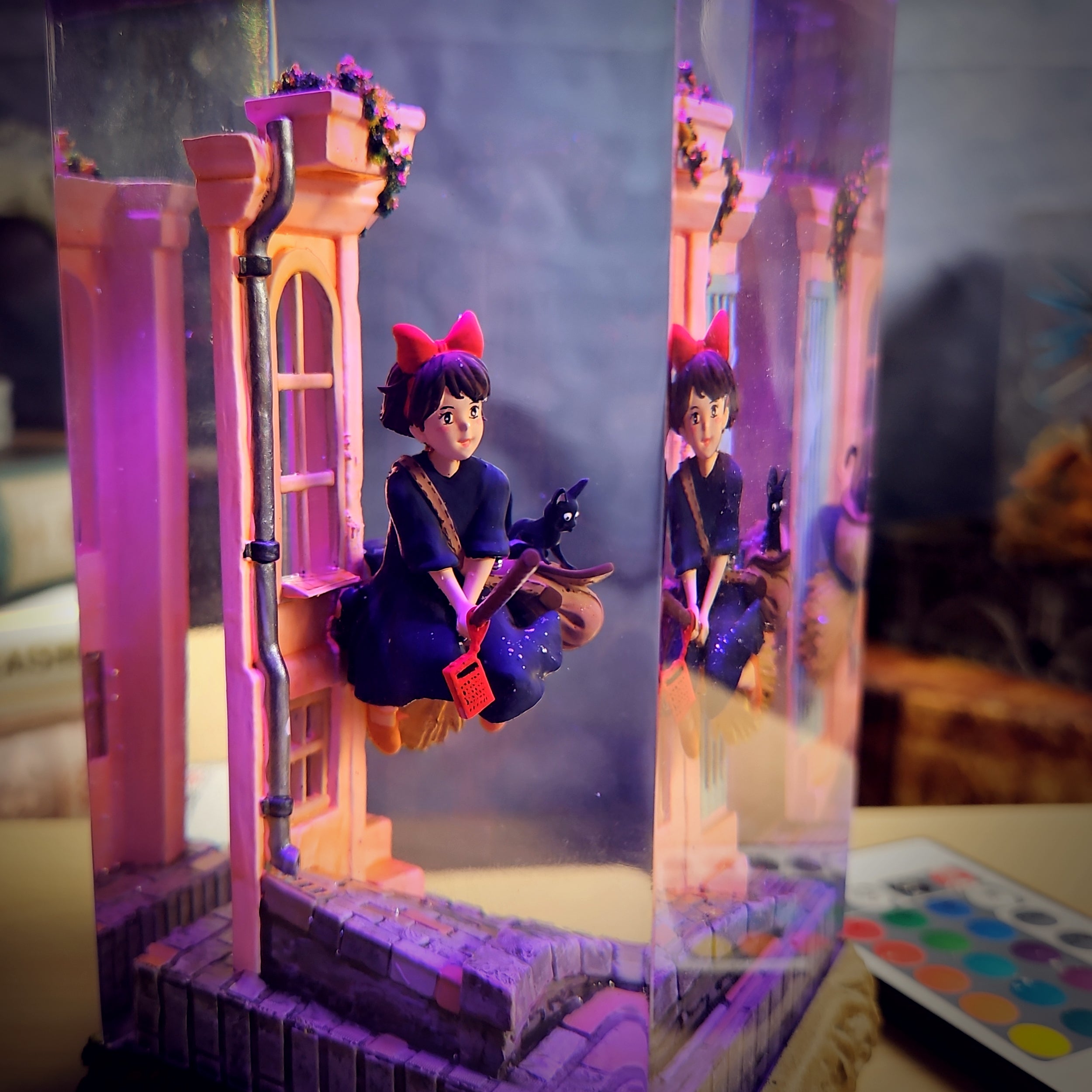 Inspired by Kiki's Delivery Service, this resin lamp brings the charm of young witch Kiki and her black cat companion Jiji to life. With her broom in hand and a sense of adventure in the air, this lamp captures the lighthearted spirit and independence of a girl discovering her place in the world. Perfect for Ghibli fans and lovers of whimsical storytelling.