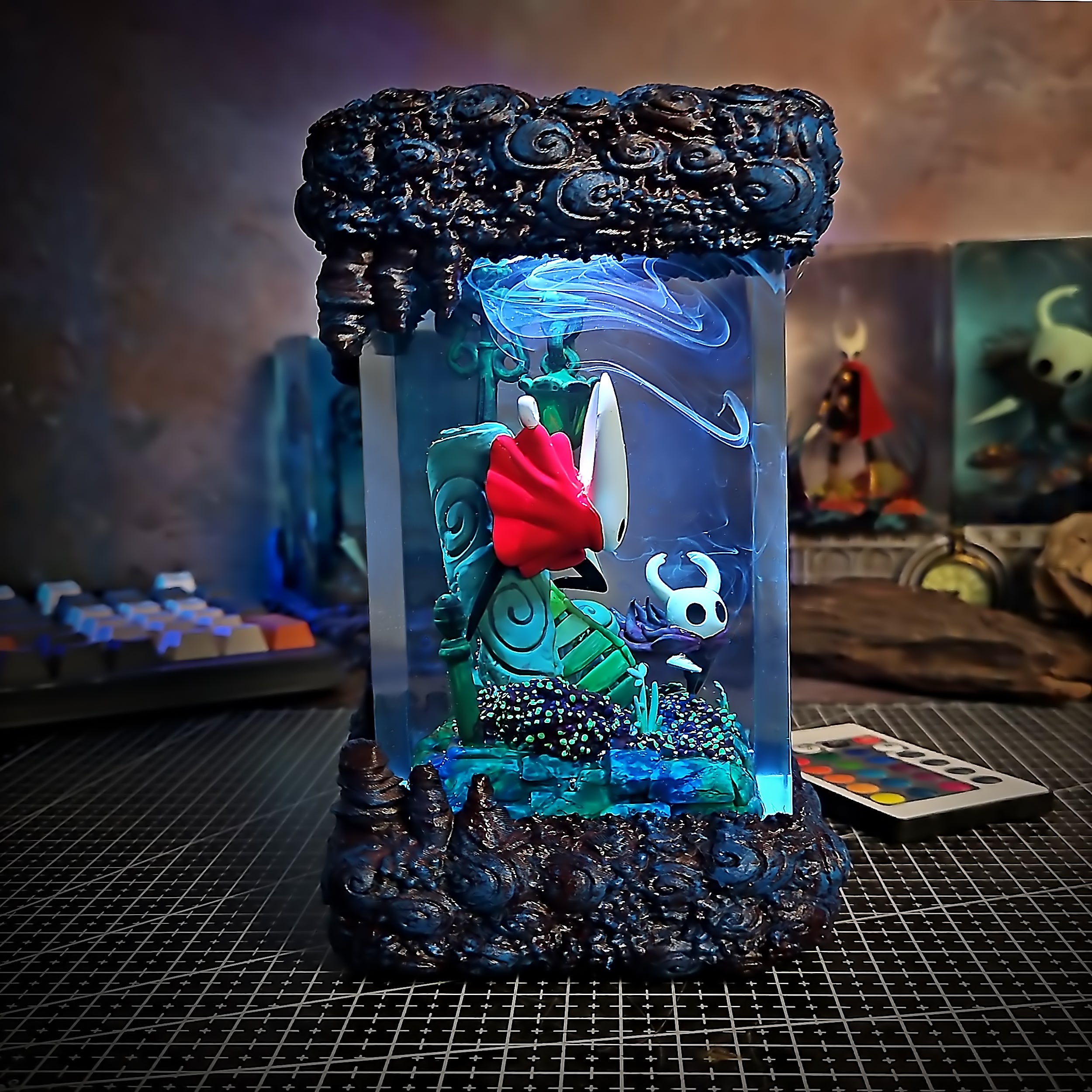 This dual-character lamp brings the intense bond between Knight and Hornet to life. Poised in battle-ready poses with signature weapons, this piece celebrates their legacy and the mystery they carry. With hand-painted elegance and glowing ambiance, it's a centerpiece for any Hollow Knight fan.