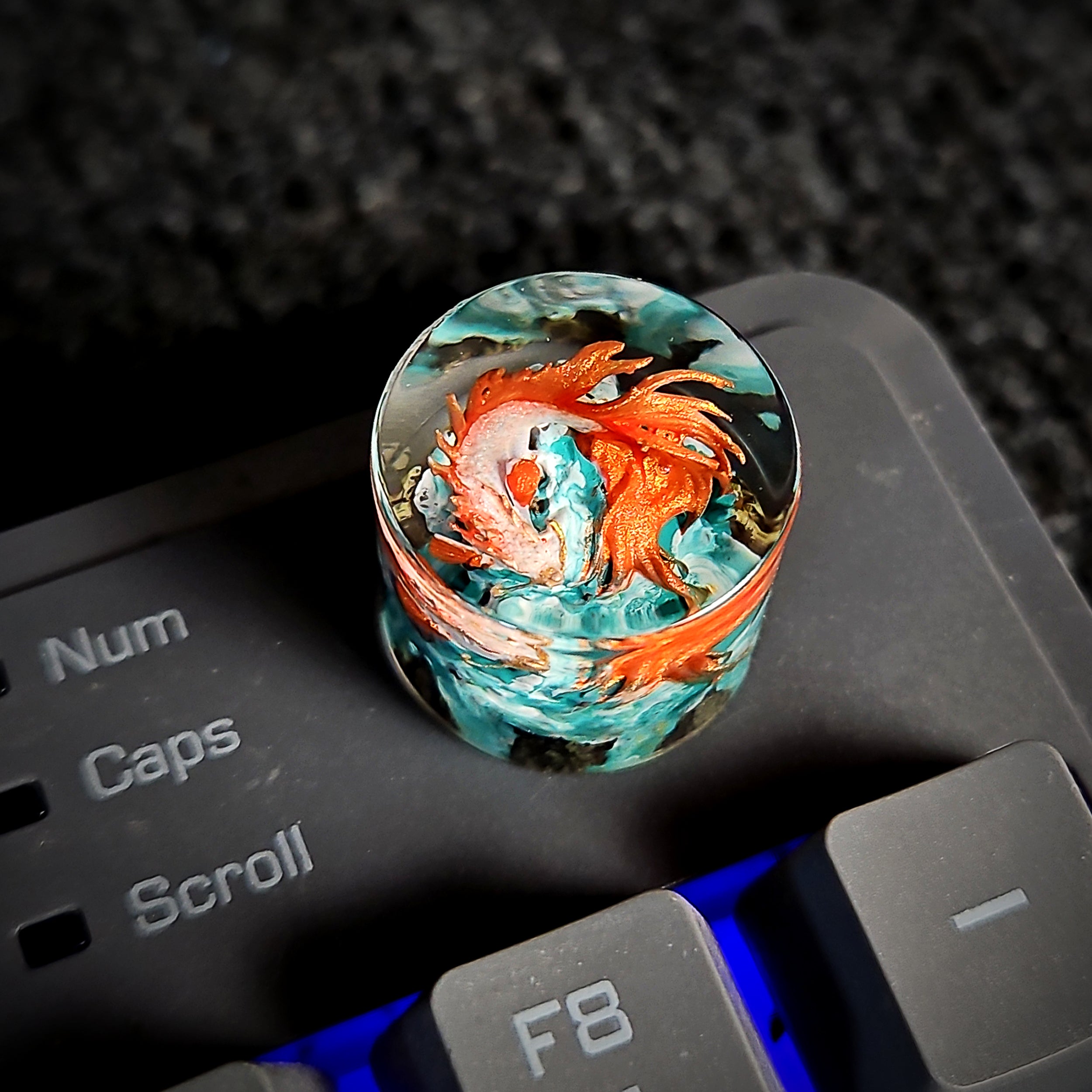 Dragon Koi – Handcrafted Resin Knob Keycap (Legend of the Water Dragon Edition)