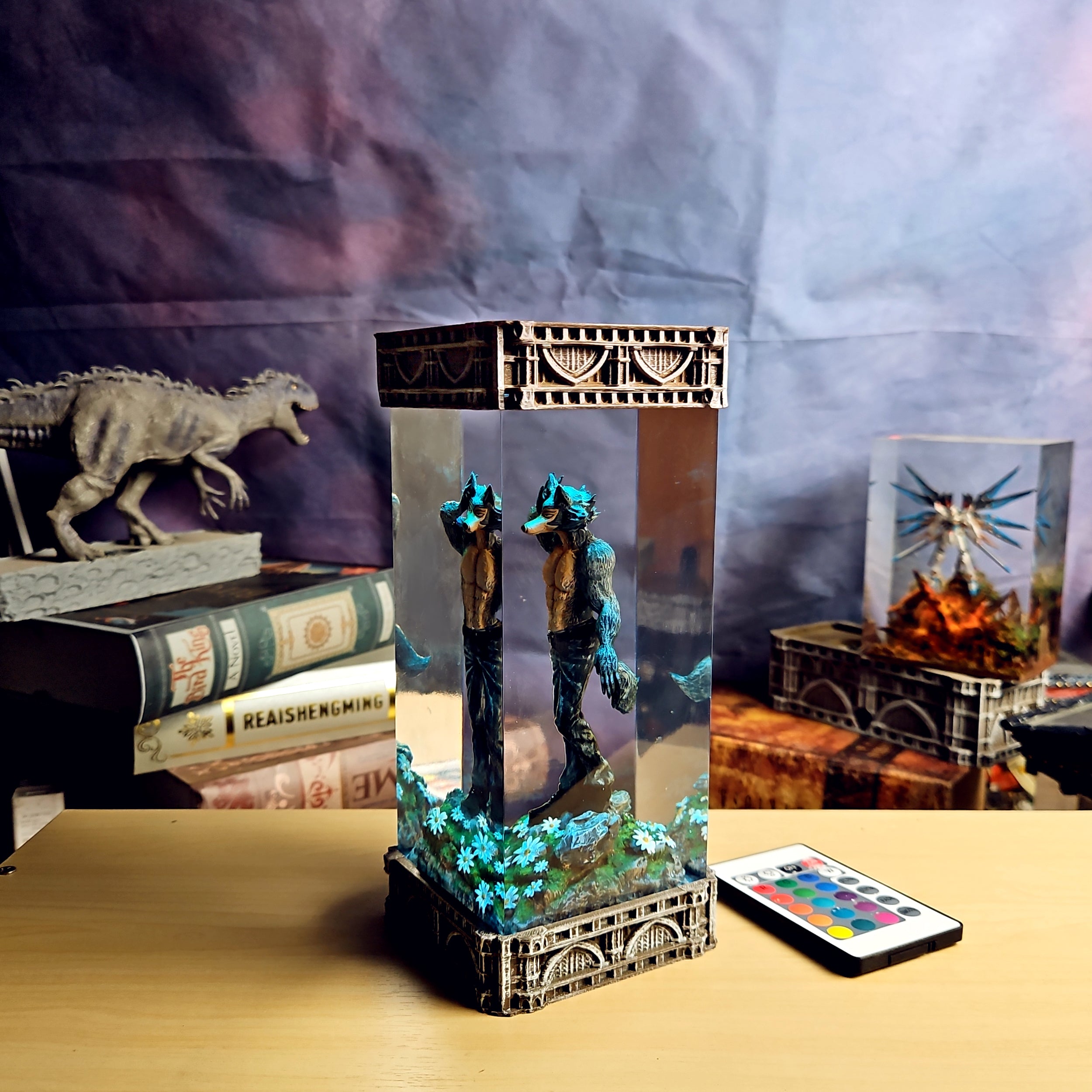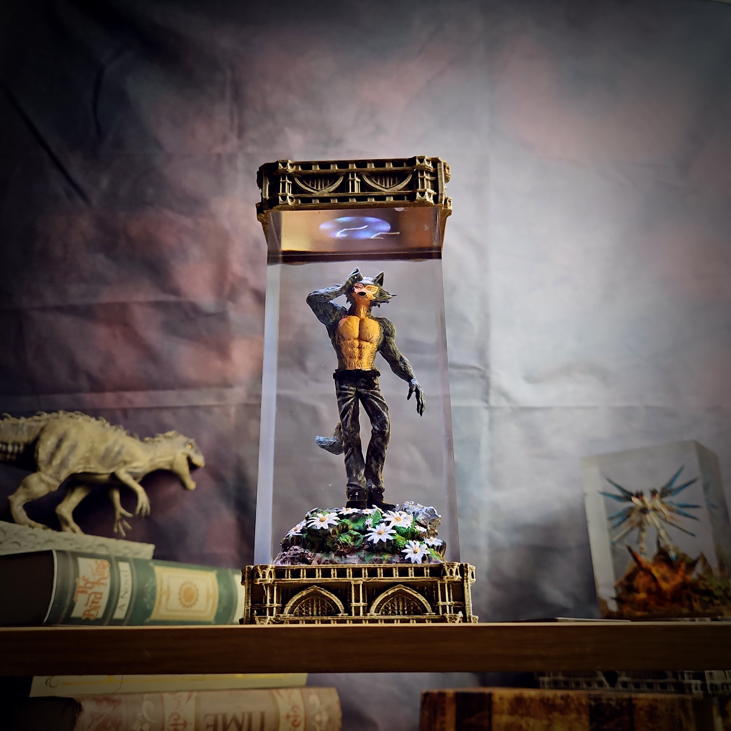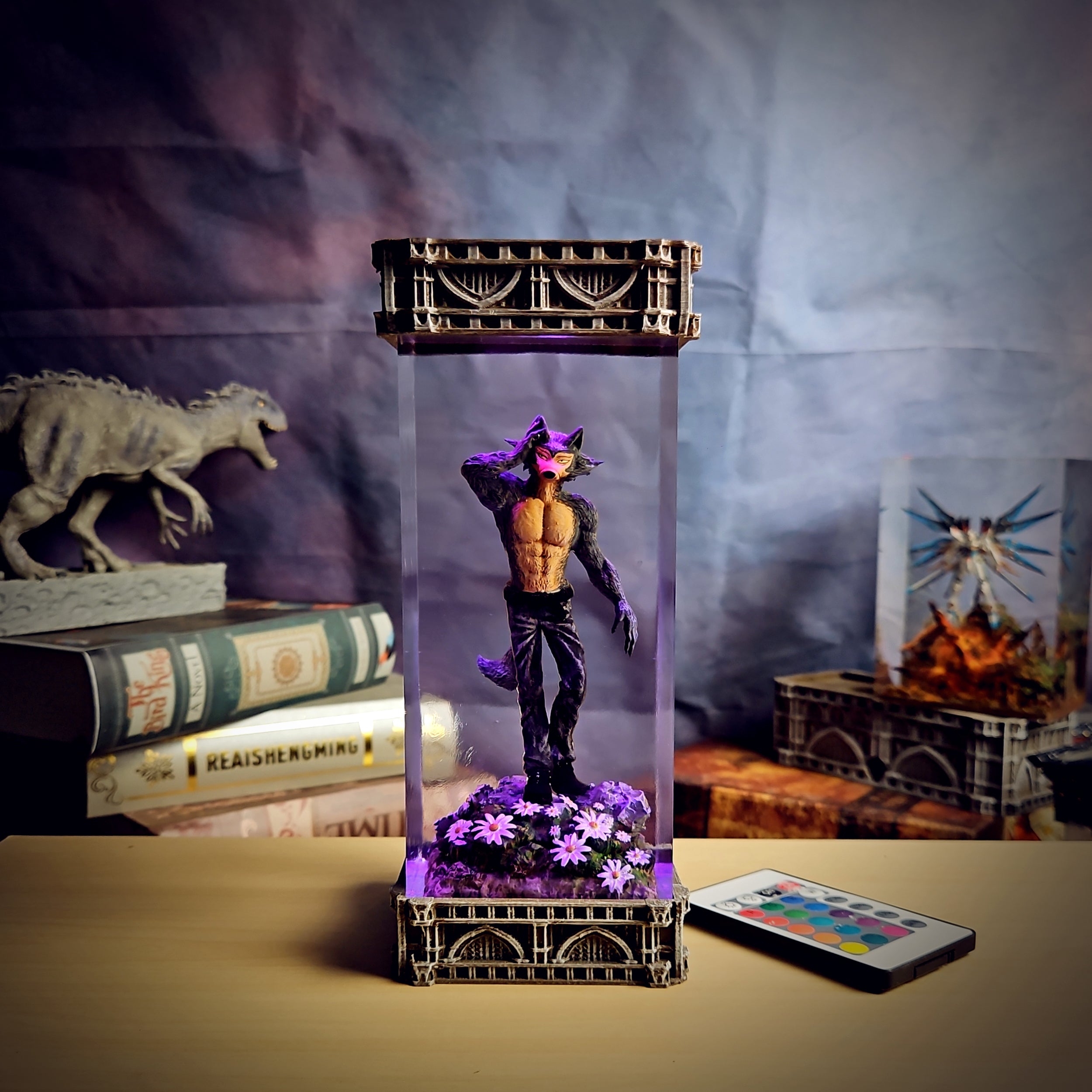 Step into the world of Beastars with this striking Legoshi Resin Lamp, featuring the thoughtful and conflicted grey wolf protagonist. Captured in a stoic, powerful pose, the design reflects Legoshi’s quiet strength and inner turmoil. A perfect collectible for fans of the anime and manga, this piece balances artistic depth and atmospheric lighting.