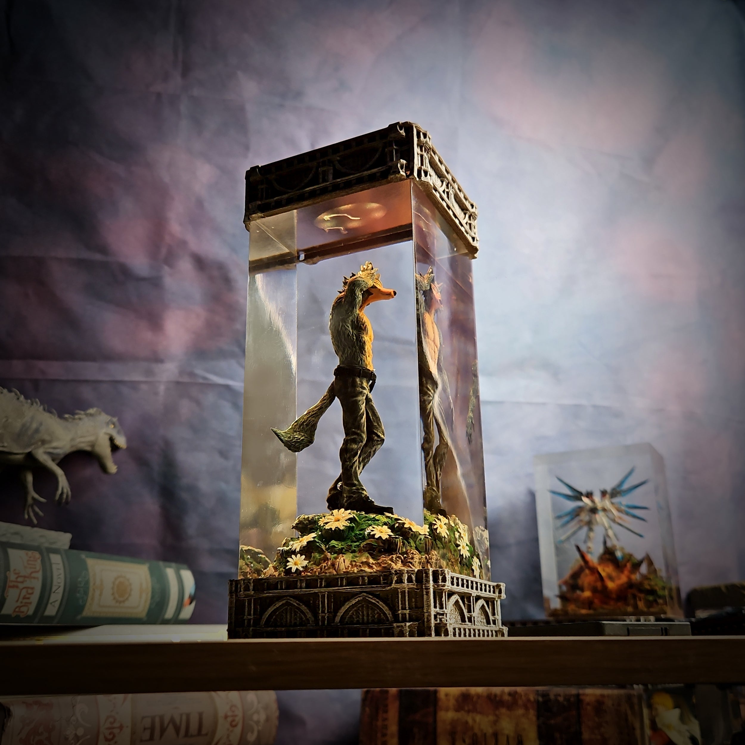 - Resin Casting: Crystal-clear resin encases the figure for a museum-like display.