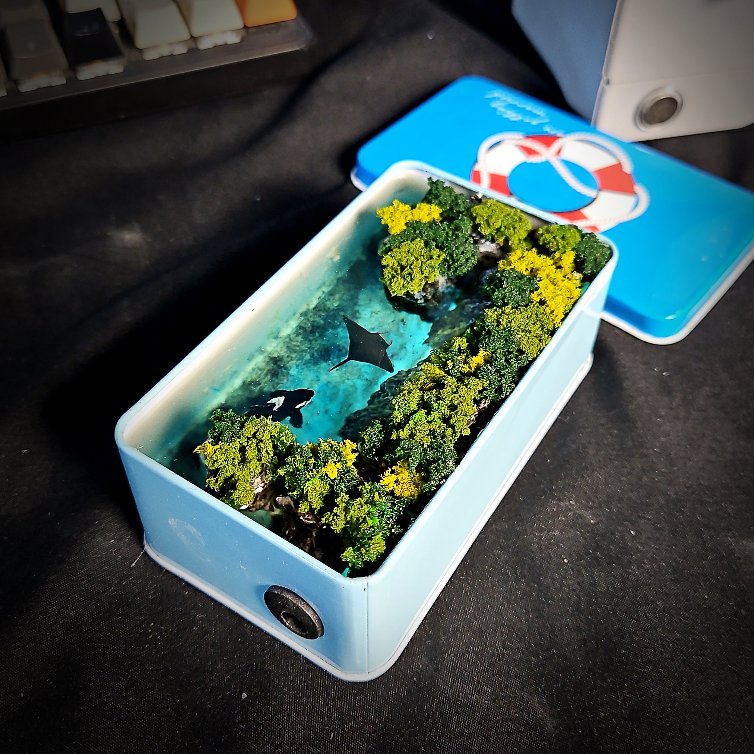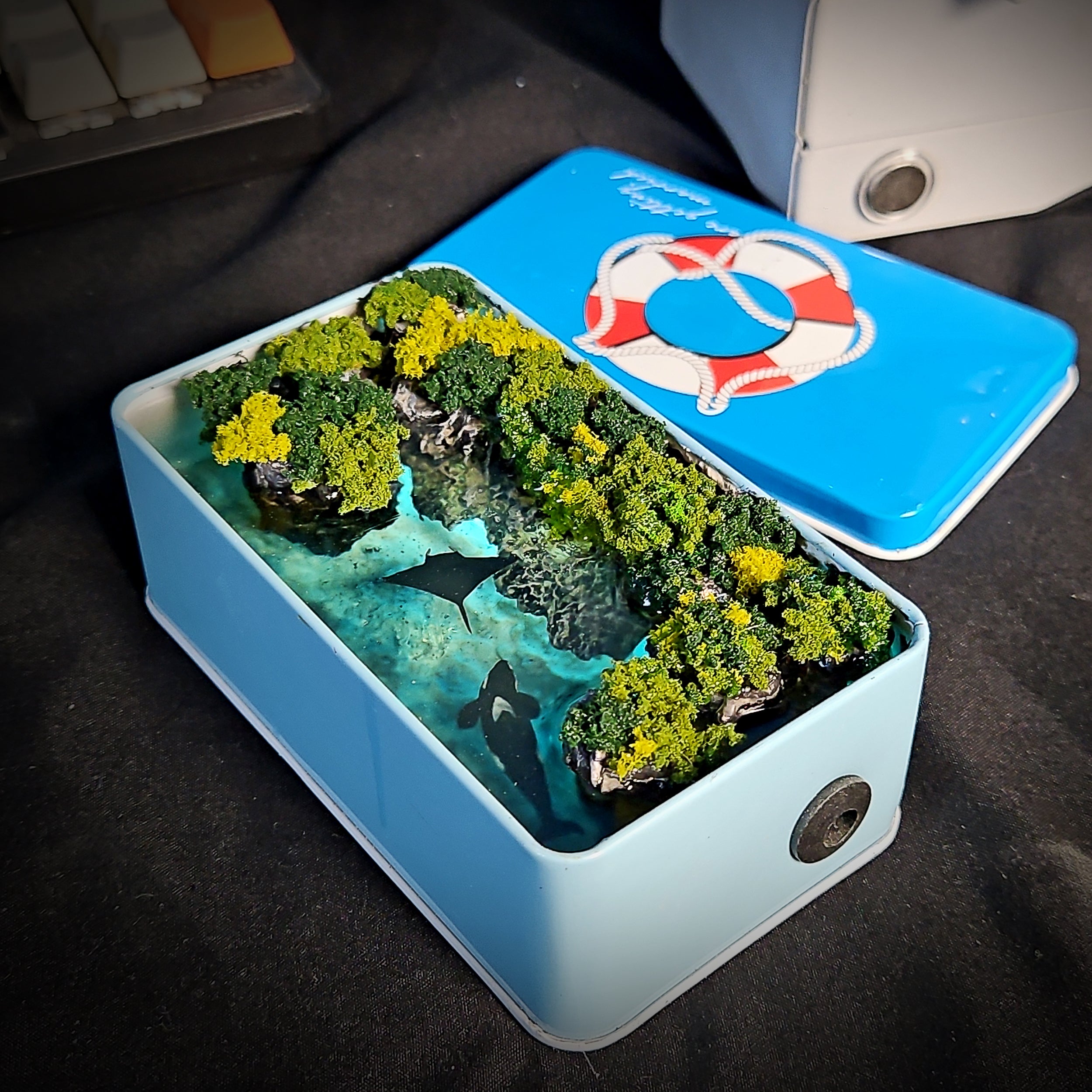 Own the Handmade Resin Tin Light Box simulating the ocean and bring the whole ocean world into your living space!