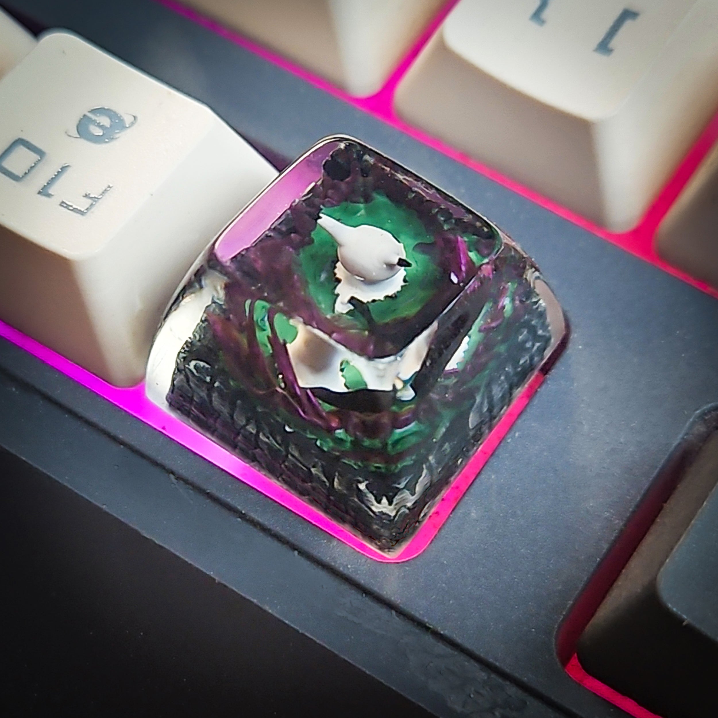 Each keycap is individually made by hand, ensuring that every piece has slight variations in tone, detail, and finish, making your keycap uniquely yours. The resin is polished to a glassy shine, enhancing the visual clarity and preserving the delicate details within. It’s both a tactile and visual delight every time you tap the key.