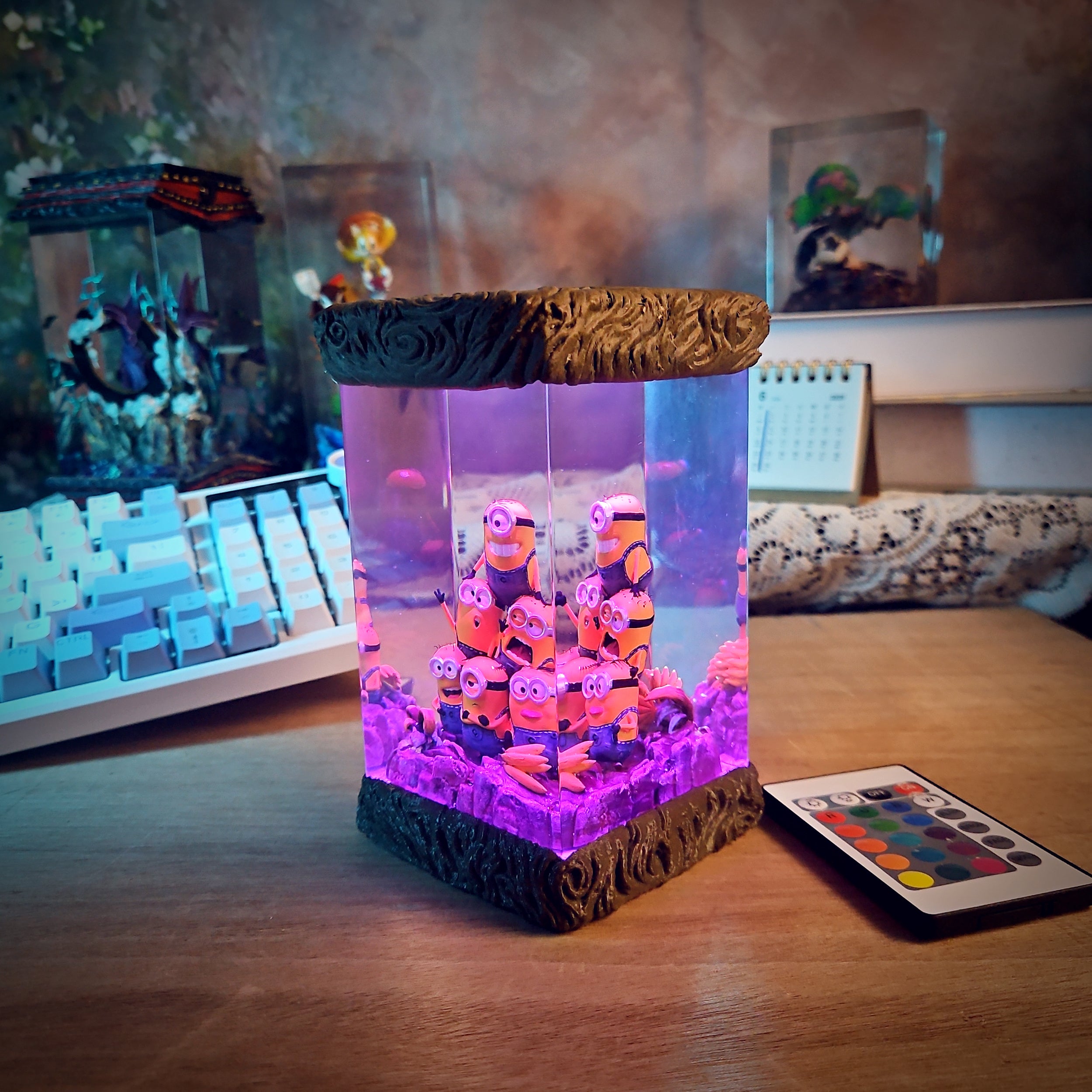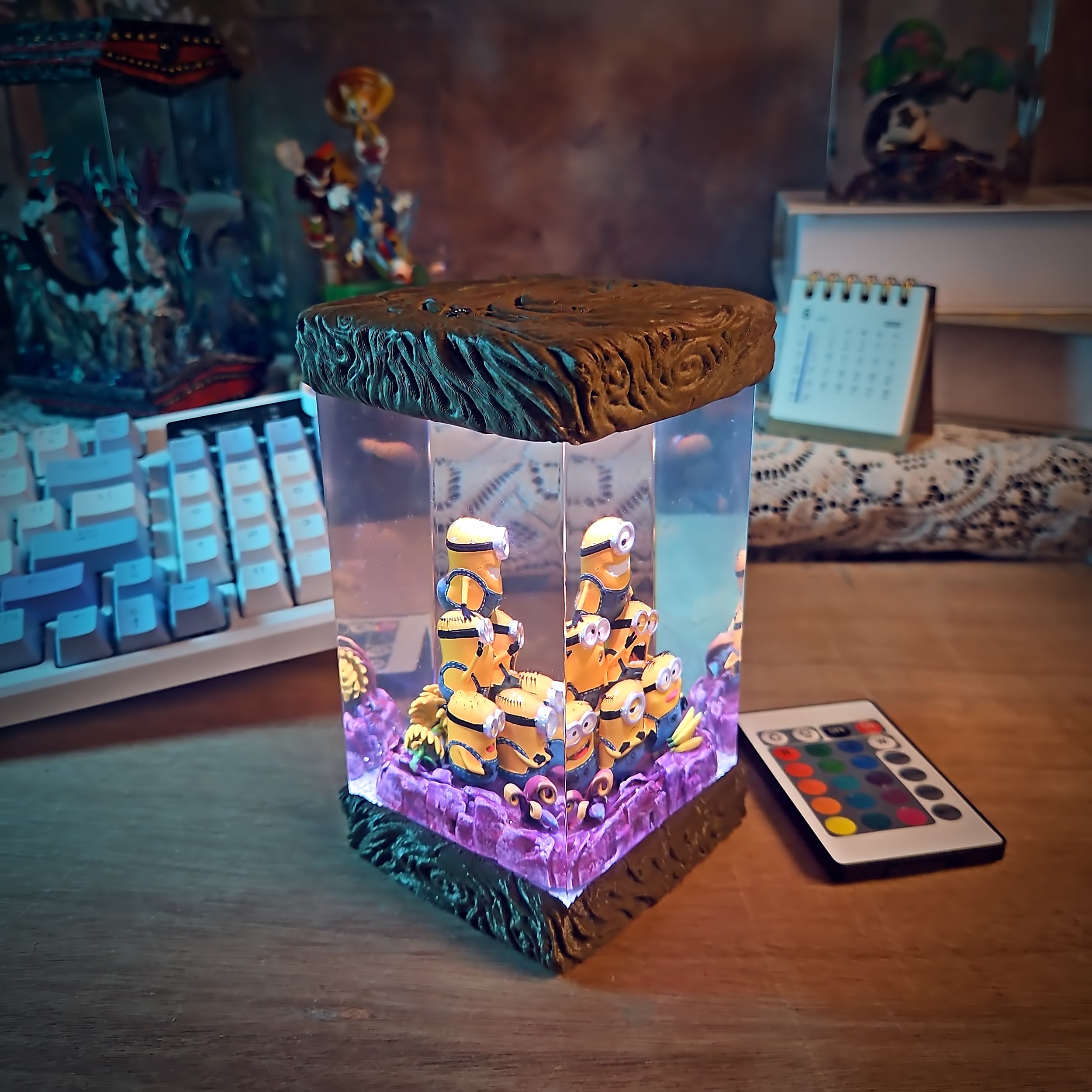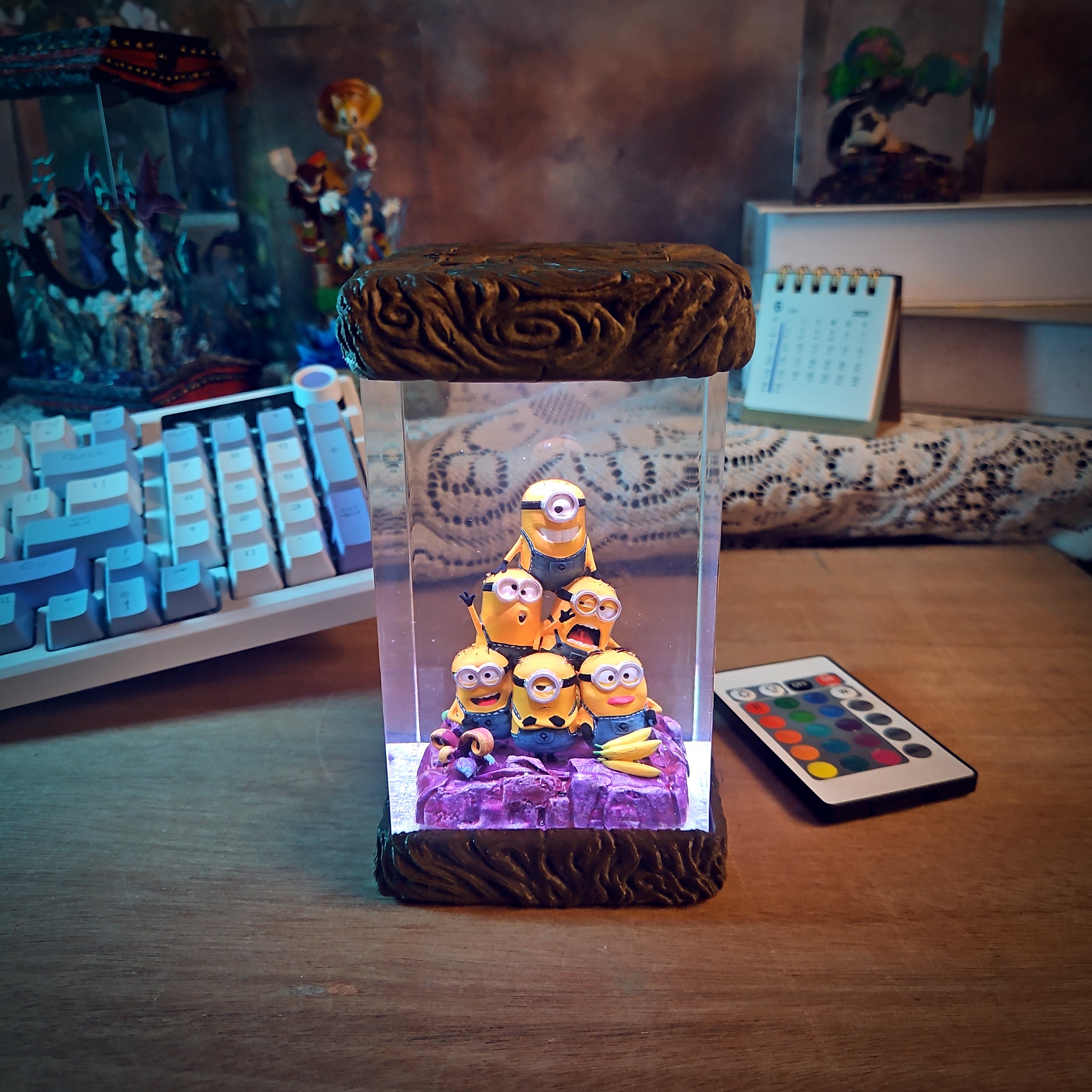 - LED Integration: LED light is built into the base, casting a soft glow that enhances the Minion’s features.