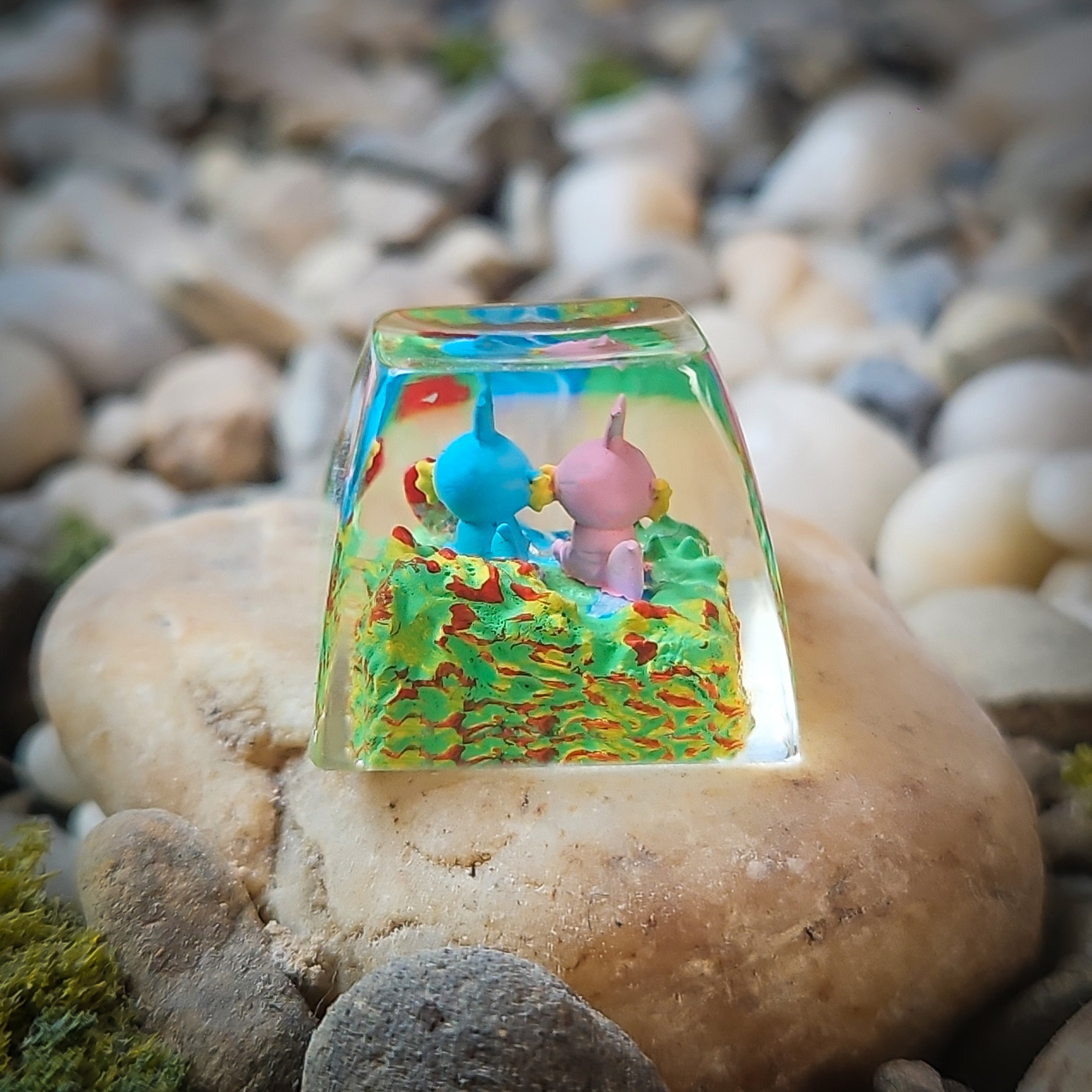 We're absolutely thrilled to introduce our latest creation: the Shiny Mudkip Artisan Keycap! This isn't just a keycap; it's a tiny, handcrafted masterpiece, painstakingly designed and brought to life with love and a whole lot of resin magic.