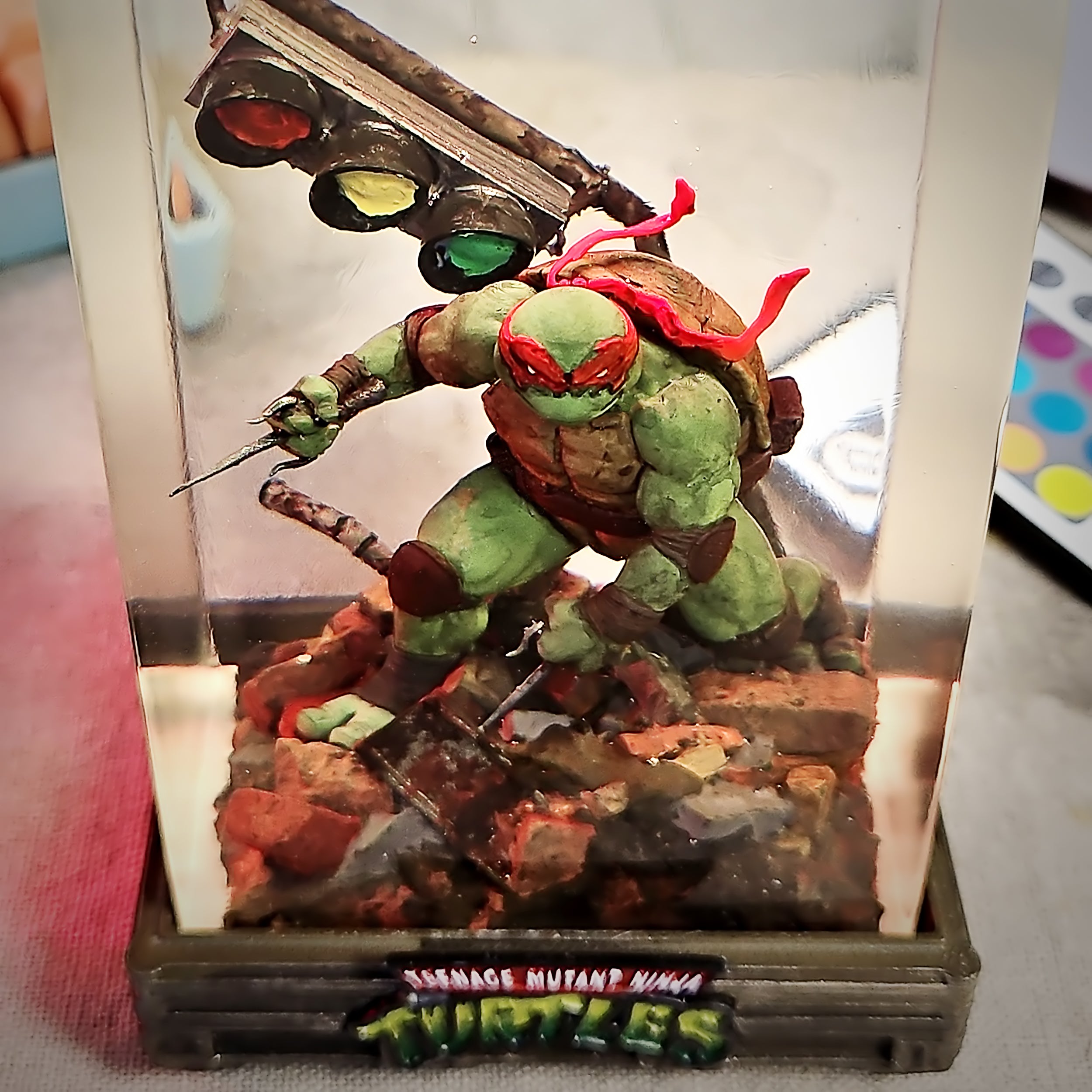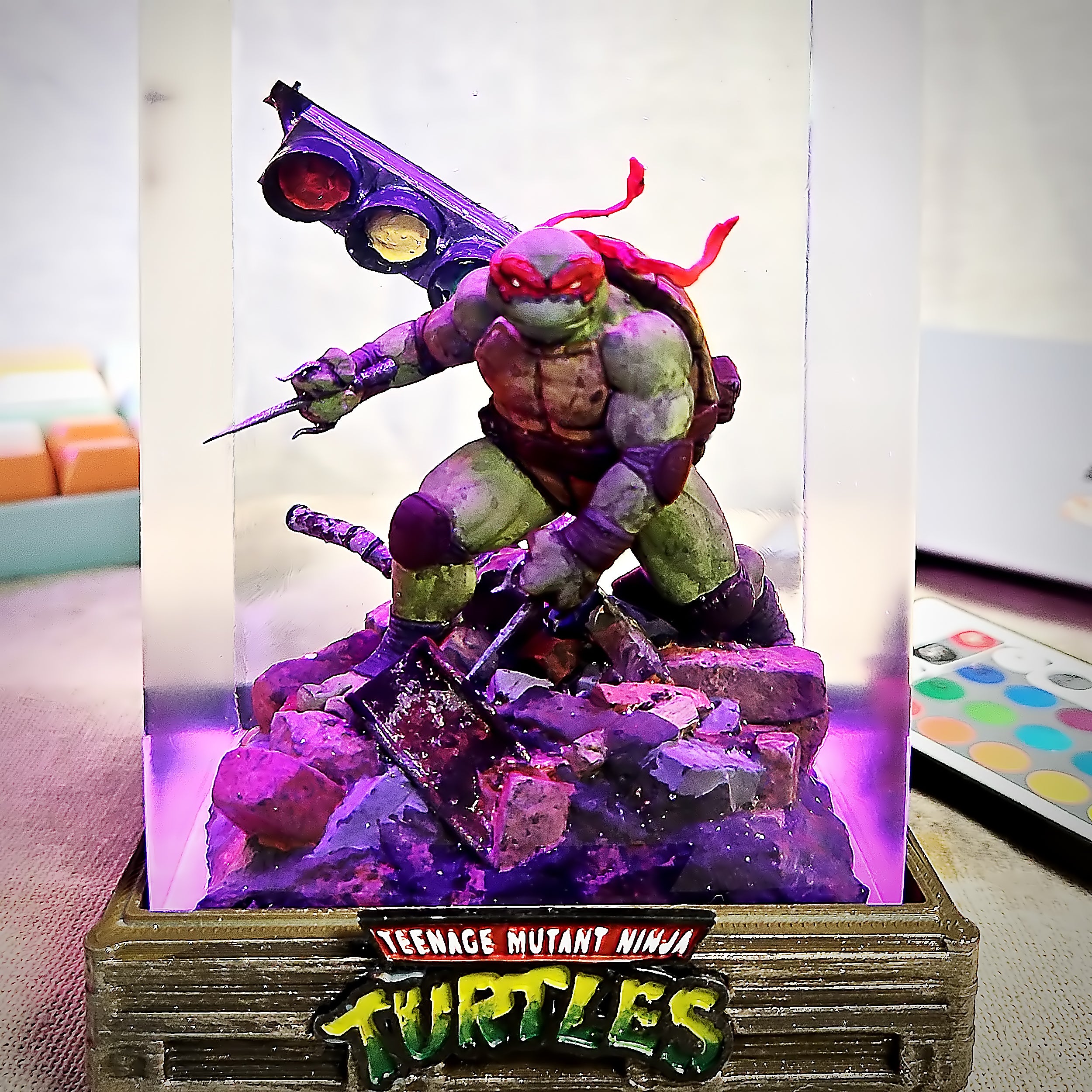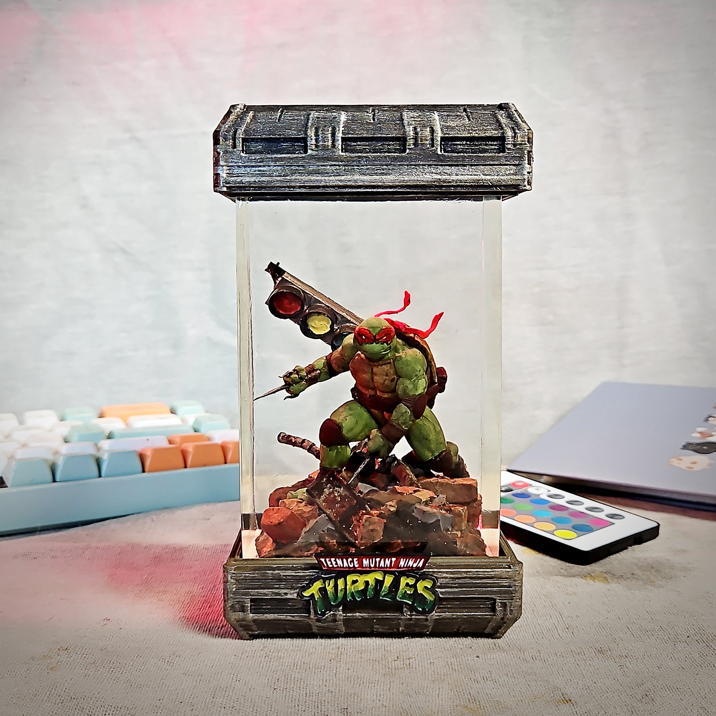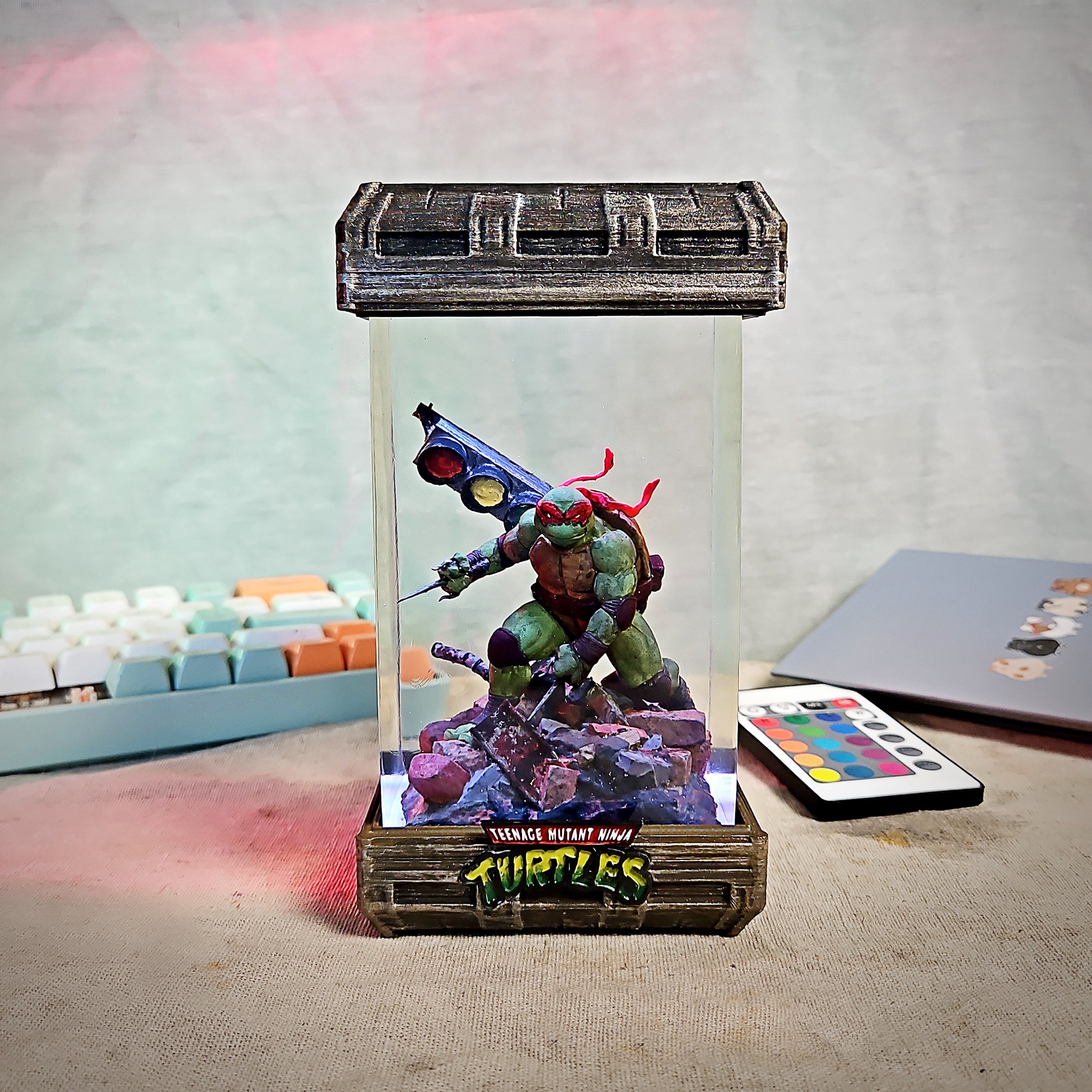 Fierce and passionate, the red-masked ninja turtle bursts into your space with warrior energy in this resin lamp. Designed to highlight his bold nature and powerful stance, this lamp embodies raw determination and heroic presence. The lighting sets off the strong lines and battle-ready pose, ideal for fans of intense action.
