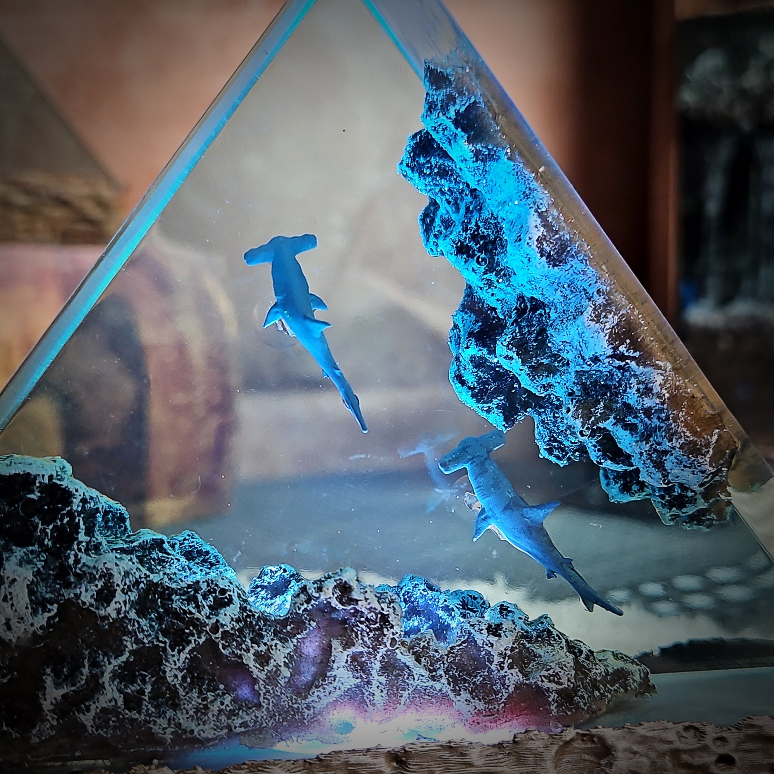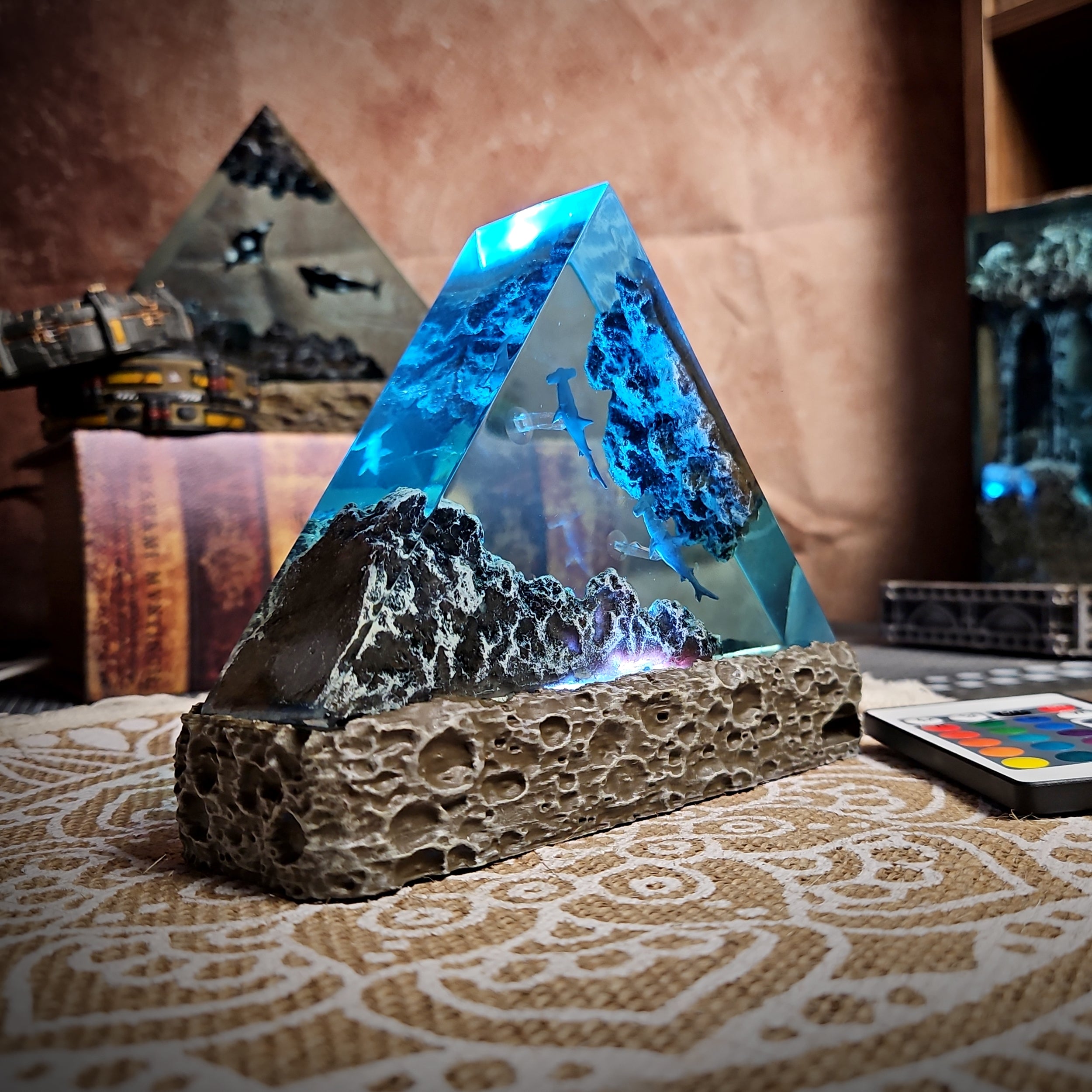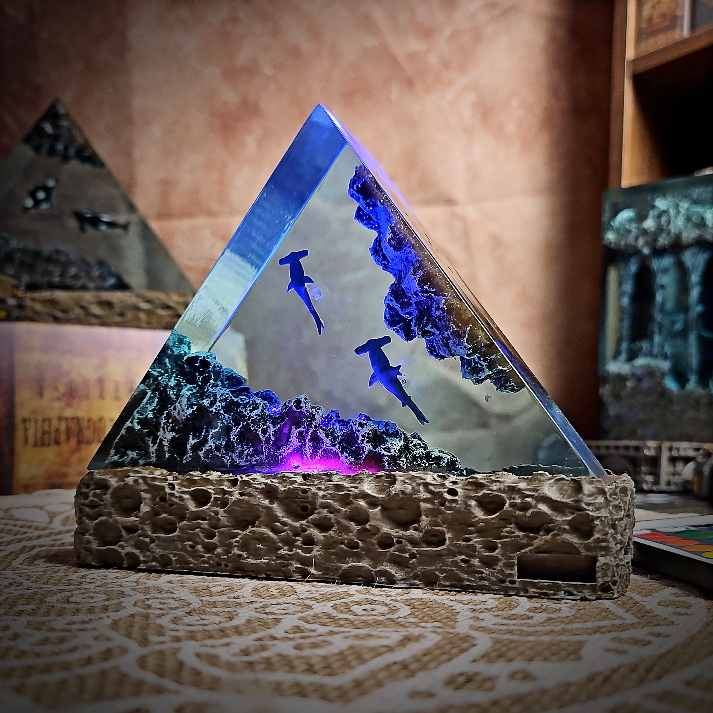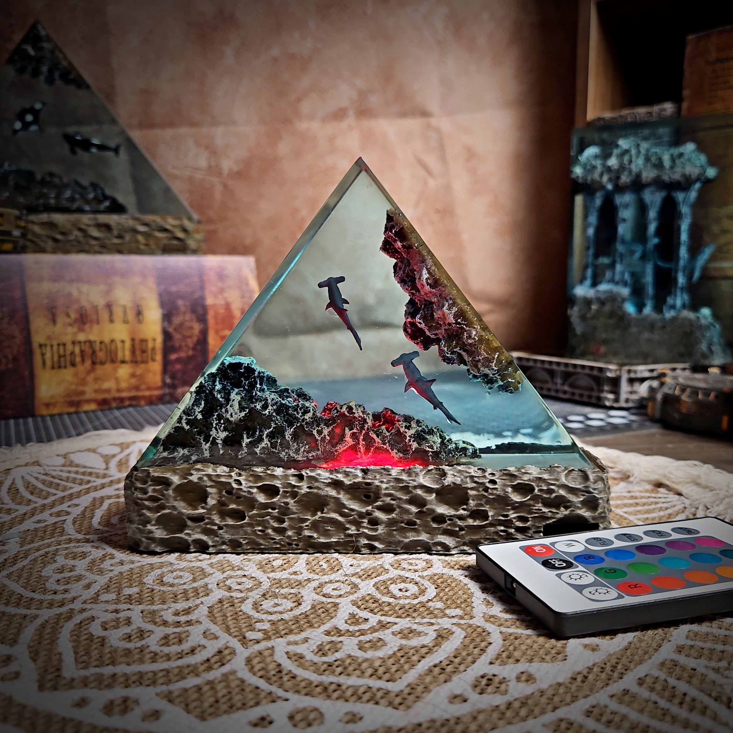 Dive into the deep blue with the Ocean Shark Triangle Resin Lamp. This piece captures a fierce yet majestic shark gliding through the sea, surrounded by swirling bubbles and marine details. A perfect blend of elegance and power, it’s ideal for ocean lovers and collectors of aquatic-themed art.