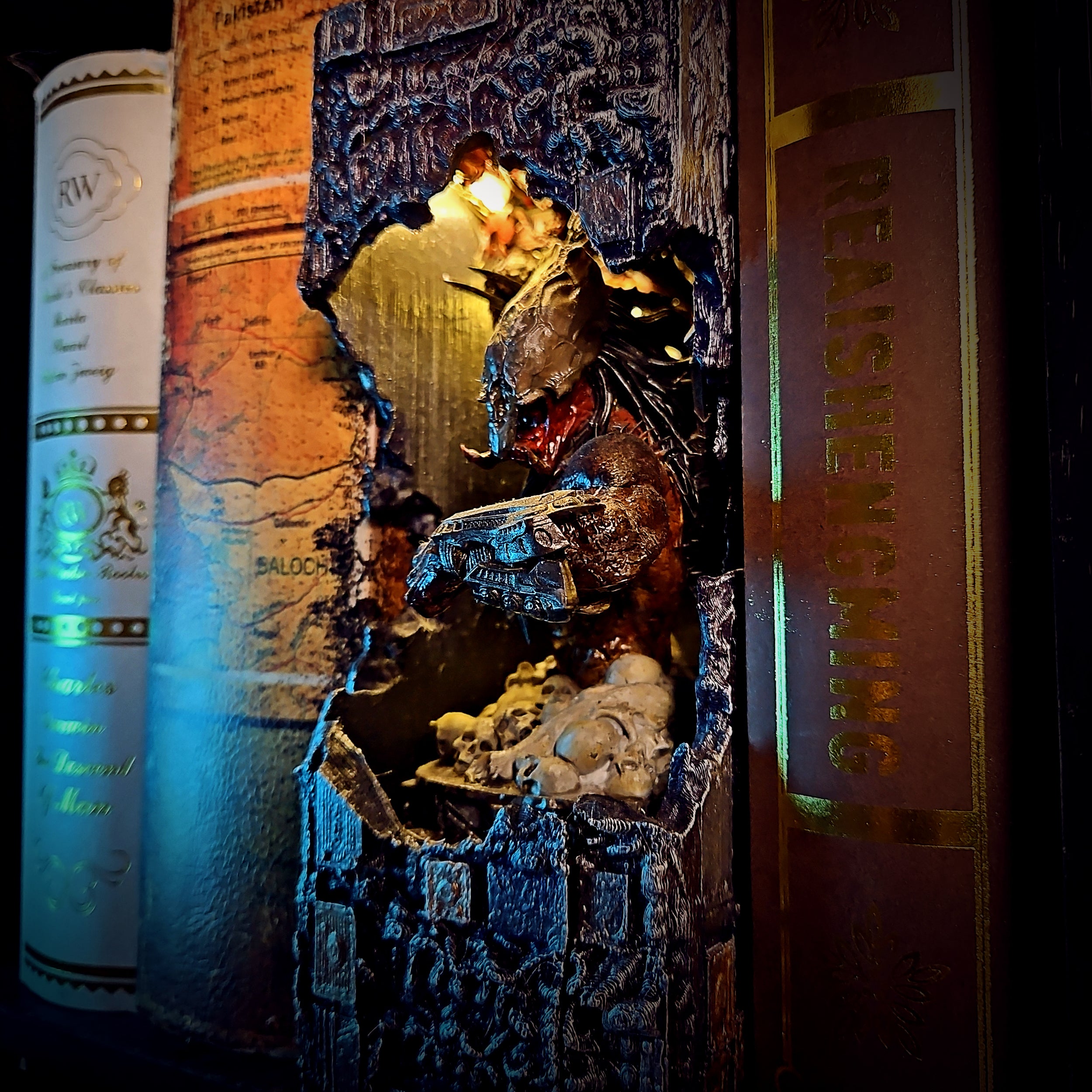 Predator Booknook Shelf Insert - Yautja Jungle Hunter Bookshelf Diorama