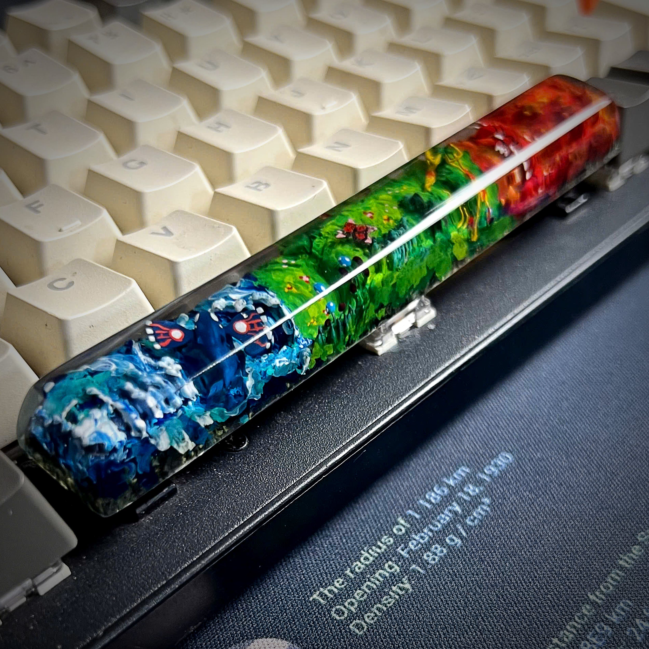 Handmade Resin Spacebar – Rayquaza Pokémon Inspired Keycap