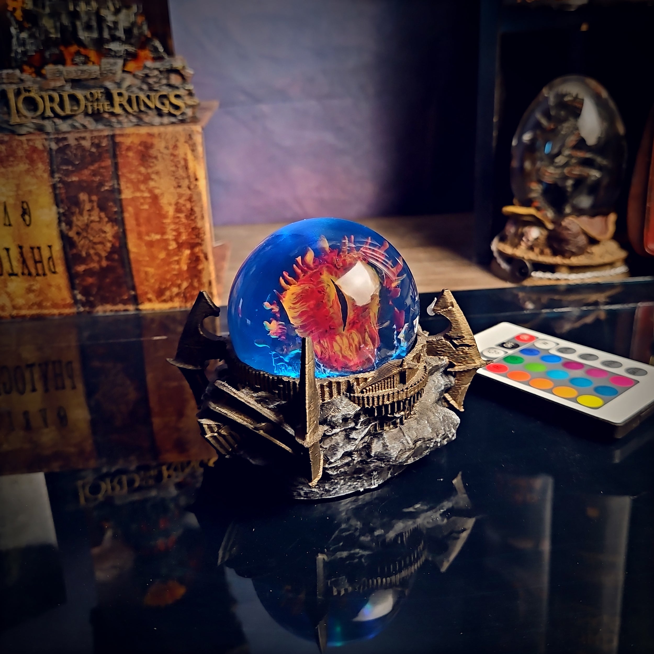 Inspired by the all-seeing eye of Sauron from The Lord of the Rings, this resin lamp is forged in the shape of a glowing, mystical egg. Inside, the fiery Eye of Sauron burns with malevolent energy, casting an ominous glow. It's the perfect dark centerpiece for fans of epic fantasy and Middle-earth mythology.