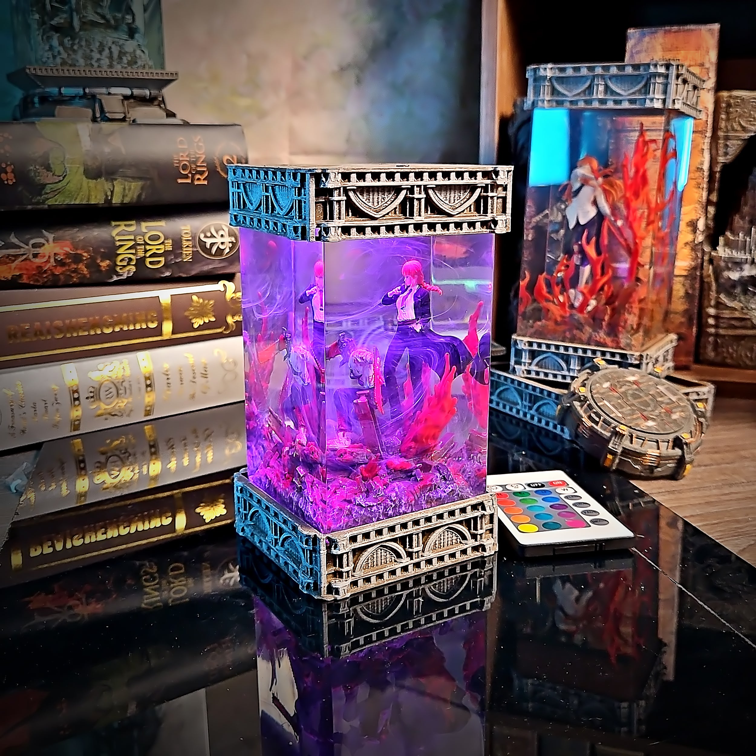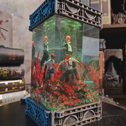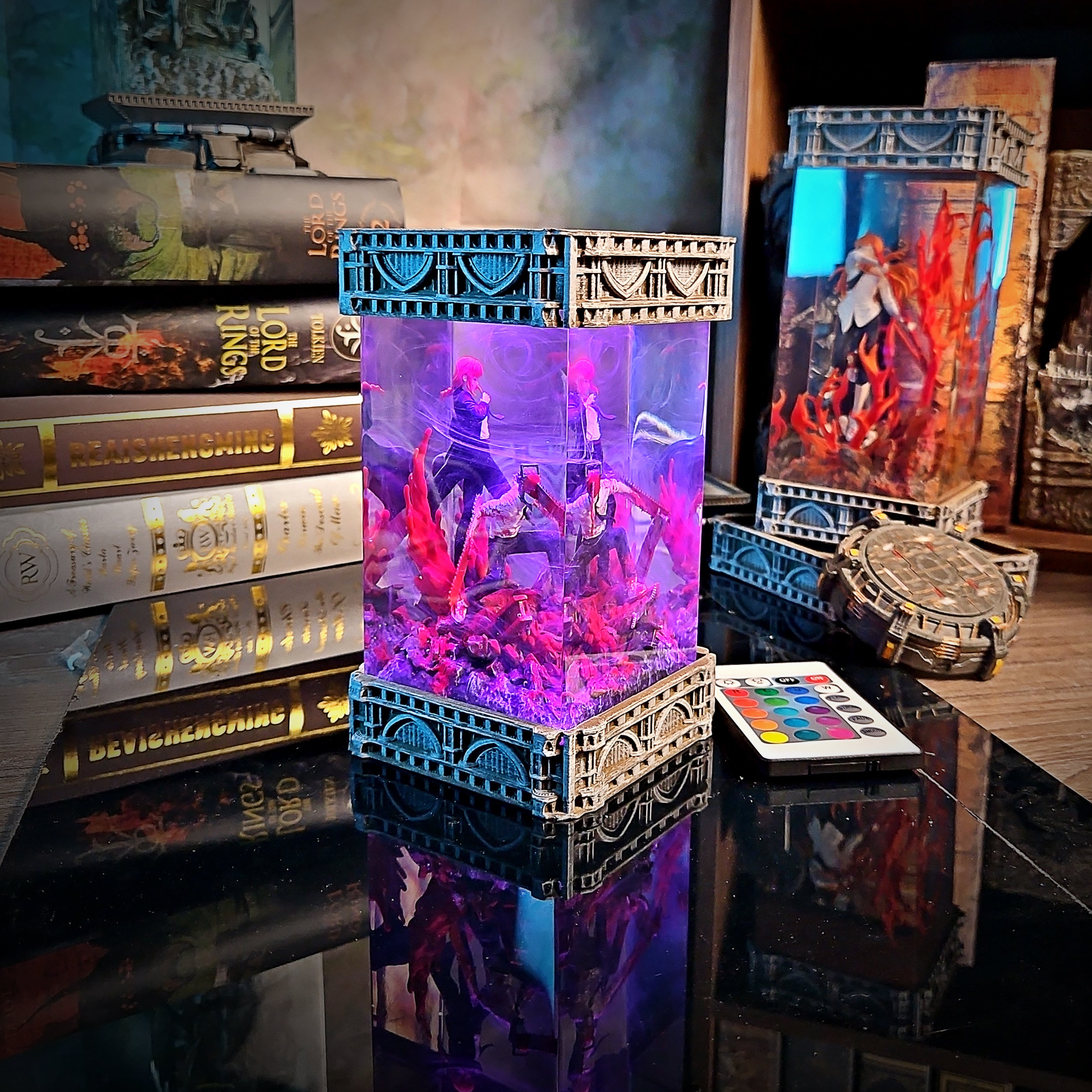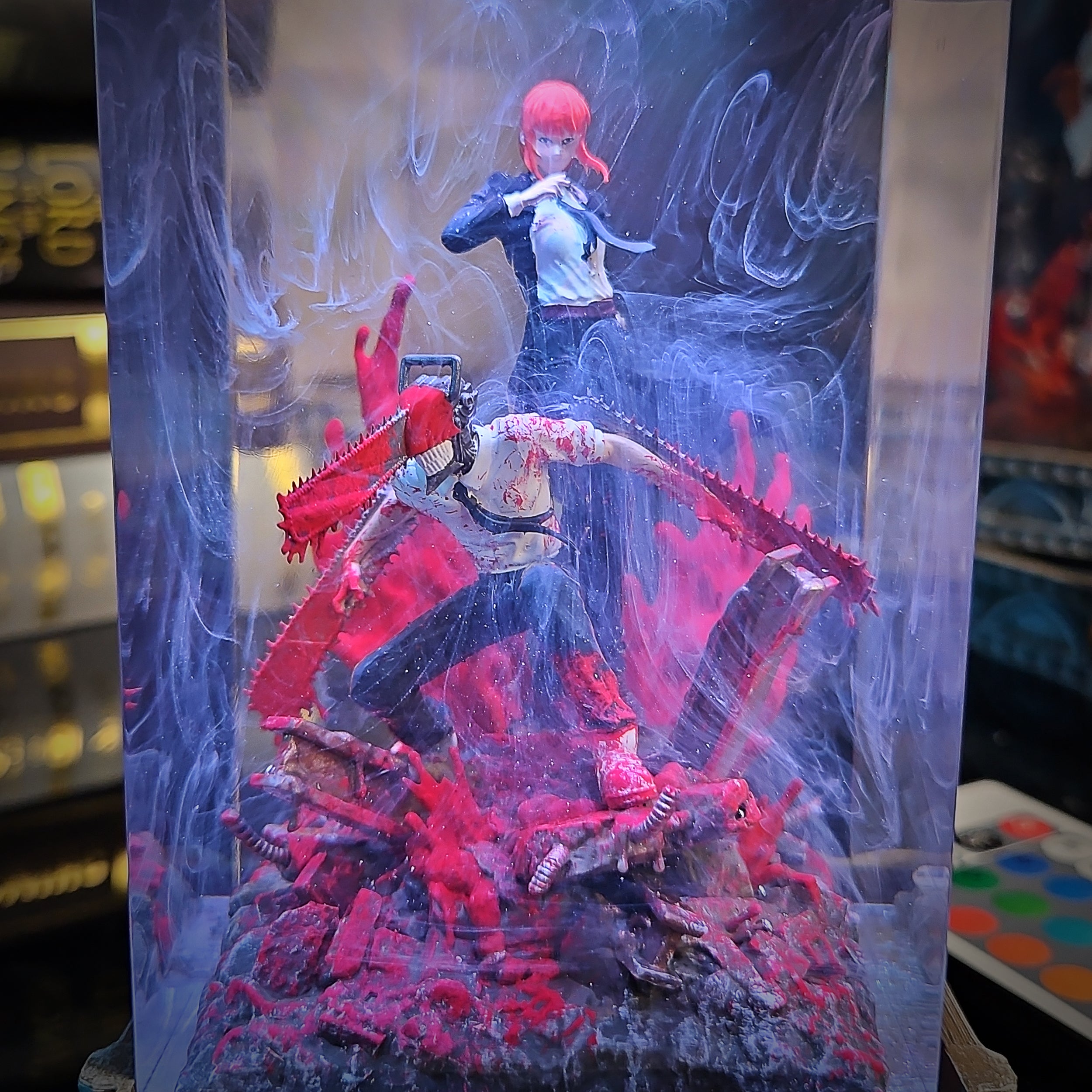 This dynamic resin lamp brings together two fan-favorite characters — Chainsaw Man and Power — in a thrilling scene that radiates chaos and intensity. With stunning sculpt details, bold composition, and LED lighting that enhances the action, this piece is a must-have for any Chainsaw Man collector or anime enthusiast.