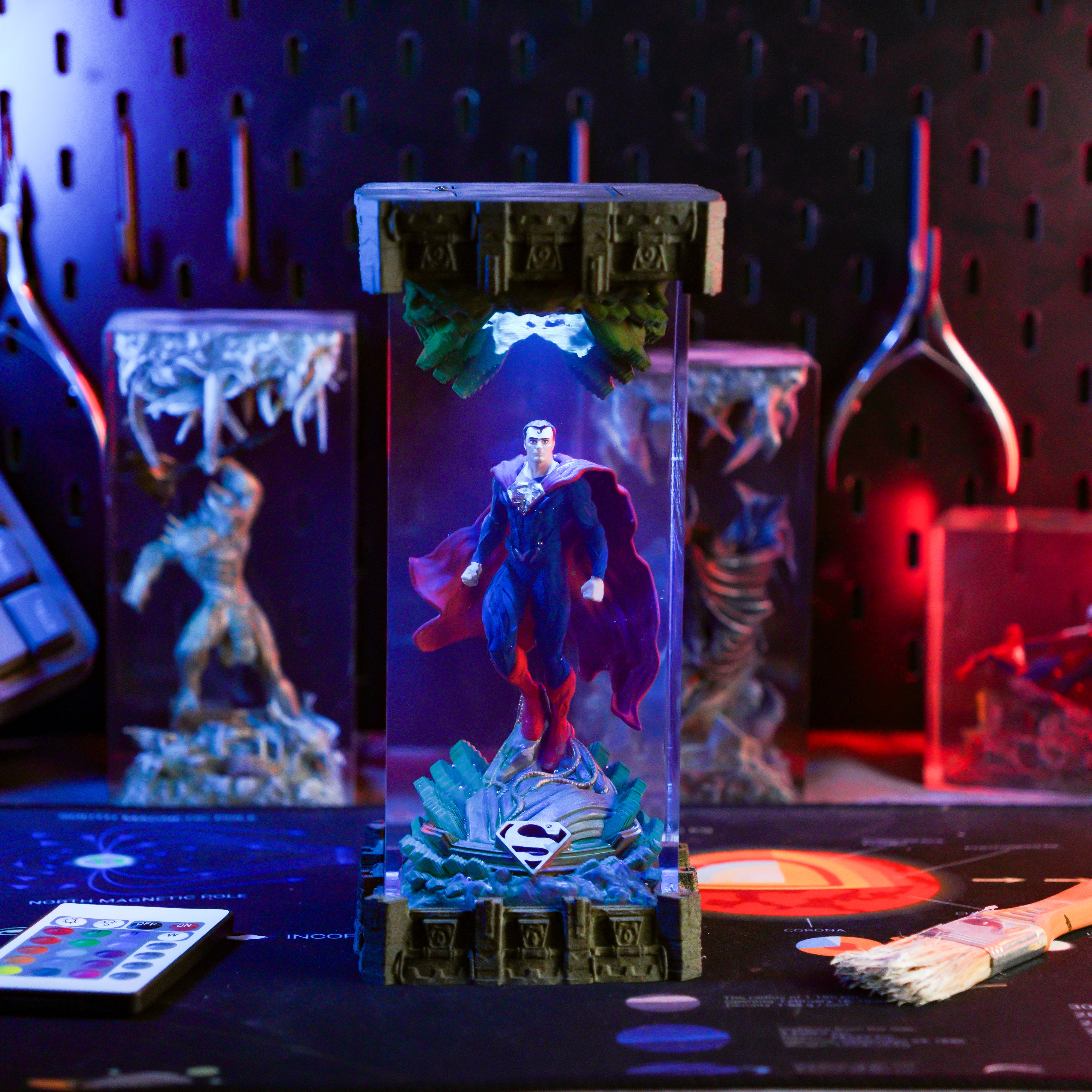 This stunning superhero lamp is made from premium resin and encased in a crystal-clear acrylic shell. Each piece is carefully sculpted to portray Superman mid-flight, cape flowing, radiating the courage and light of Krypton.