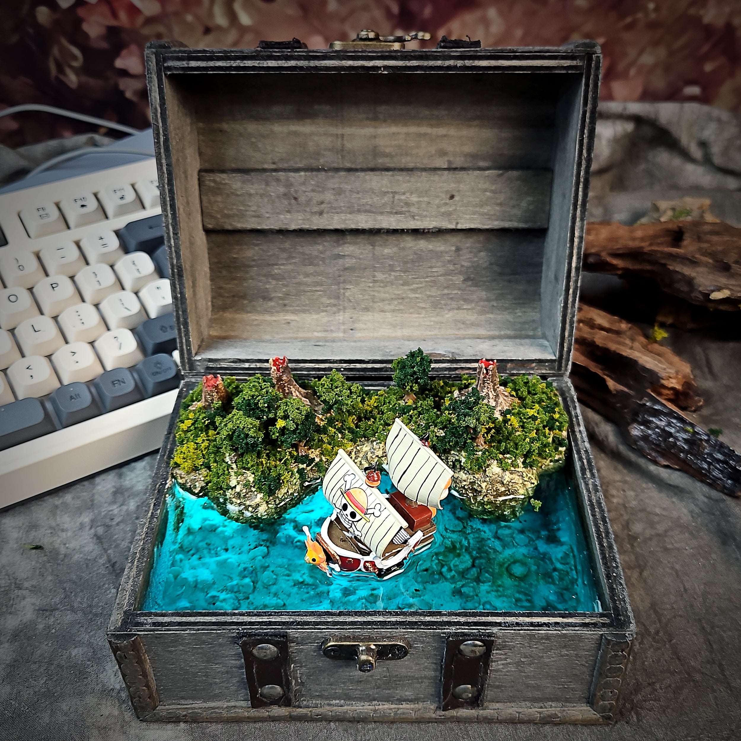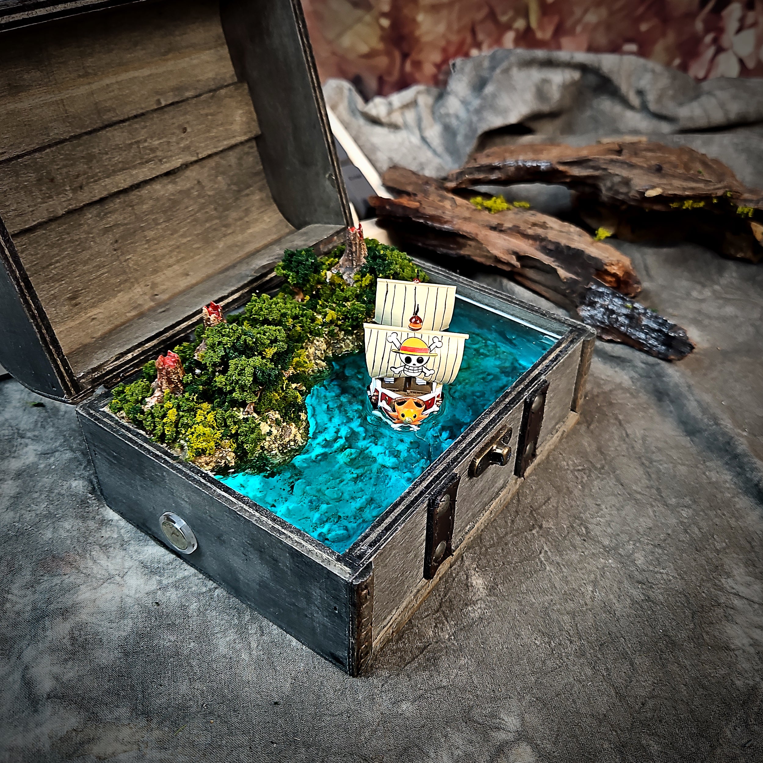 Ahoy, mateys! Prepare to set sail on a sea of enchantment with the most dazzling treasure this side of the Grand Line! Feast your eyes on the handmade resin lamp box, a miniature masterpiece meticulously crafted to capture the heart and soul of the legendary Thousand Sunny from One Piece!
