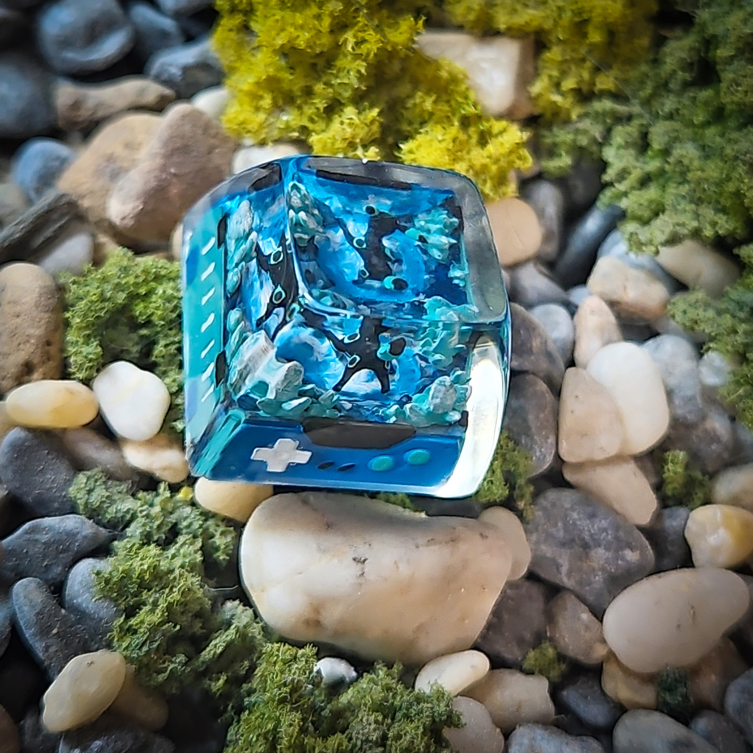 Each keycap is made entirely by hand, ensuring every piece has unique variations in detail, color, and finish. The resin is polished to a smooth, glossy surface that enhances depth and highlights the intricacies of the miniature sculpture inside.