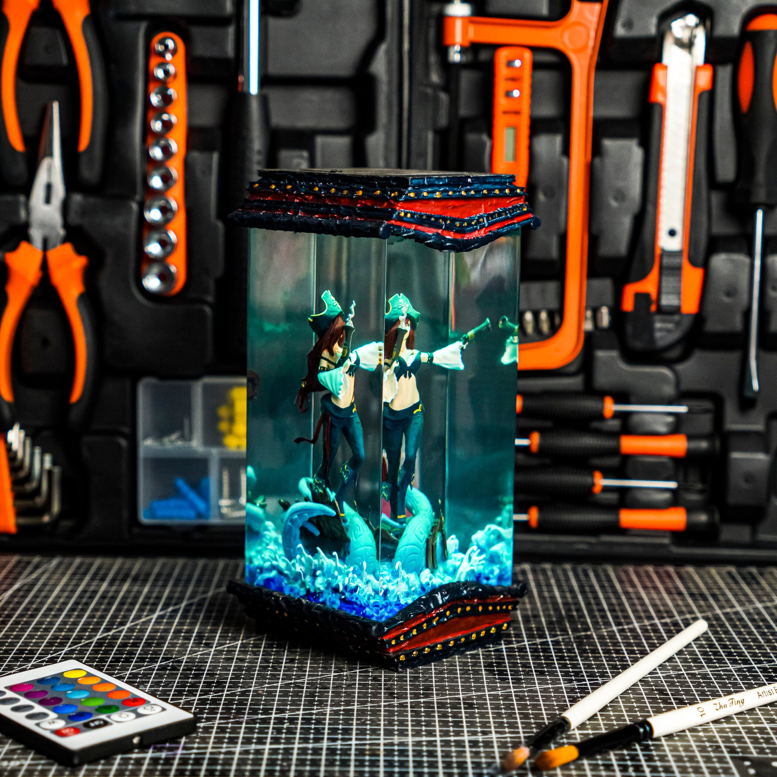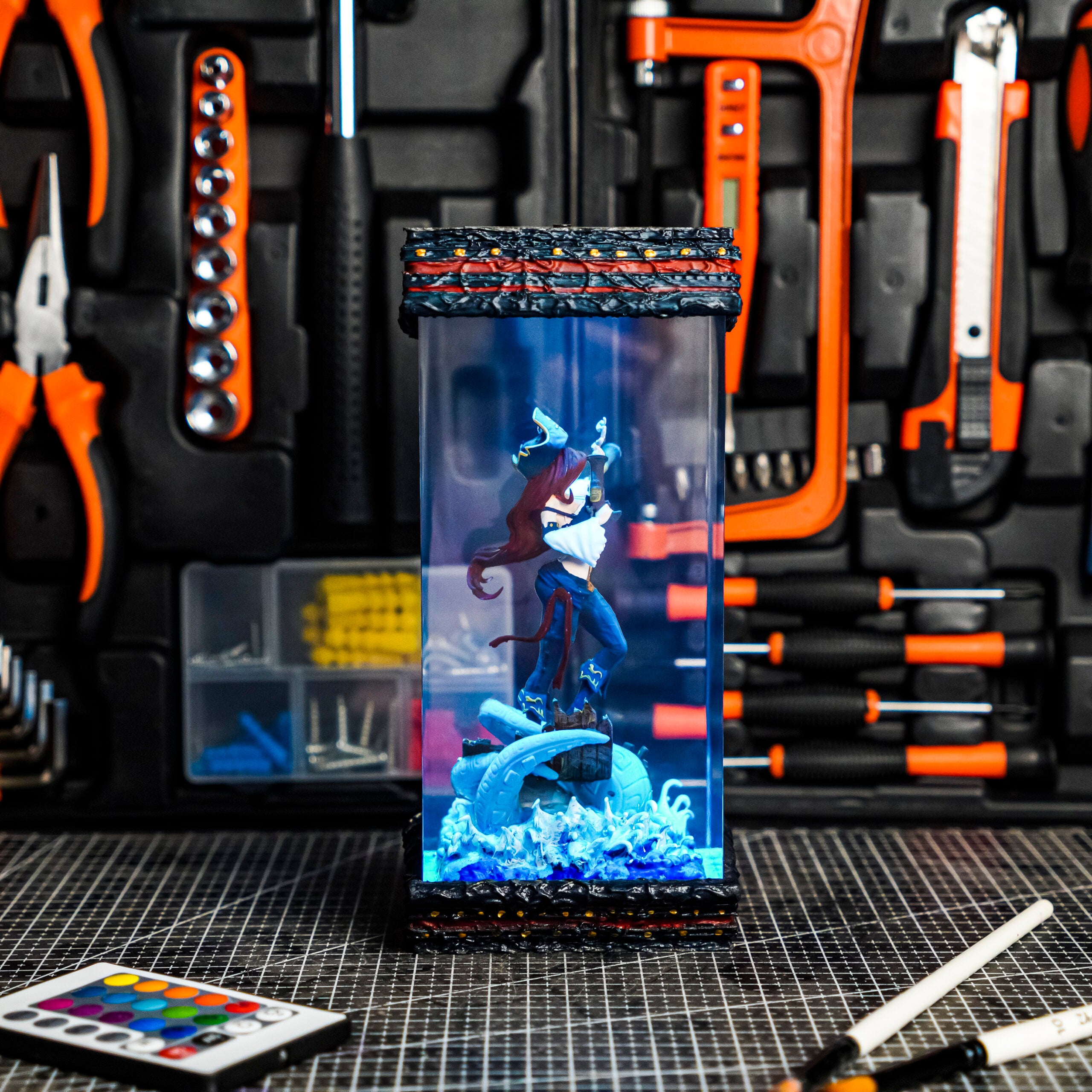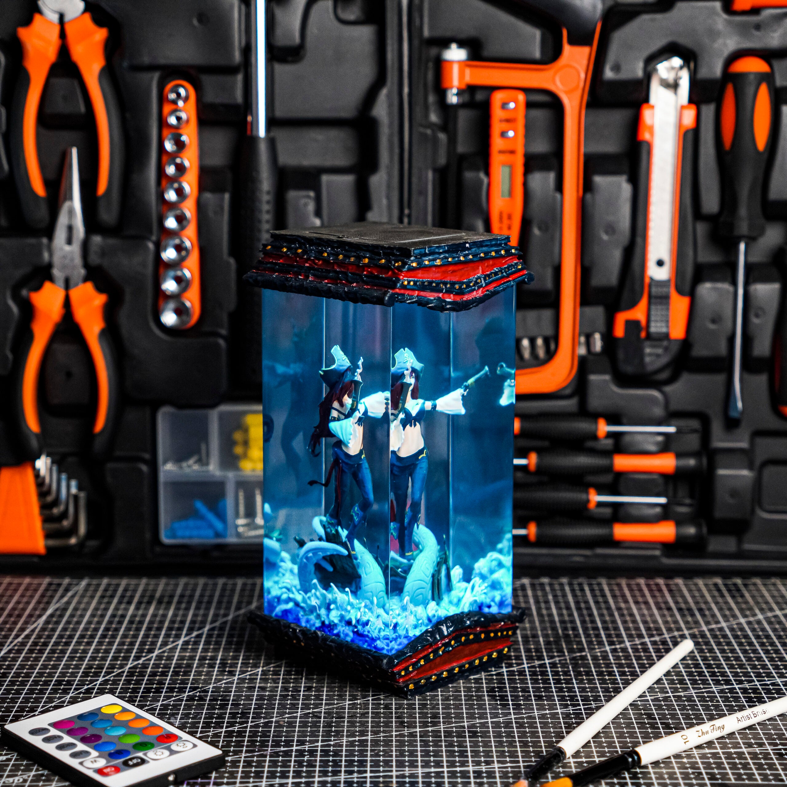 Celebrate the strength and charisma of Vi and Miss Fortune with this dynamic resin lamp. Showcasing Vi's powerful gauntlets and Miss Fortune's confident stance, this piece brings together two of League of Legends' most iconic champions. The vibrant LED lighting highlights their contrasting styles, making it a striking centerpiece.
