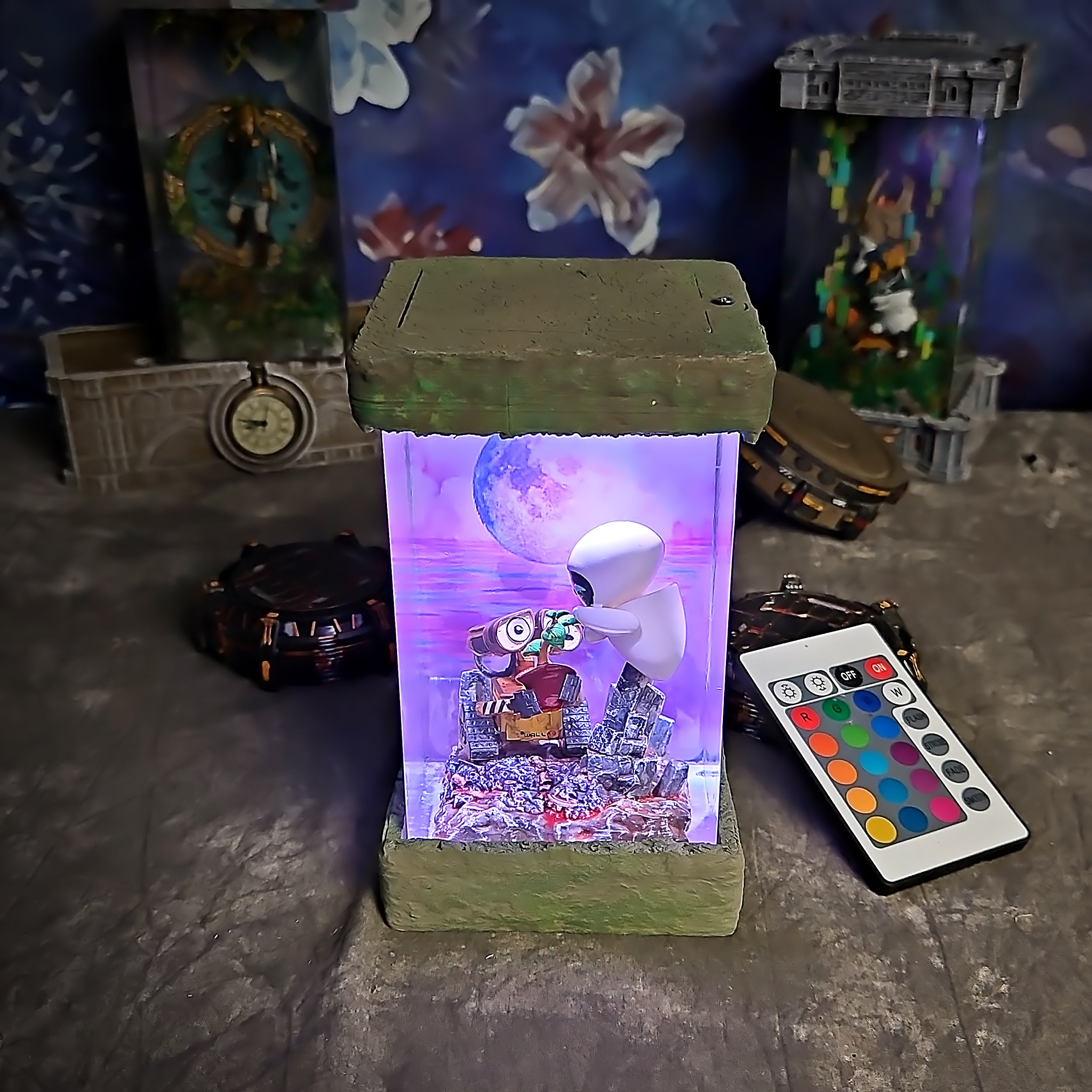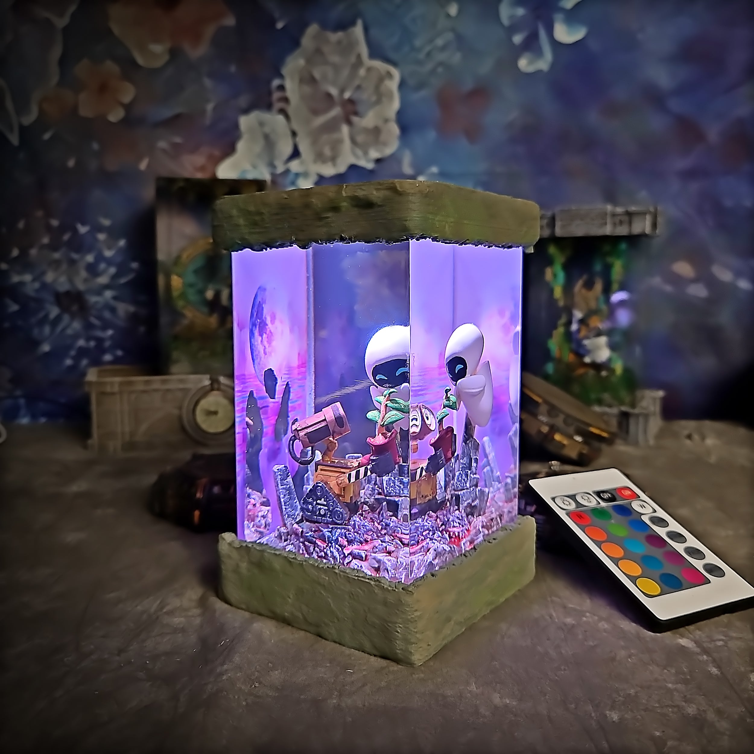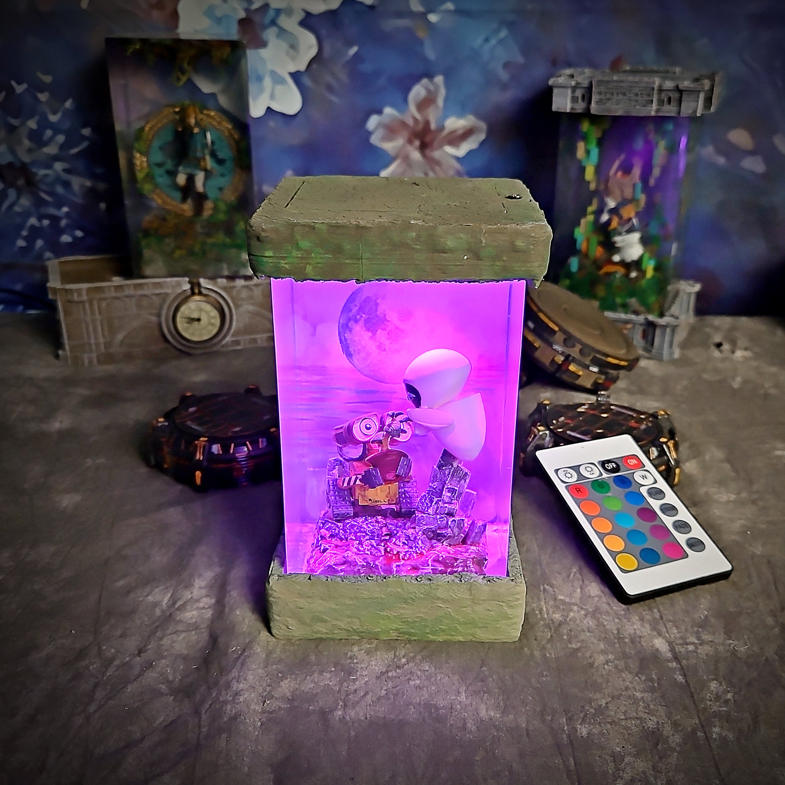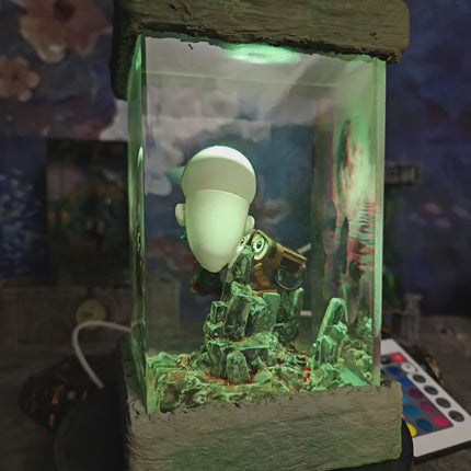 This heartwarming lamp is inspired by WALL-E, the lonely trash compactor robot from Pixar's beloved film. With his big, curious eyes and lovable personality, this resin figure captures WALL-E's hope, resilience, and quiet charm. Whether you're a fan of the movie or simply love robots, this lamp brings a soft, nostalgic glow to any space.