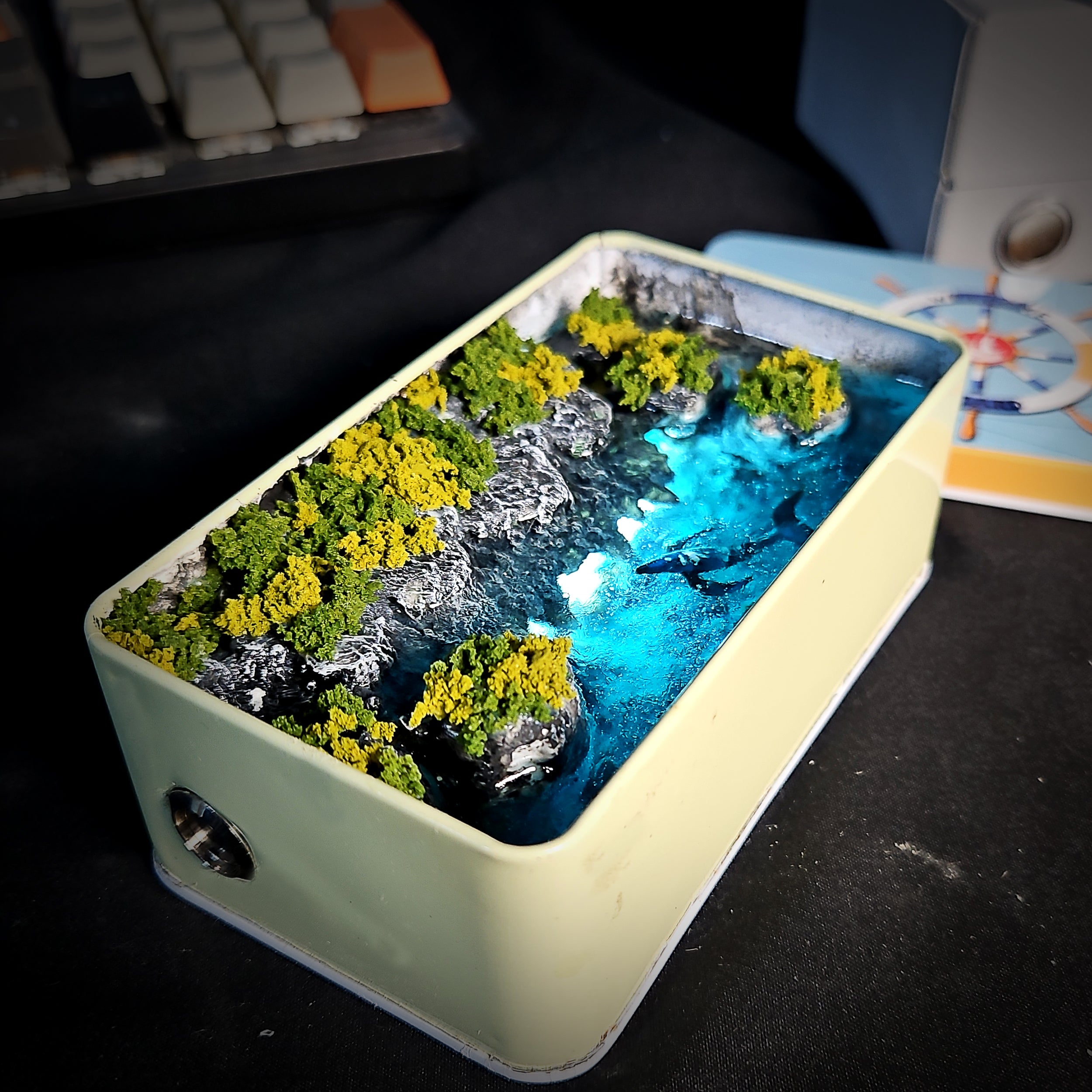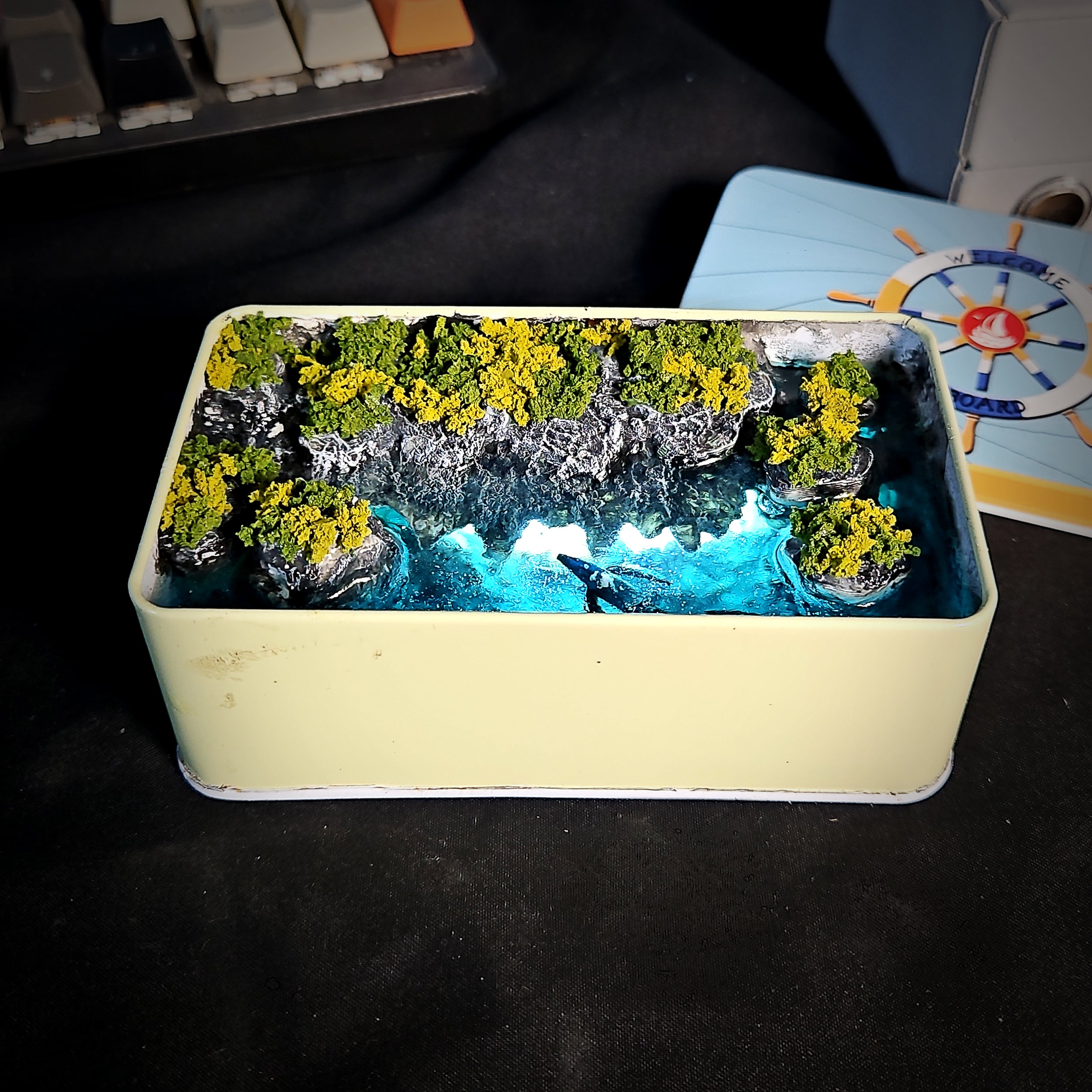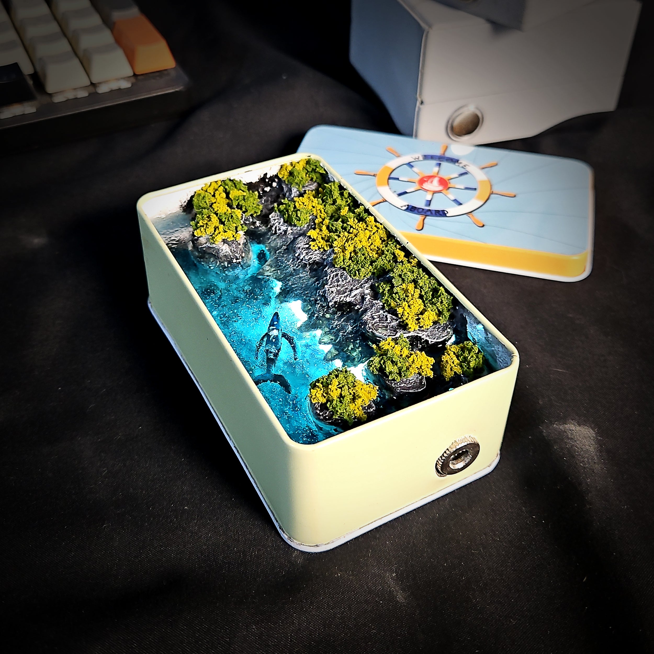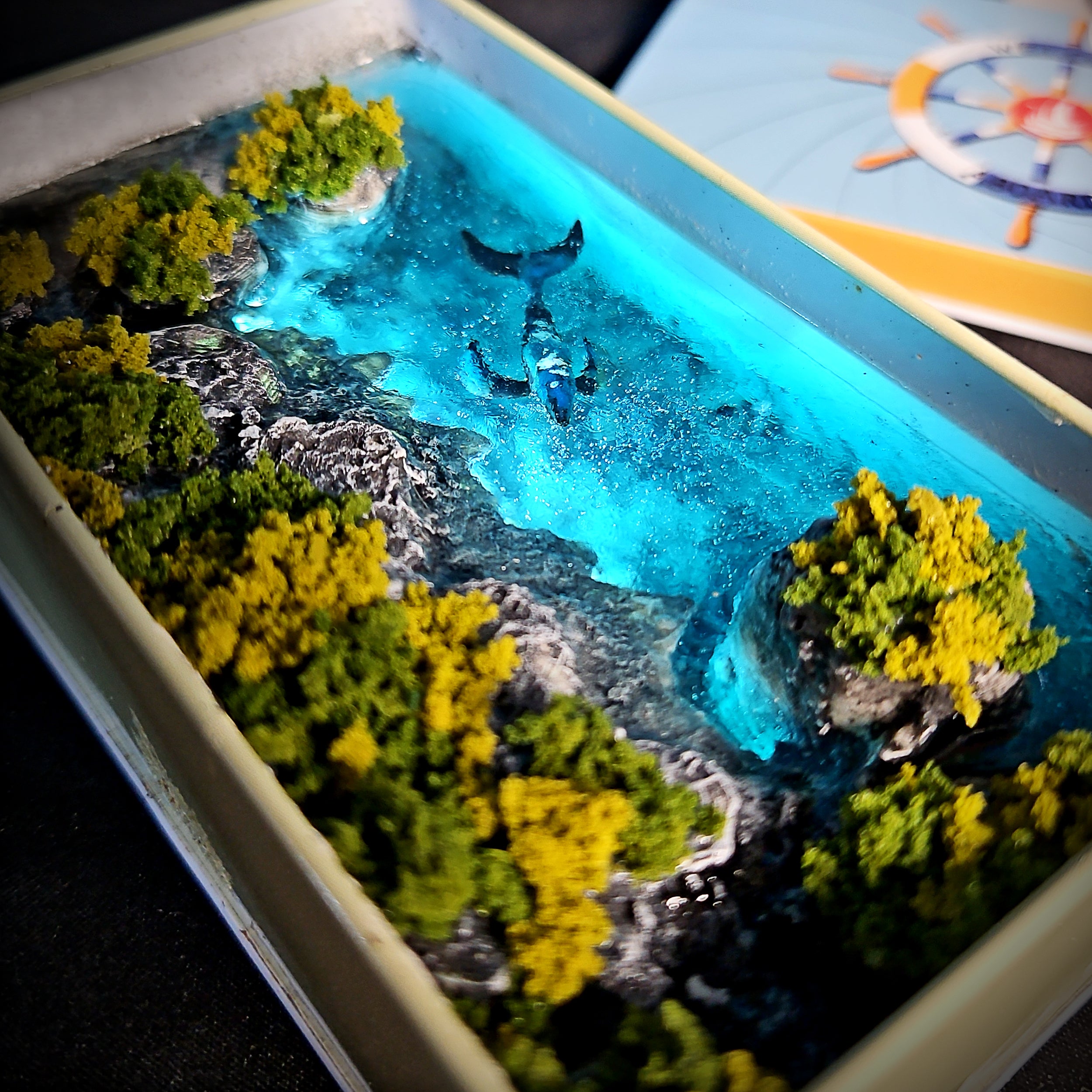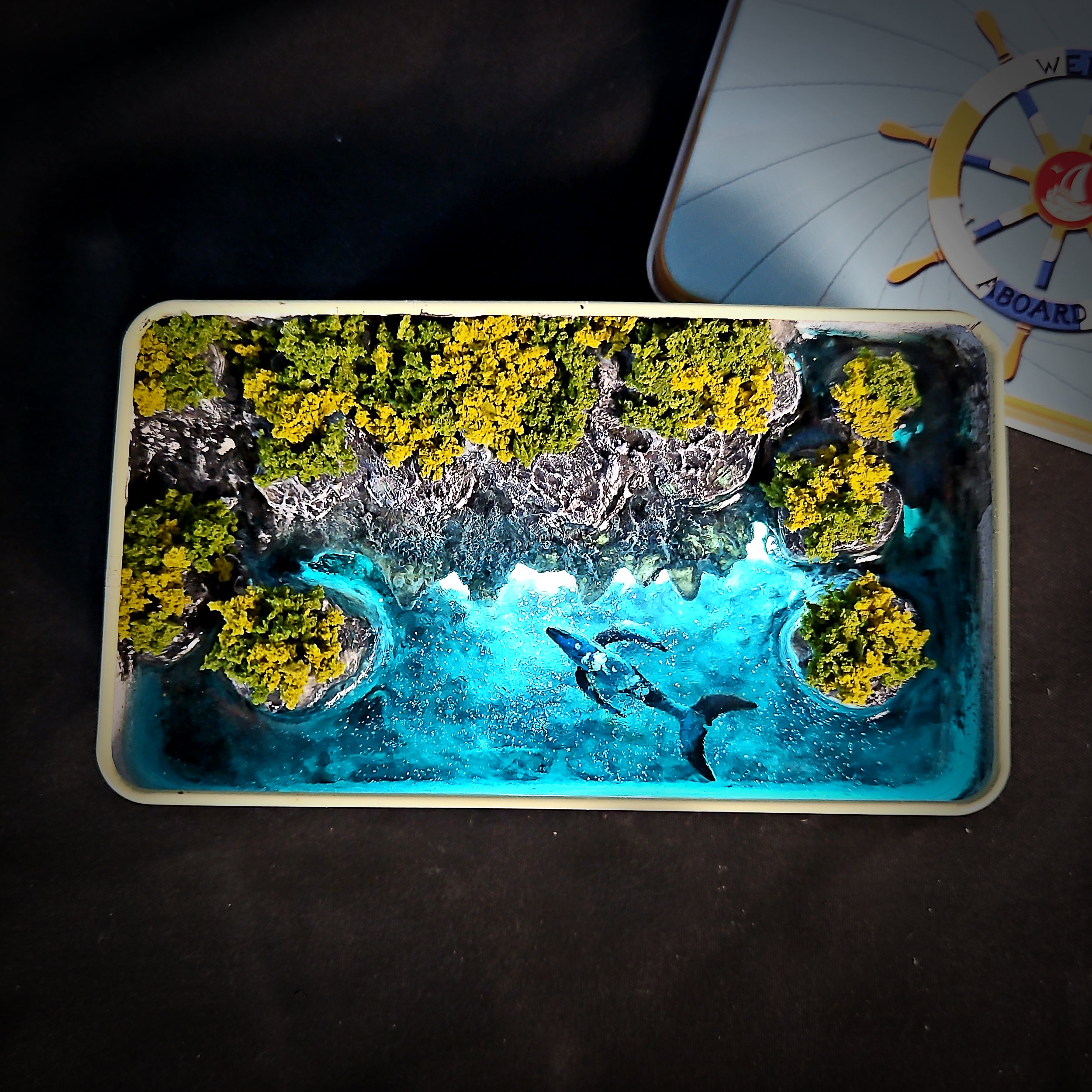 Have you ever dreamed of admiring the magical beauty of the ocean right in your living room? The resin lamp in a tin box simulating the ocean with the image of a swimming whale is the perfect decoration to make that dream come true!