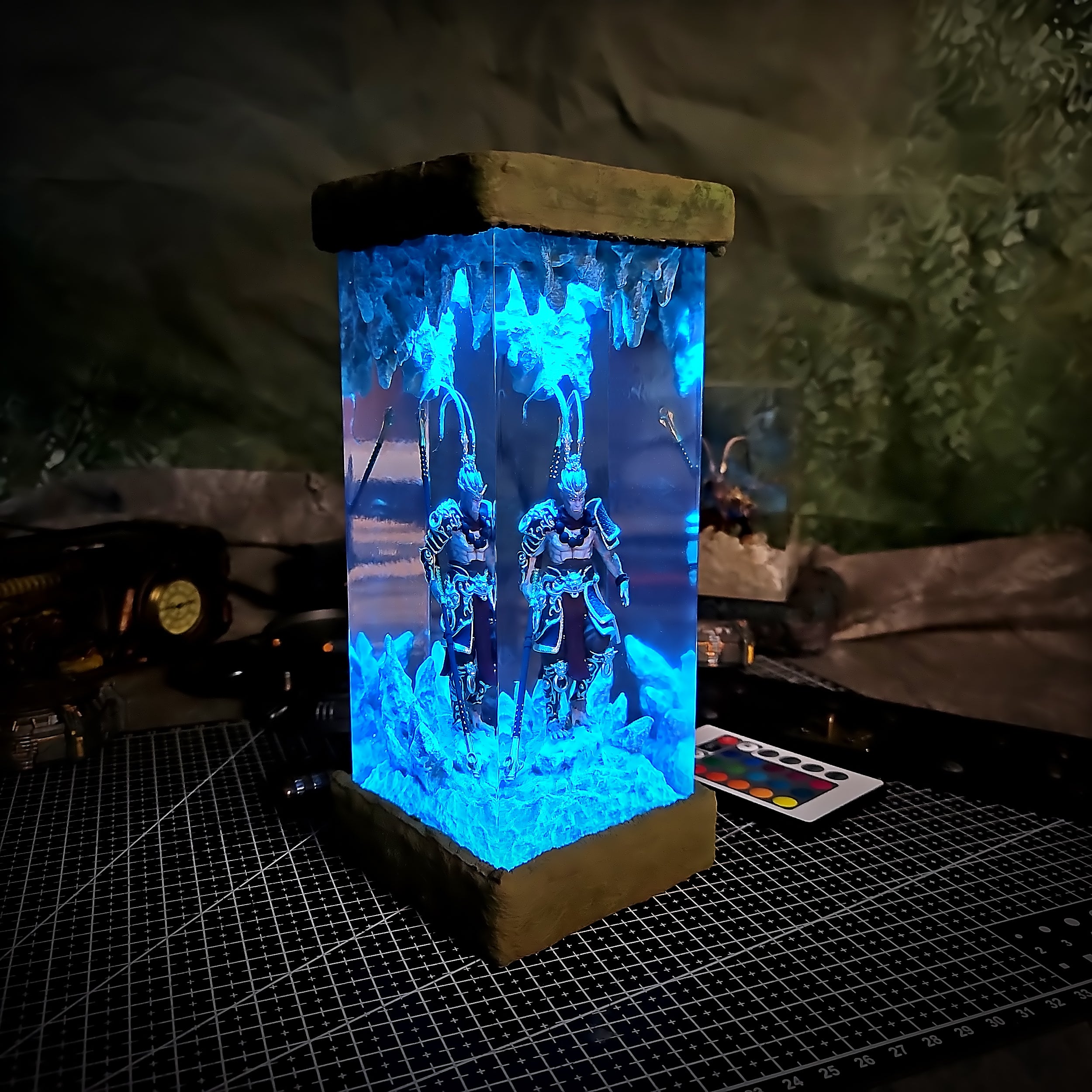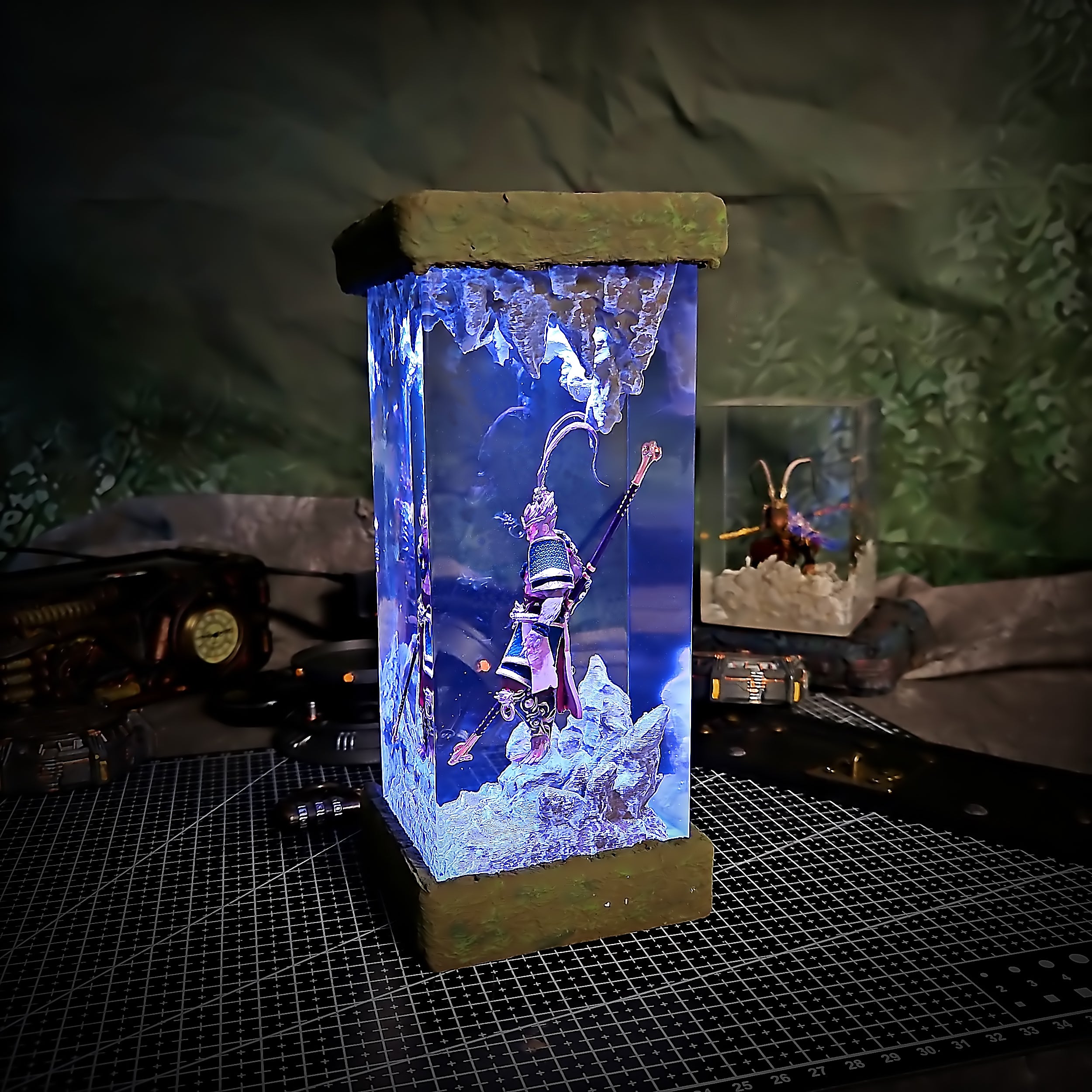 - Resin Casting: Durable clear resin is used to encase the figure, enhancing depth and light diffusion.